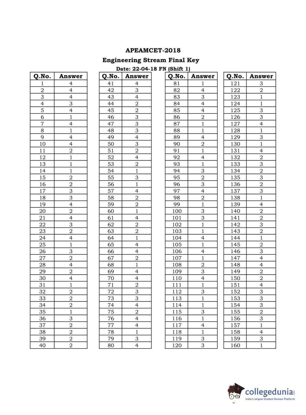 | AP EAPCET 2018 Engineering Question Paper PDF | AP EAPCET 2018 Engineering Answer Key PDF |