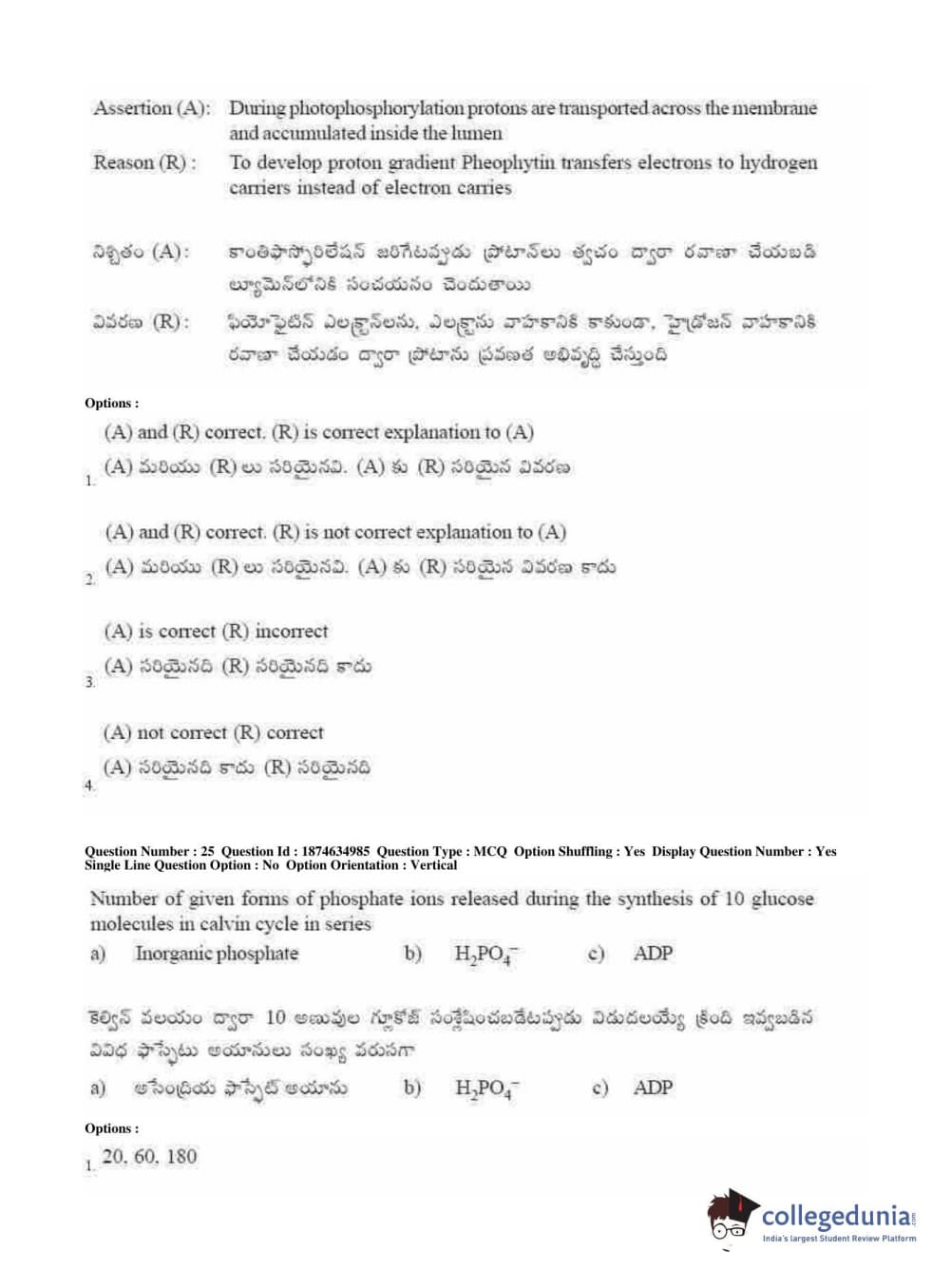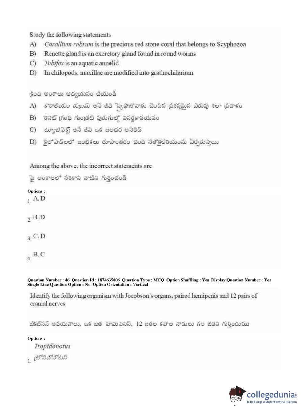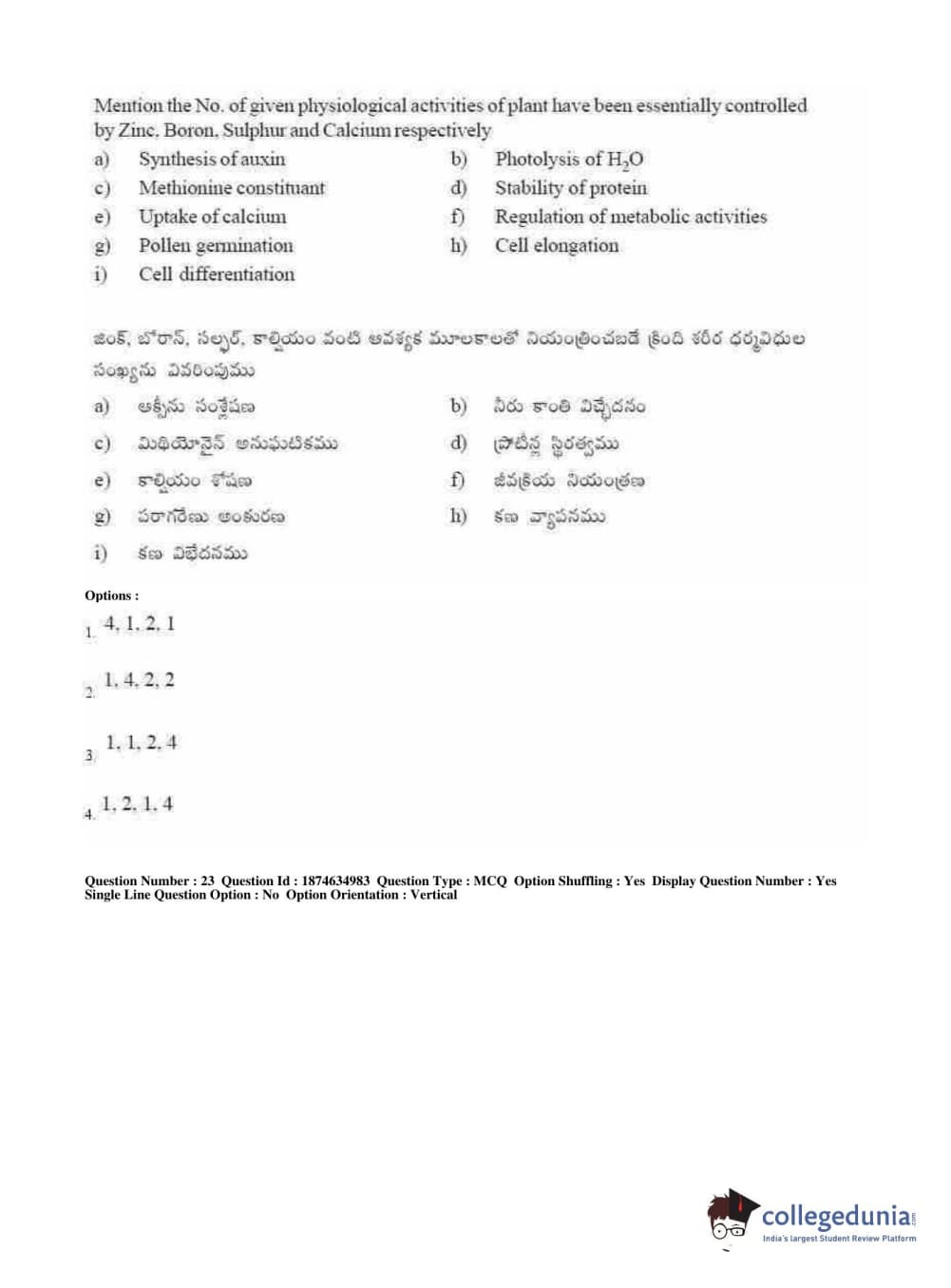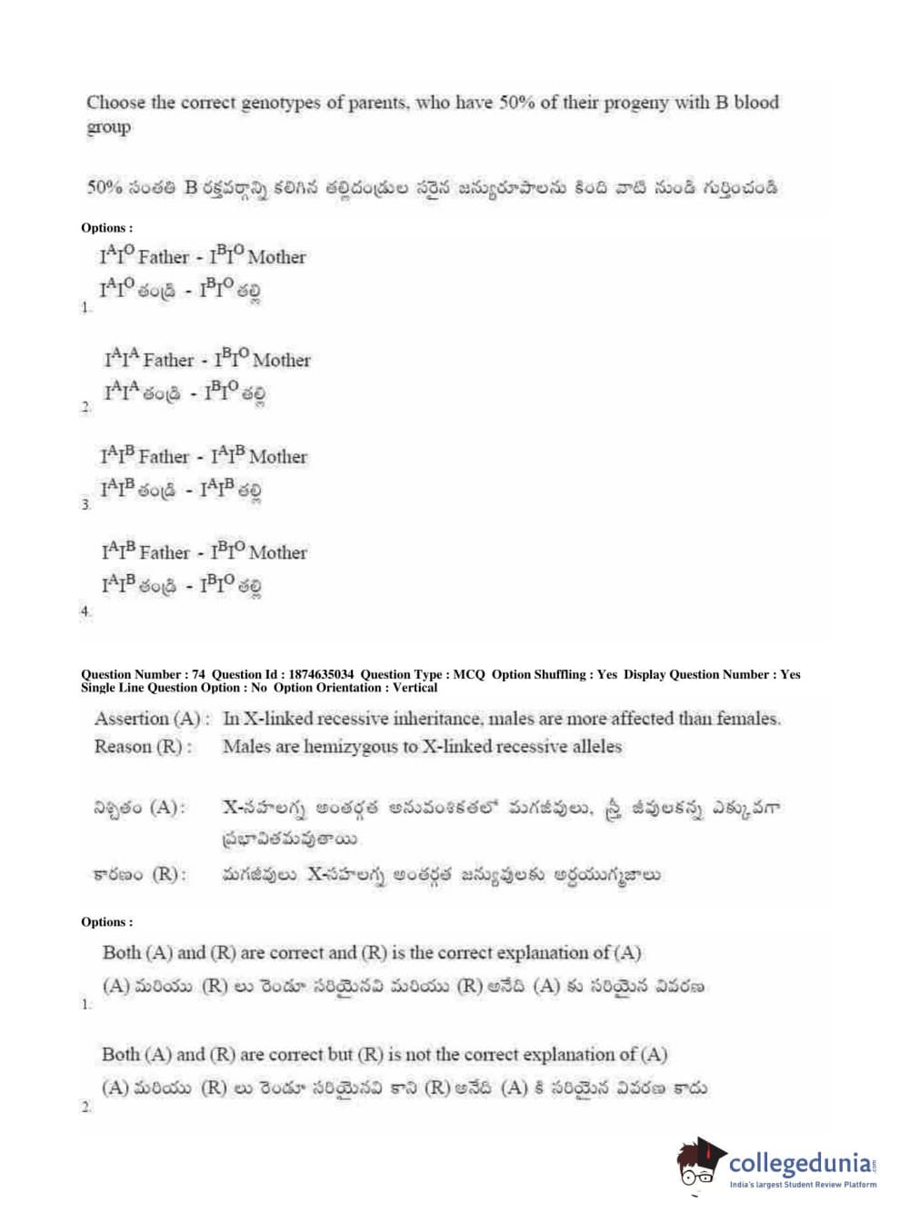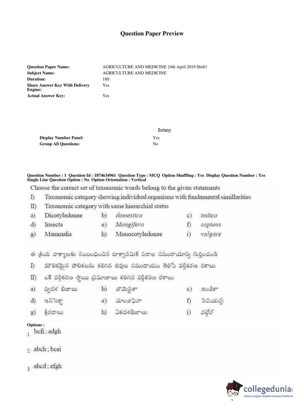 AP EAPCET 2019 Agriculture and Medical Question Paper with Answer Key PDFs Forenoon Session