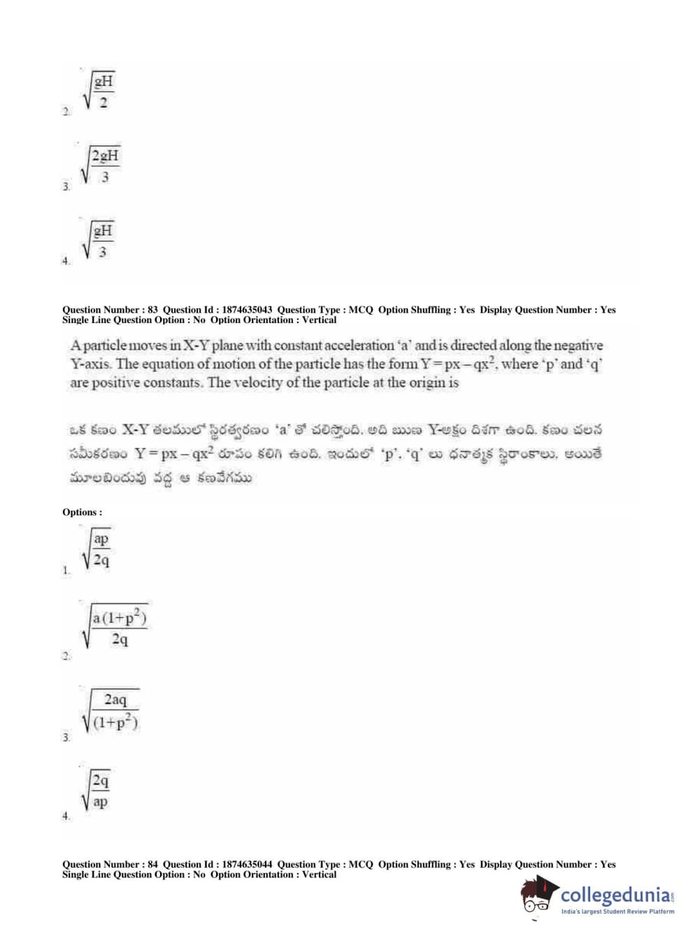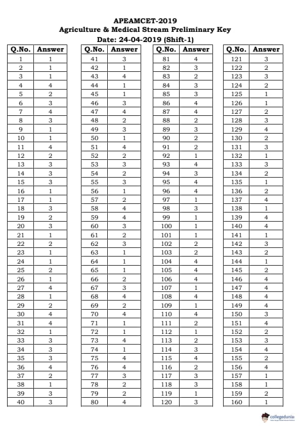 | AP EAPCET 2019 Agriculture and Medical Question Paper PDF | AP EAPCET 2019 Agriculture and Medical Answer Key PDF |