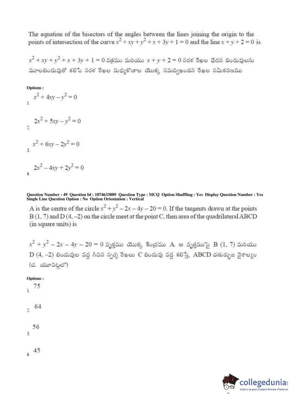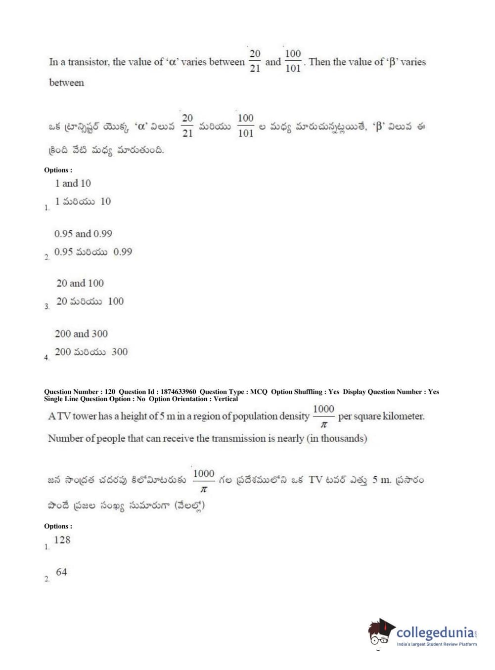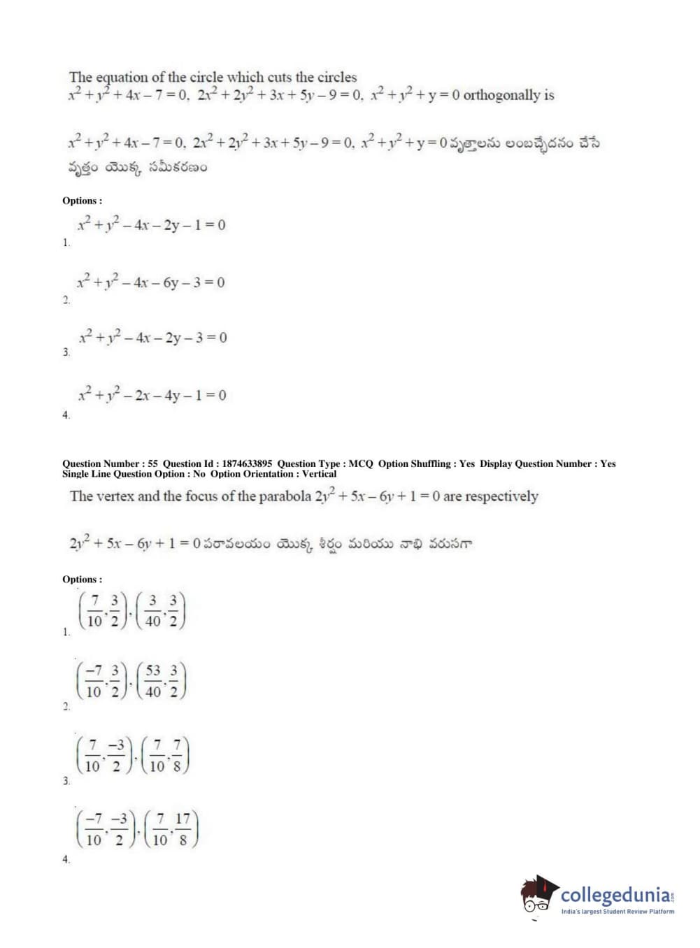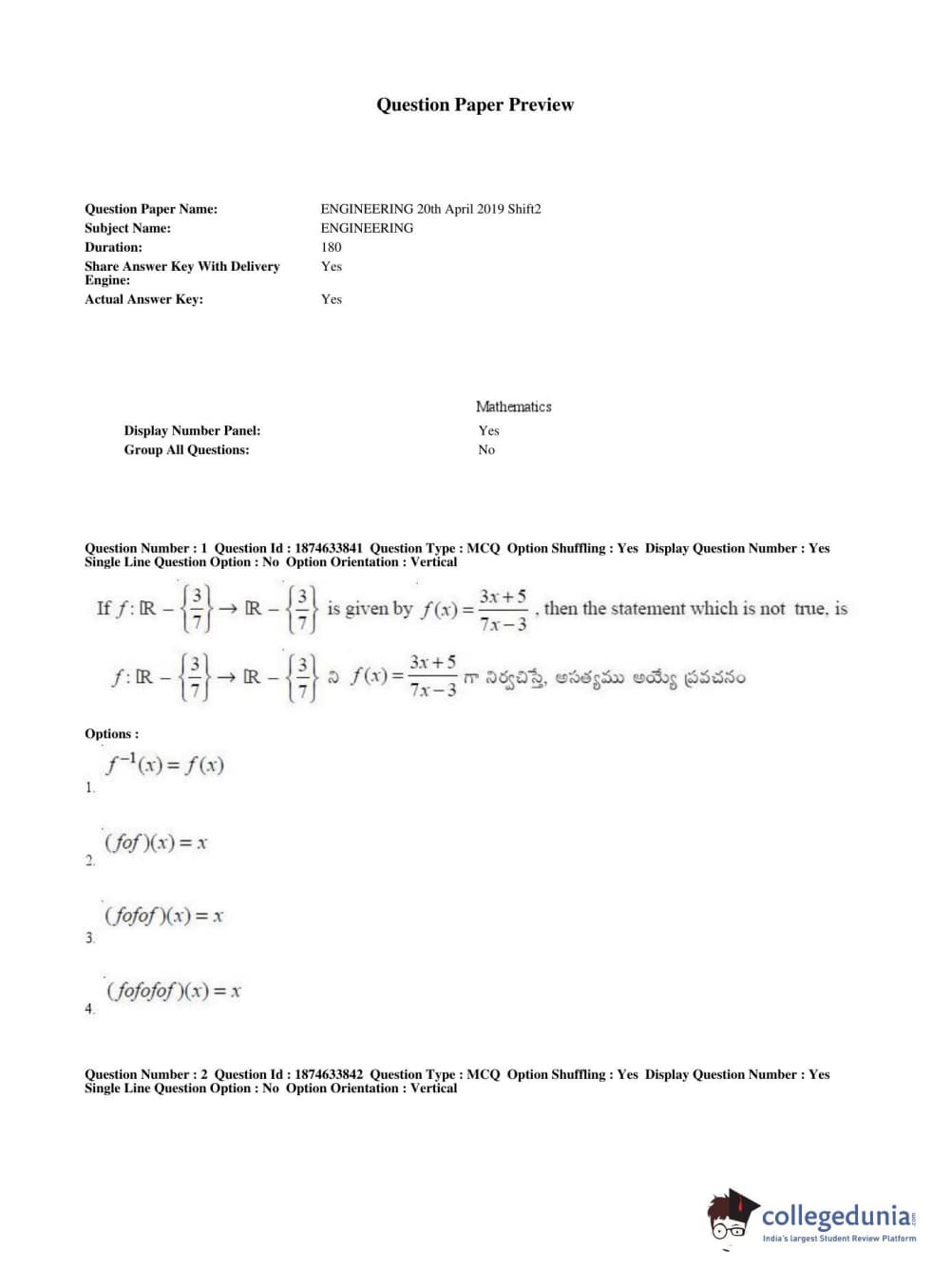 AP EAPCET 2019 Engineering Question Paper with Answer Key PDFs Afternoon Session
