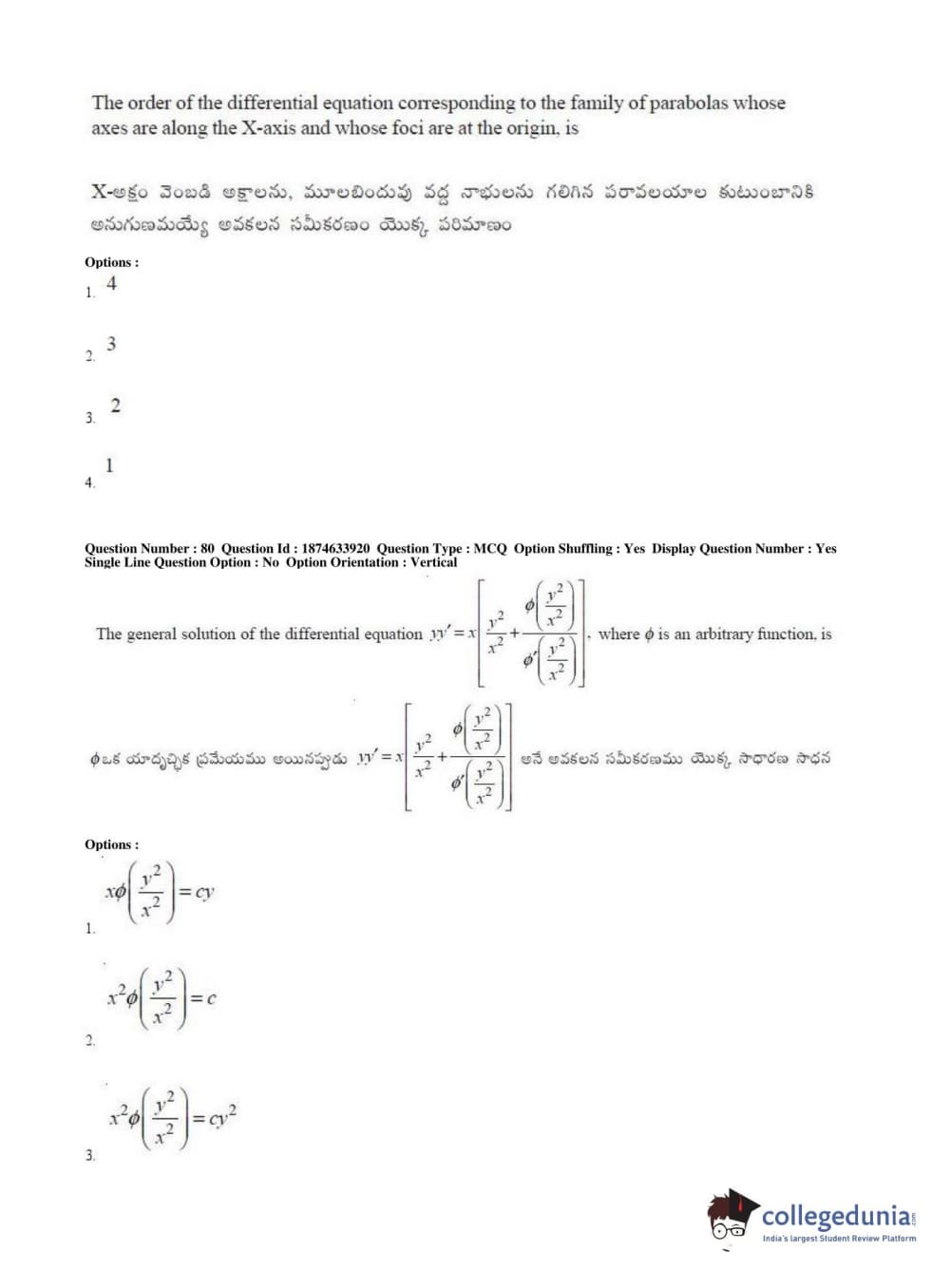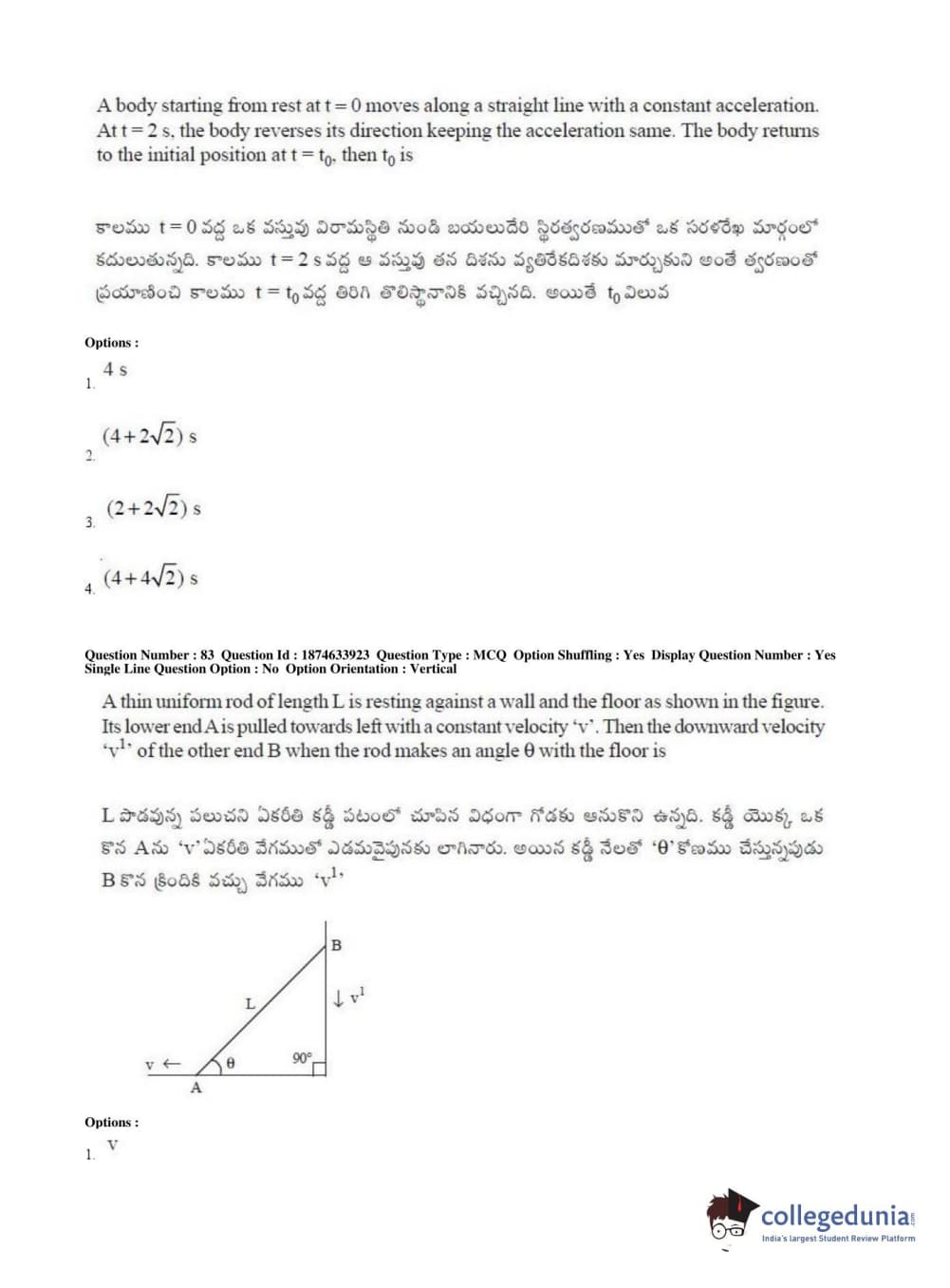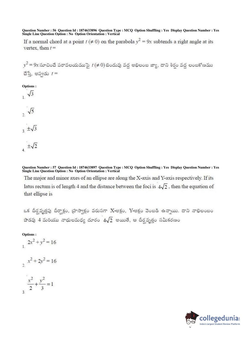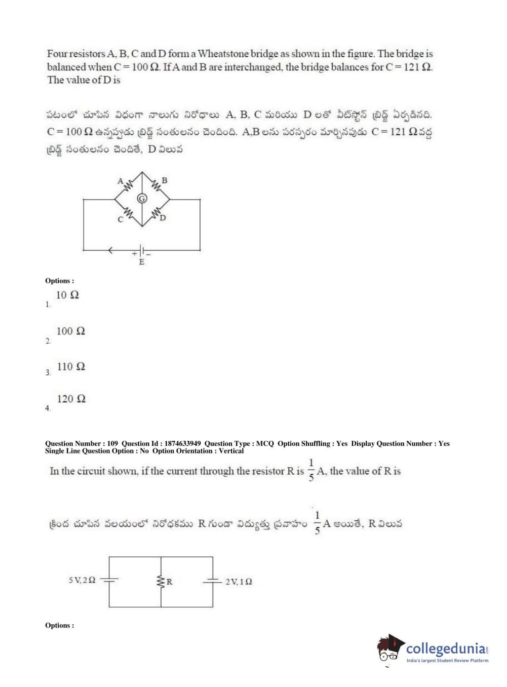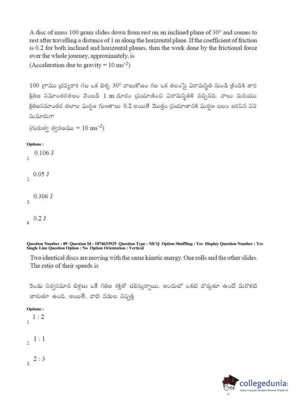 AP EAPCET 2019 Engineering Question Paper with Answer Key PDFs Afternoon Session