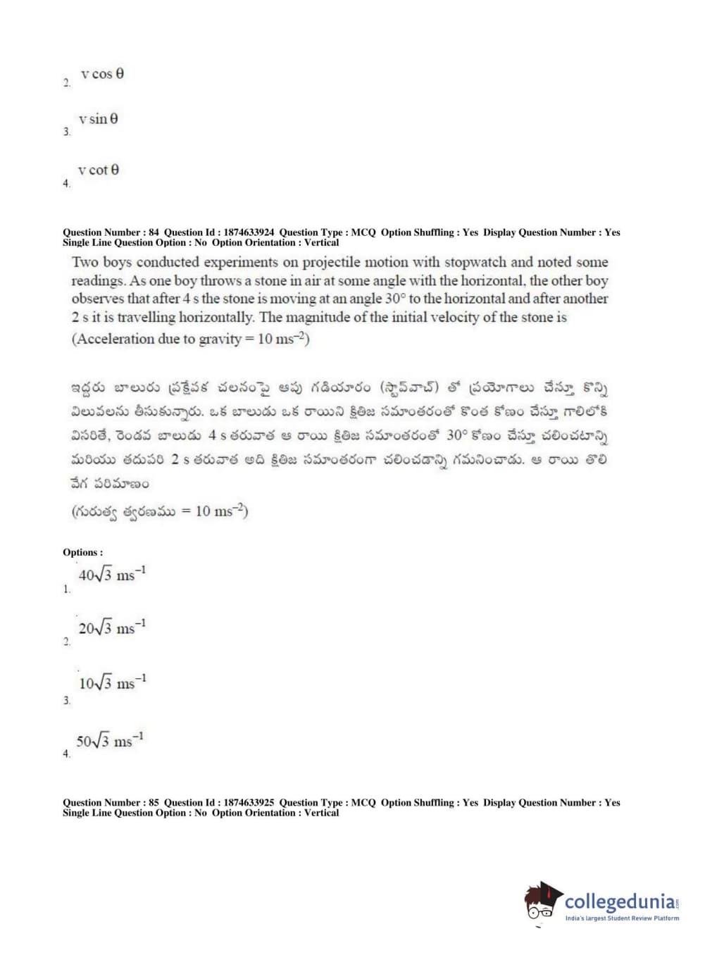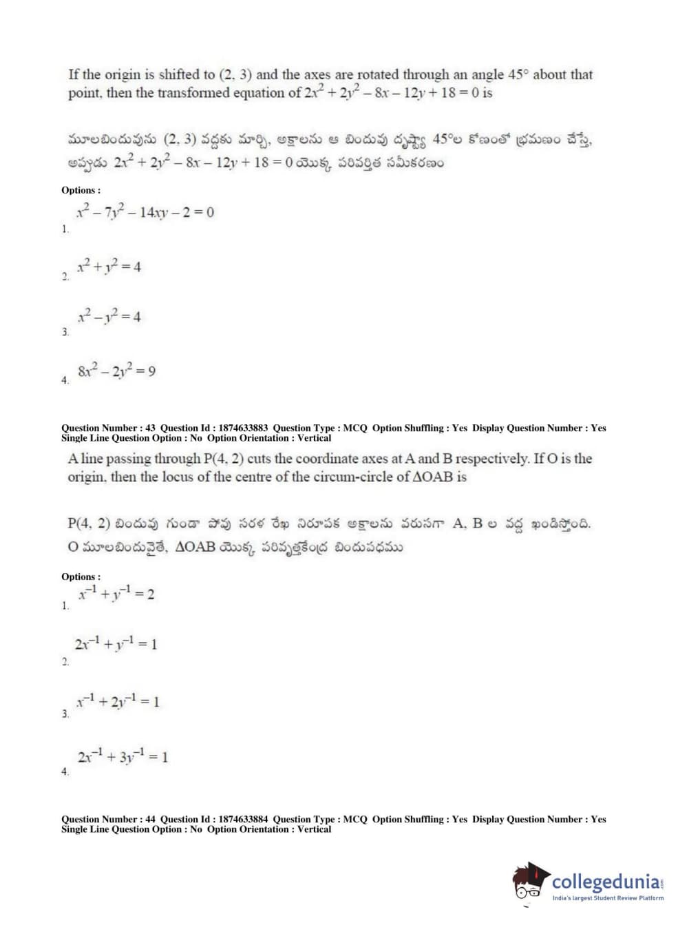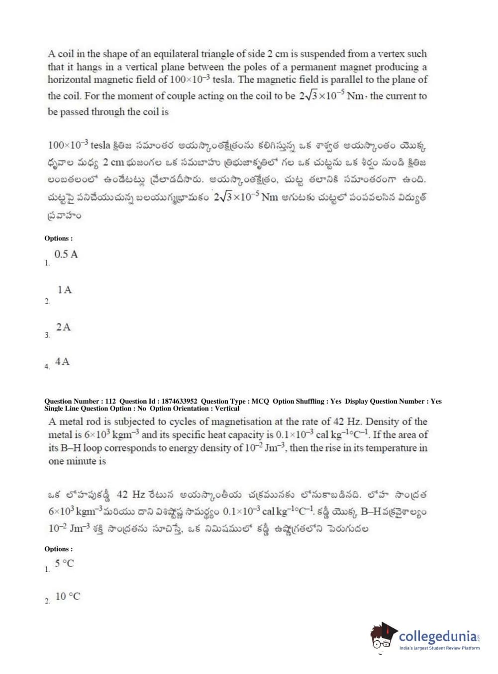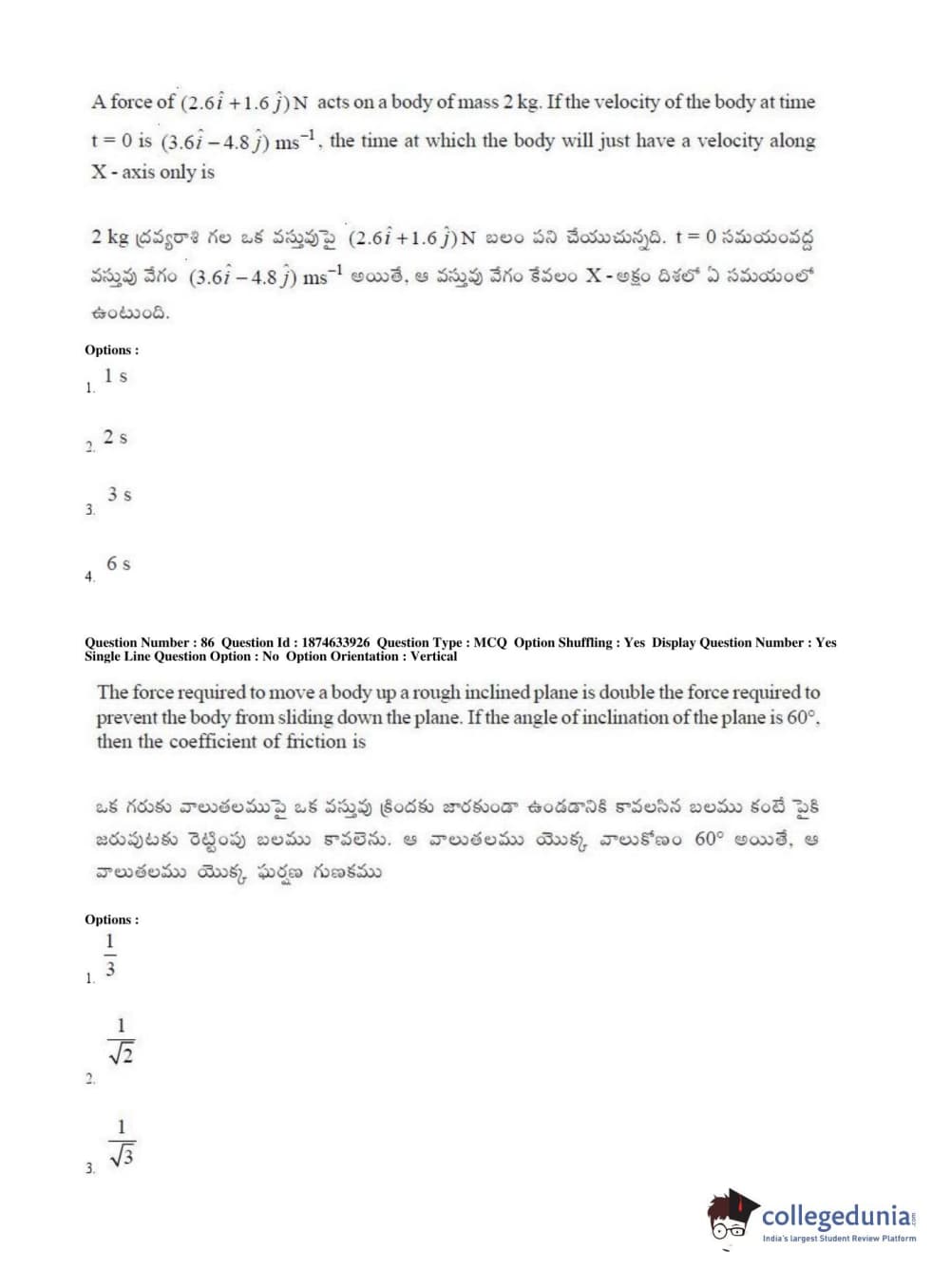 AP EAPCET 2019 Engineering Question Paper with Answer Key PDFs Afternoon Session