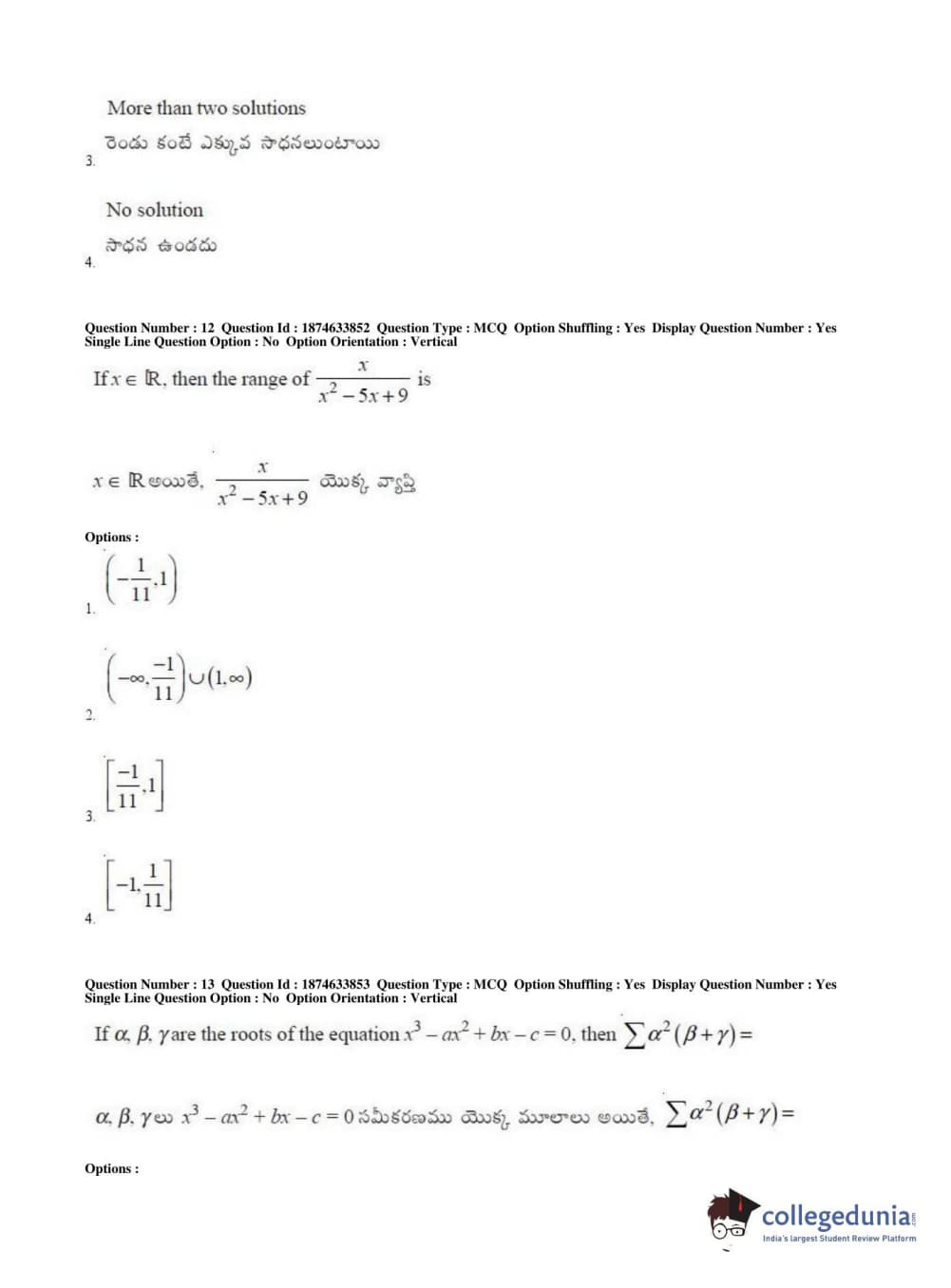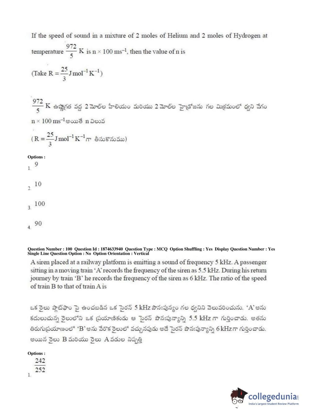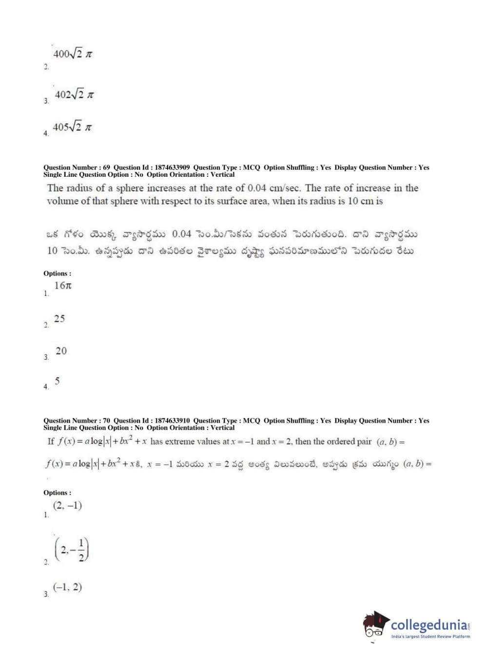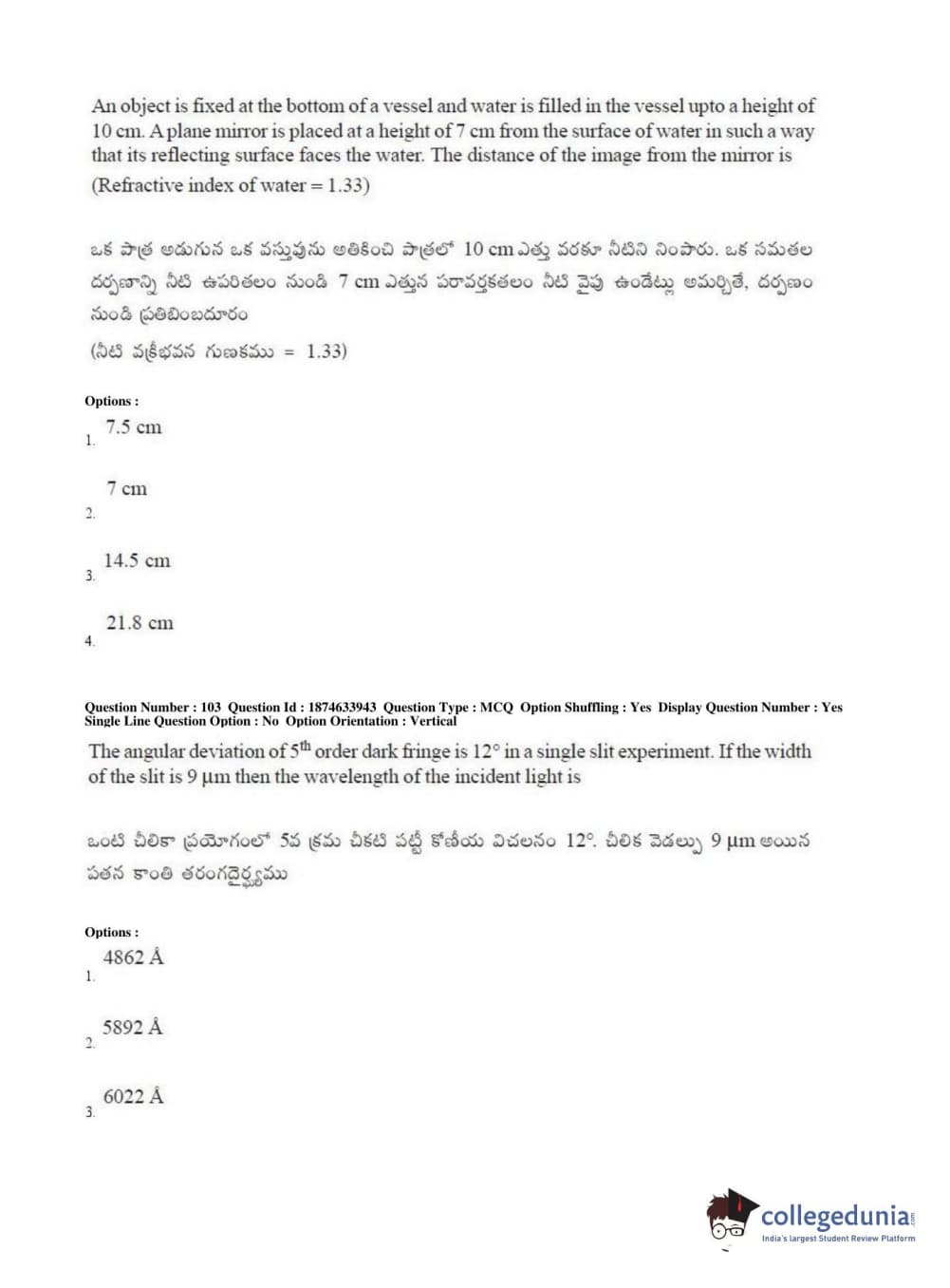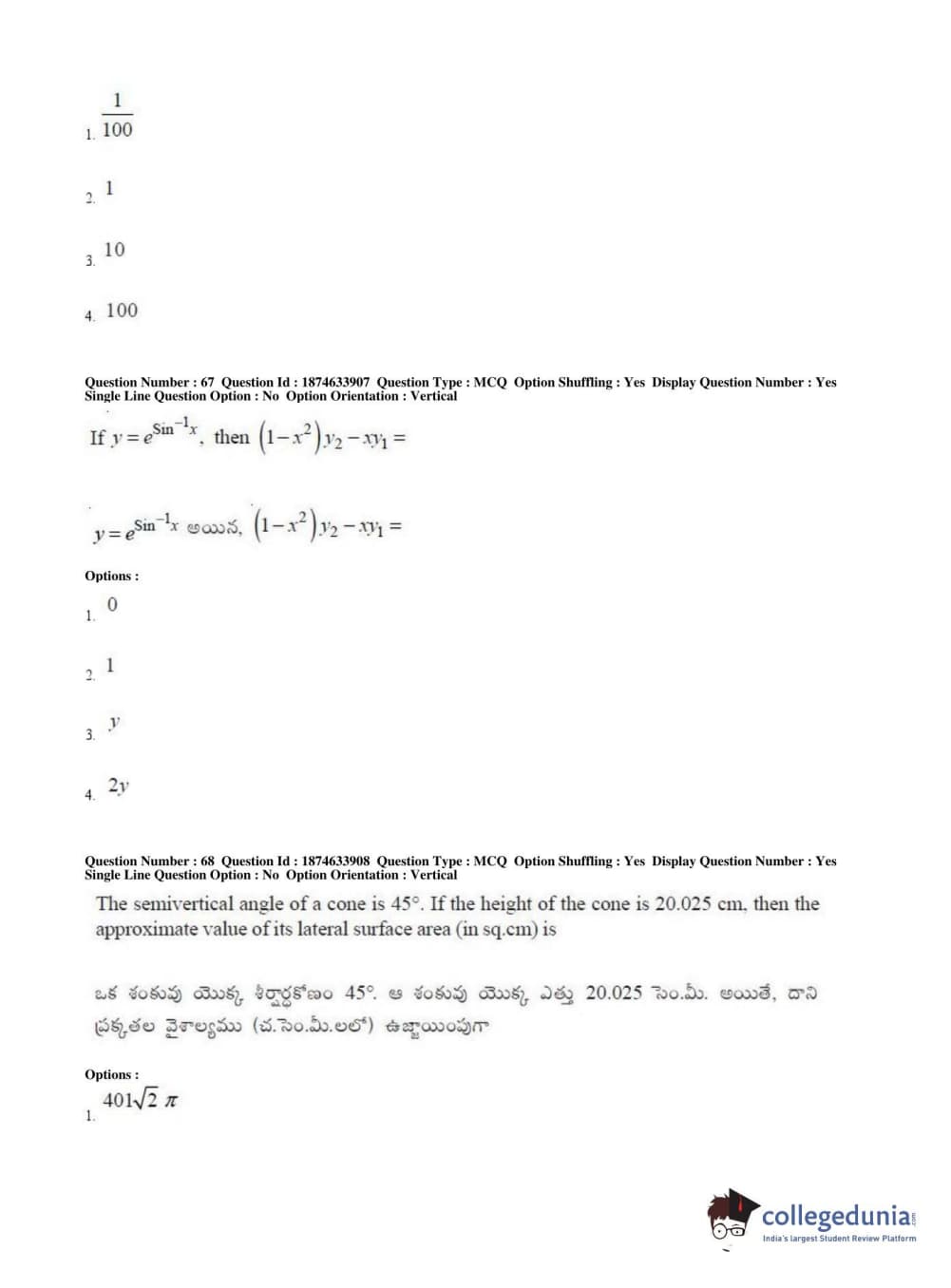 AP EAPCET 2019 Engineering Question Paper with Answer Key PDFs Afternoon Session