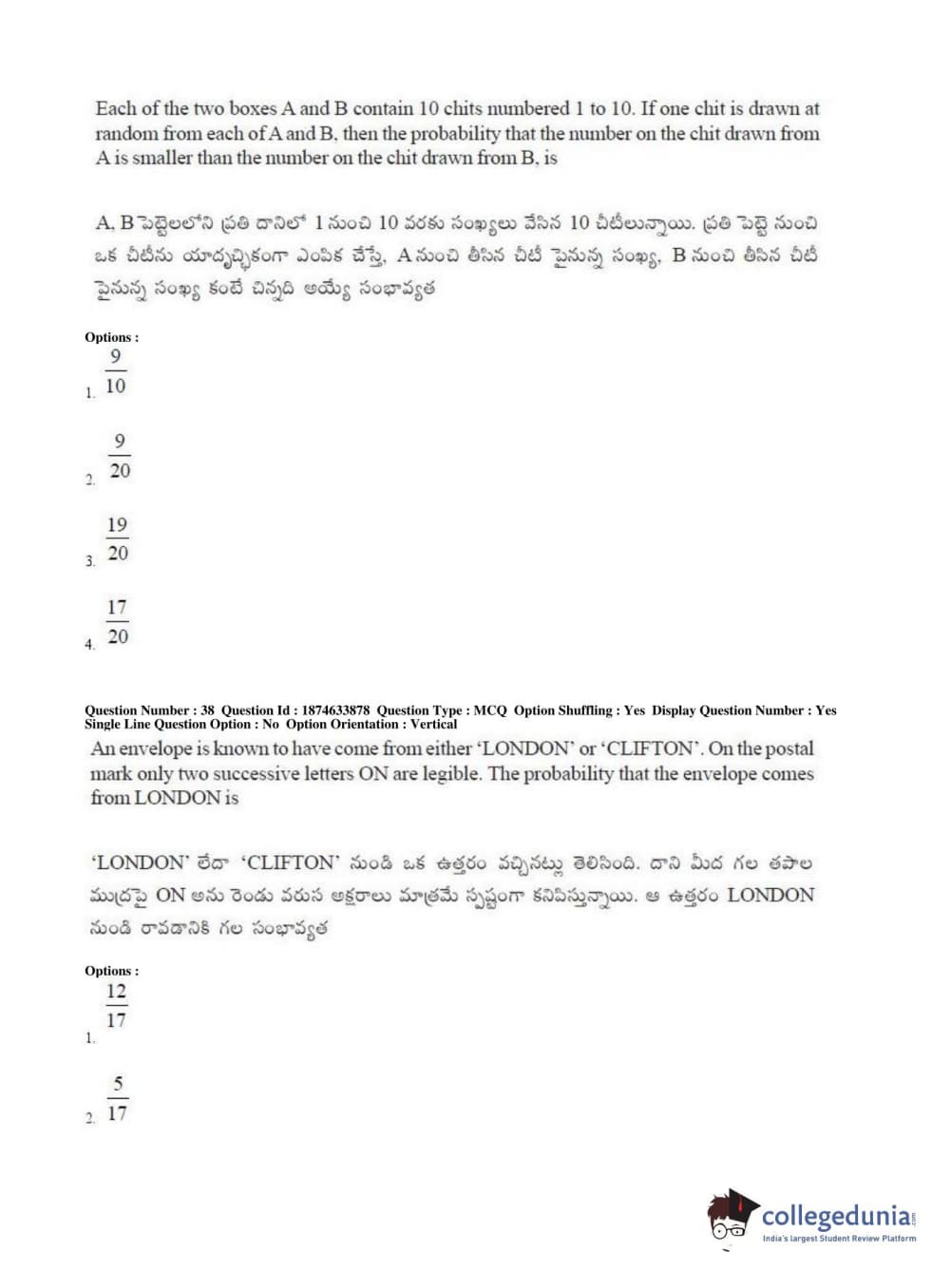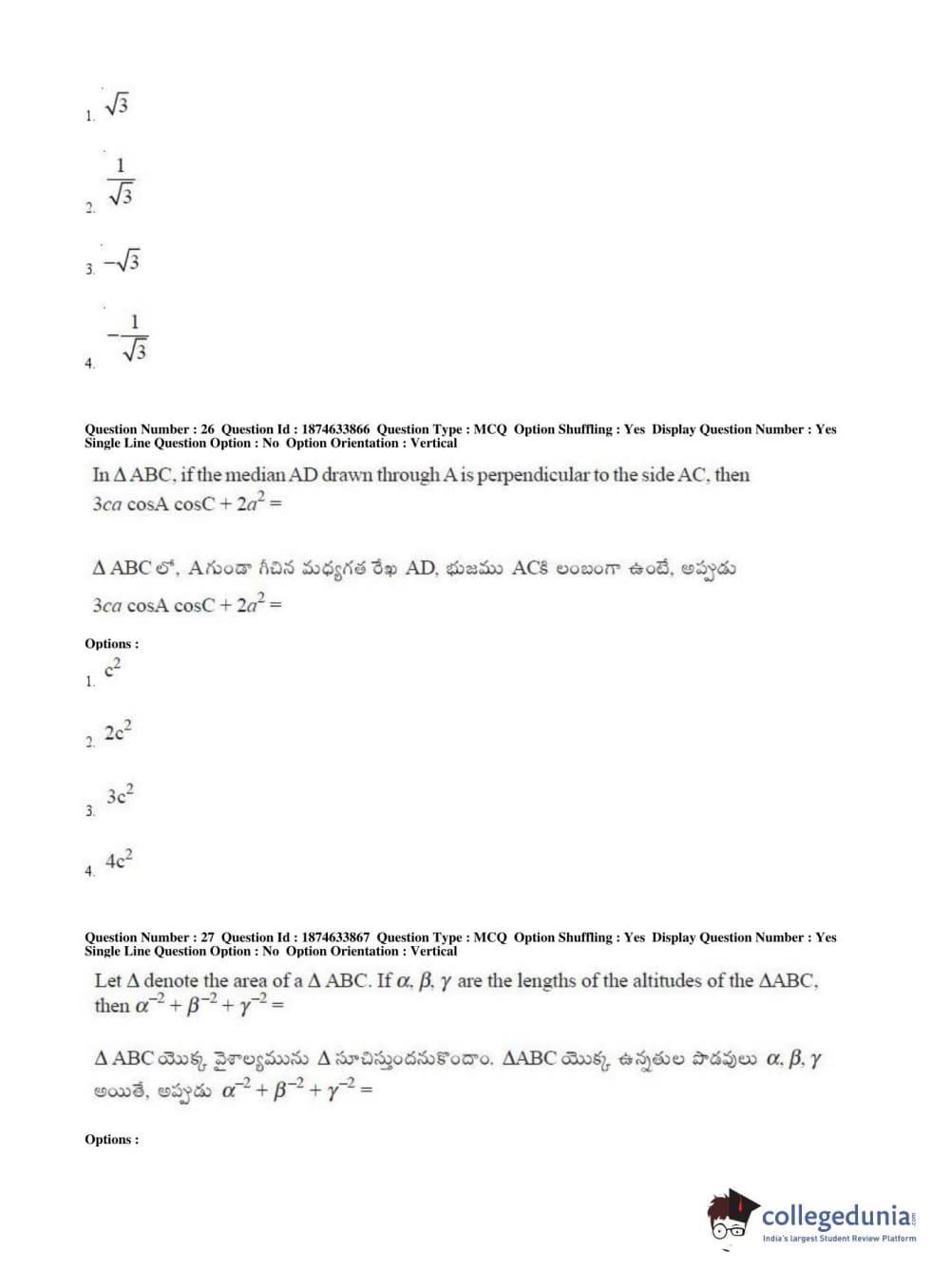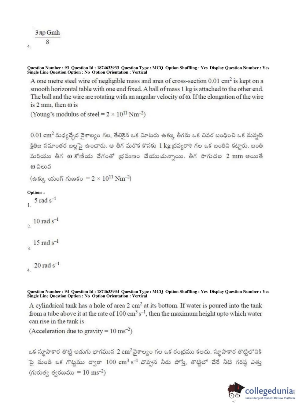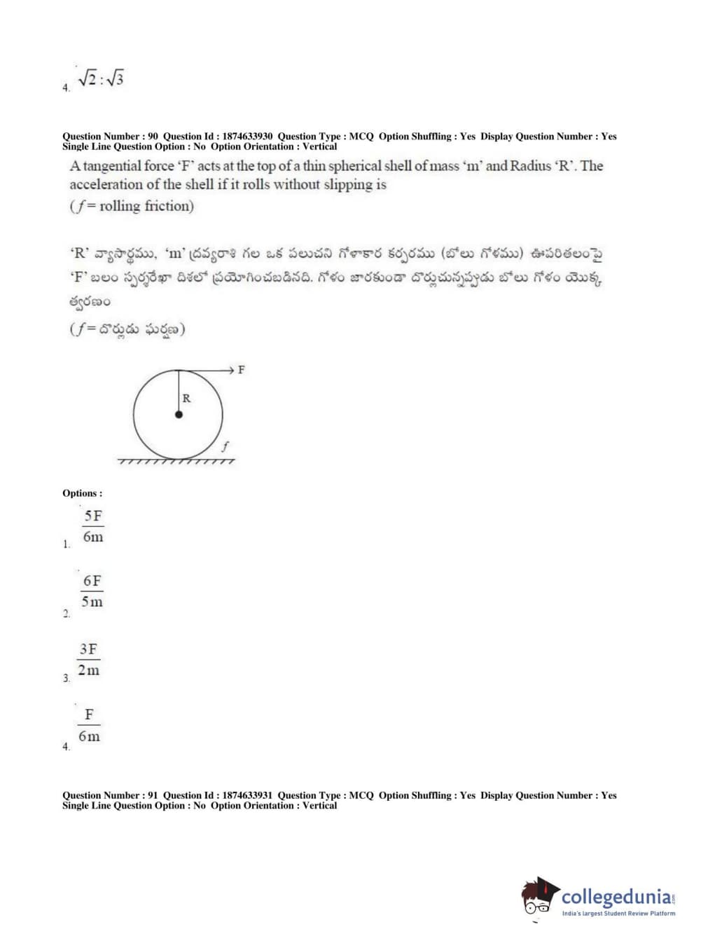 AP EAPCET 2019 Engineering Question Paper with Answer Key PDFs Afternoon Session