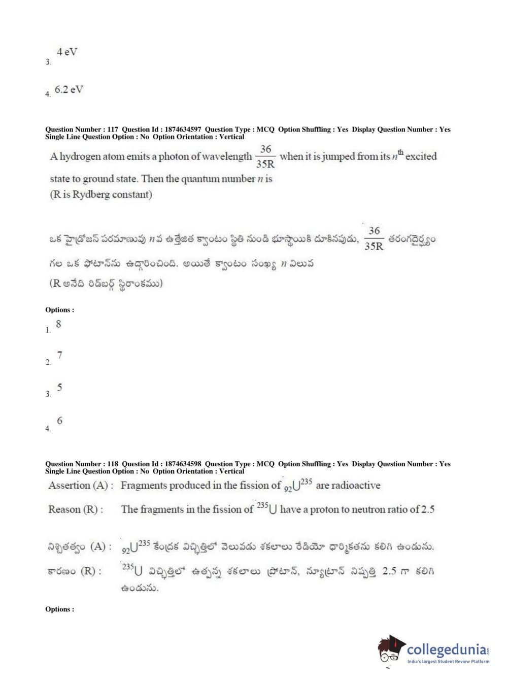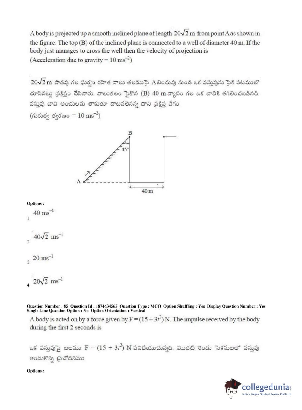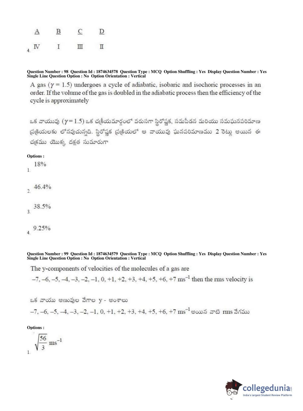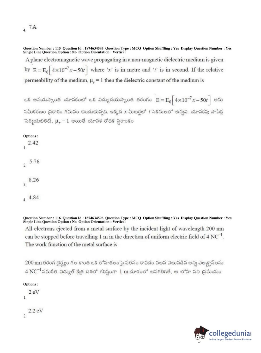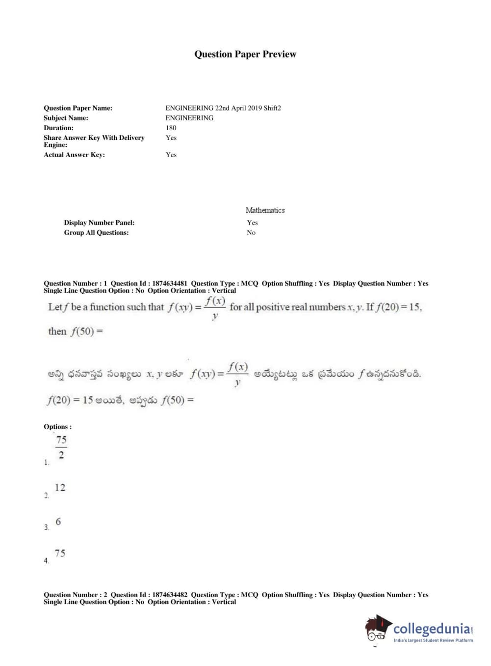 AP EAPCET 2019 Engineering Question Paper with Answer Key PDFs Afternoon Session