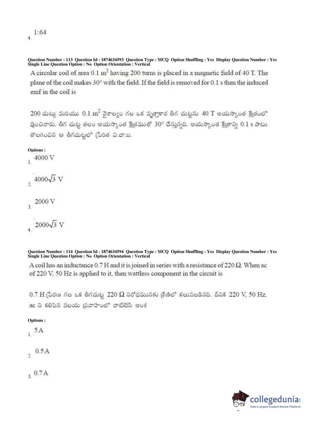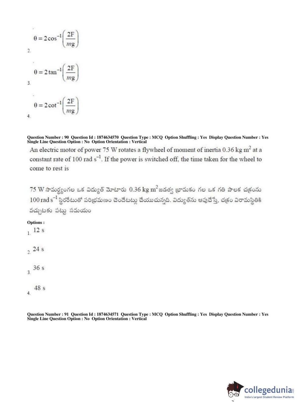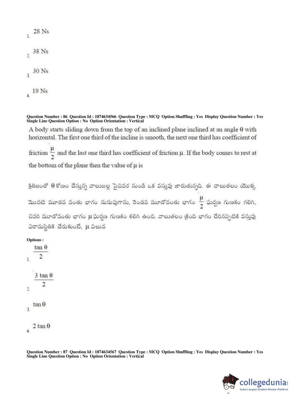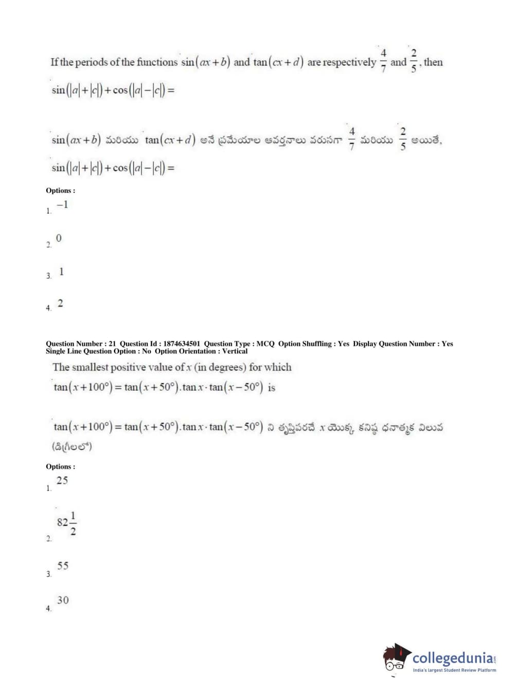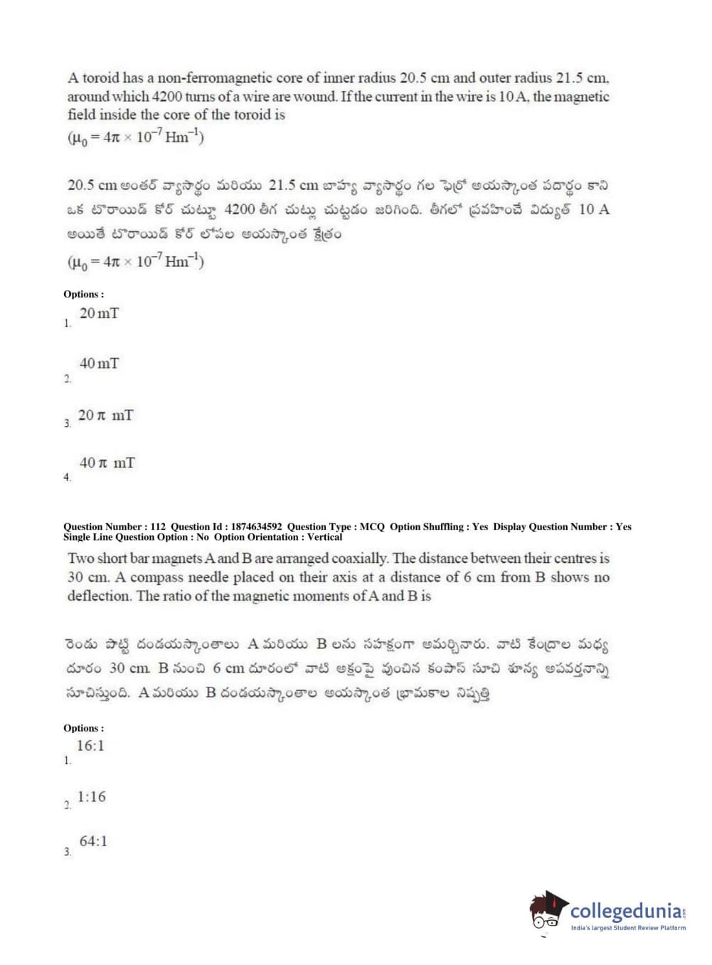 AP EAPCET 2019 Engineering Question Paper with Answer Key PDFs Afternoon Session