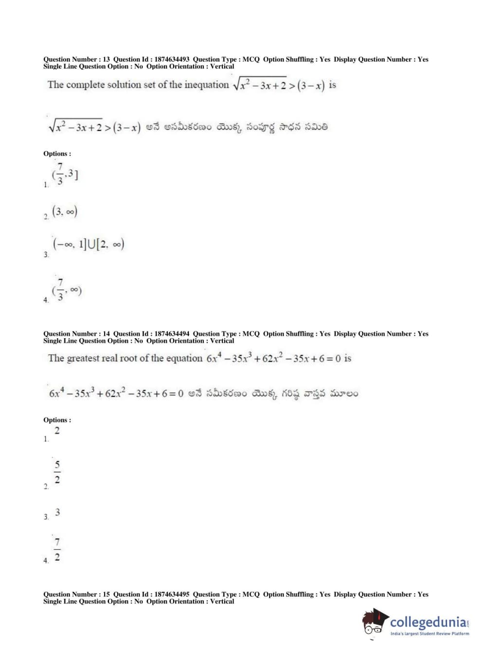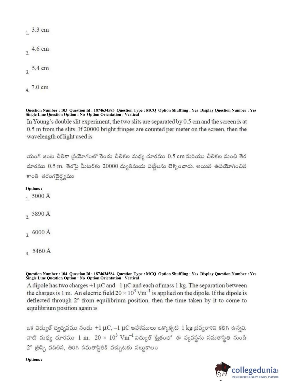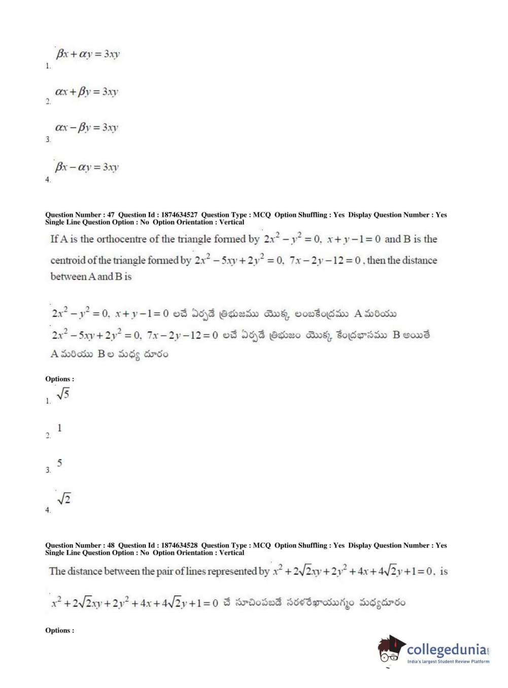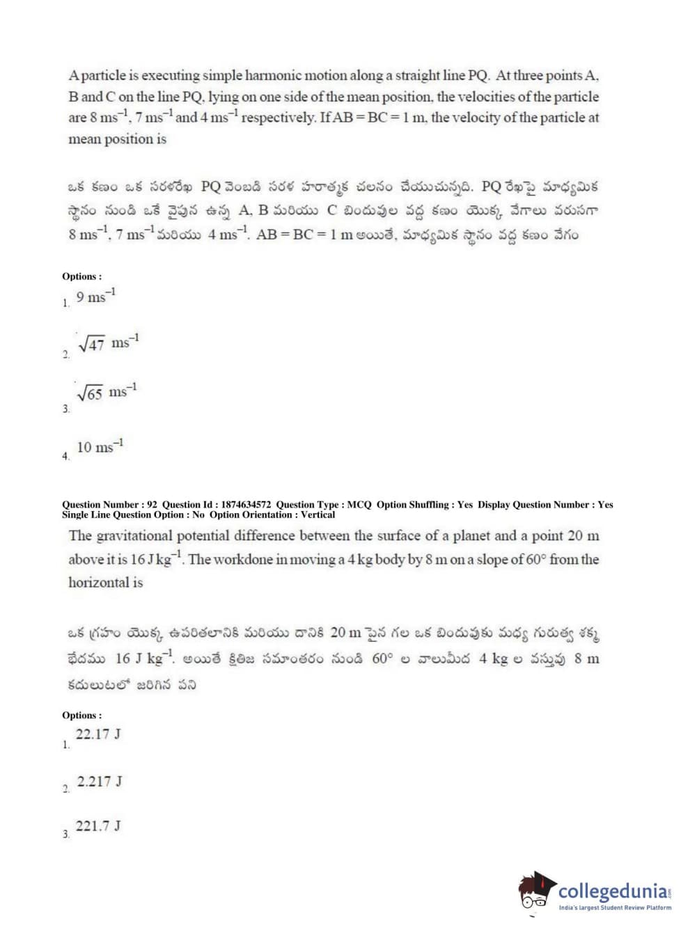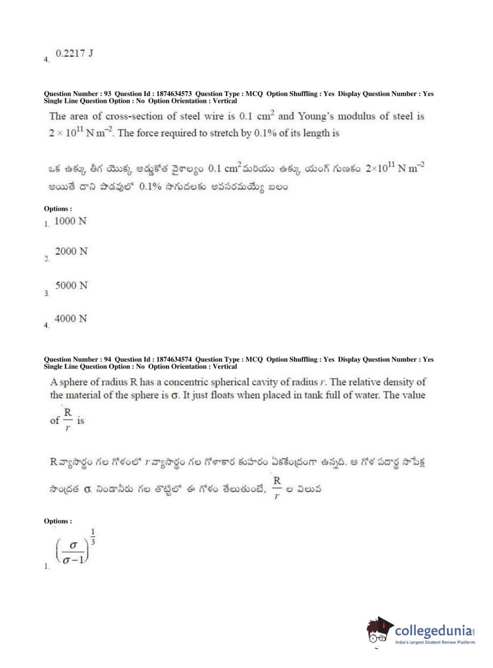 AP EAPCET 2019 Engineering Question Paper with Answer Key PDFs Afternoon Session