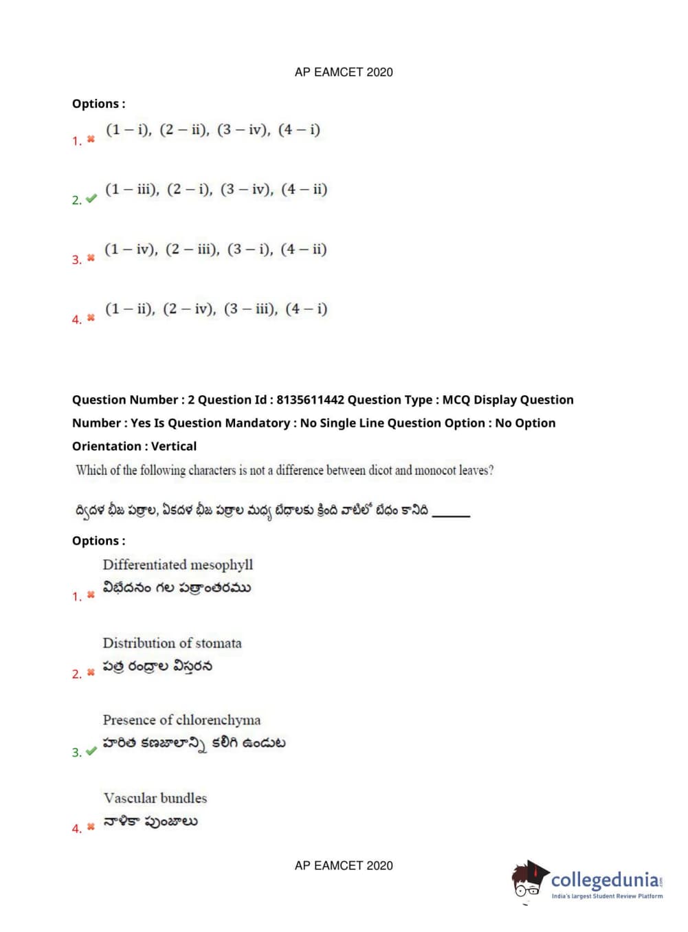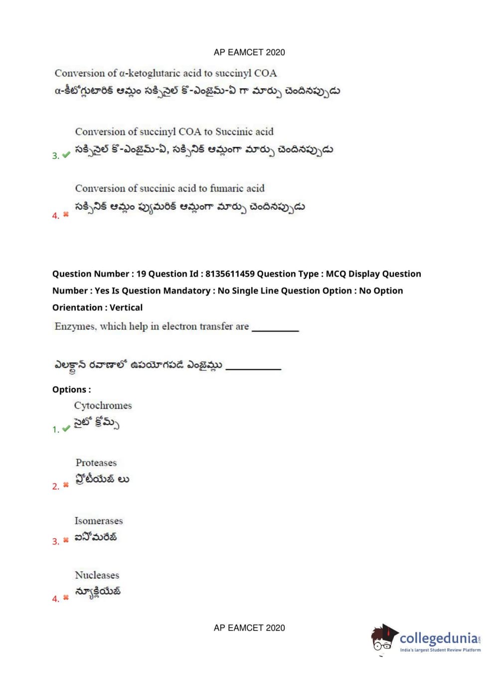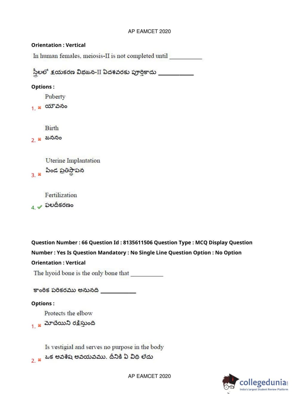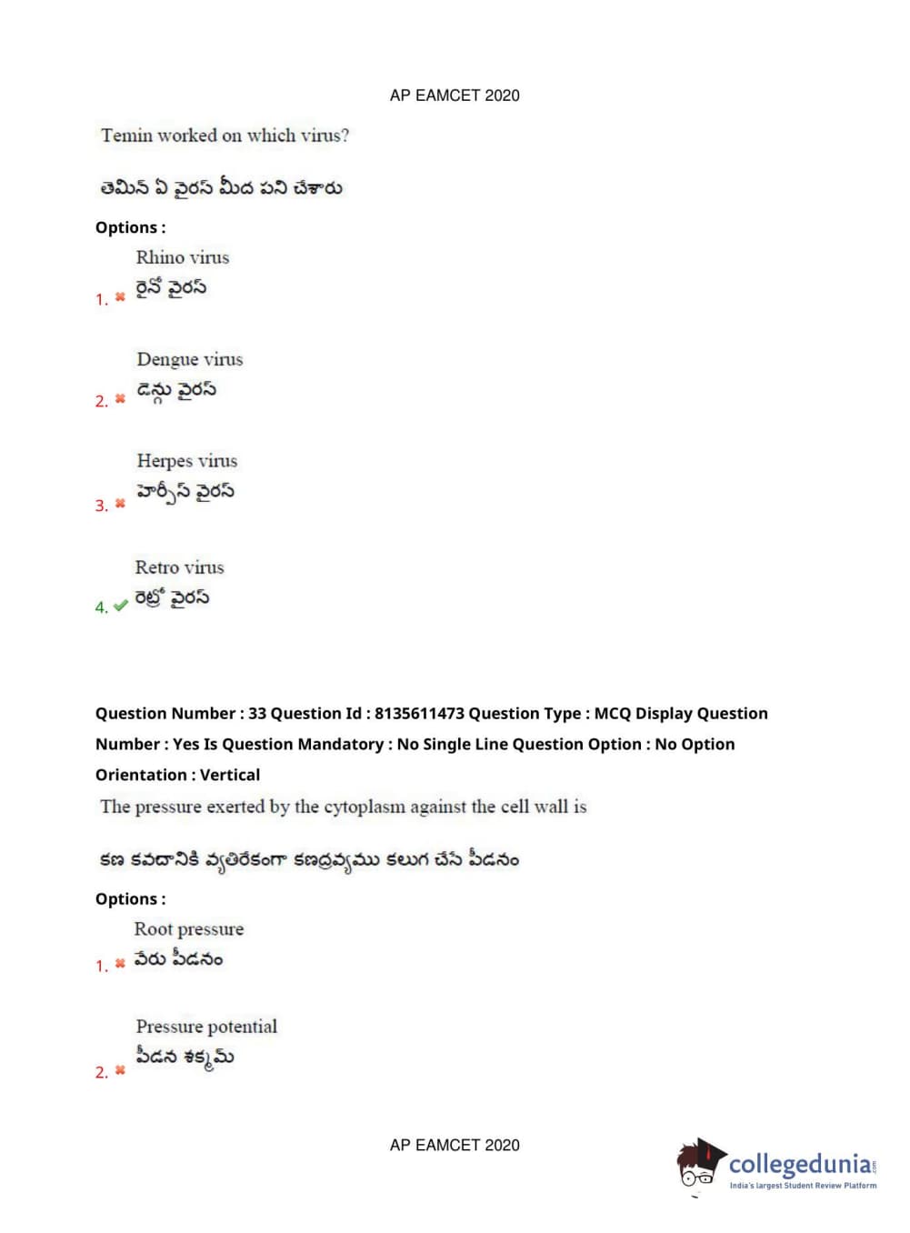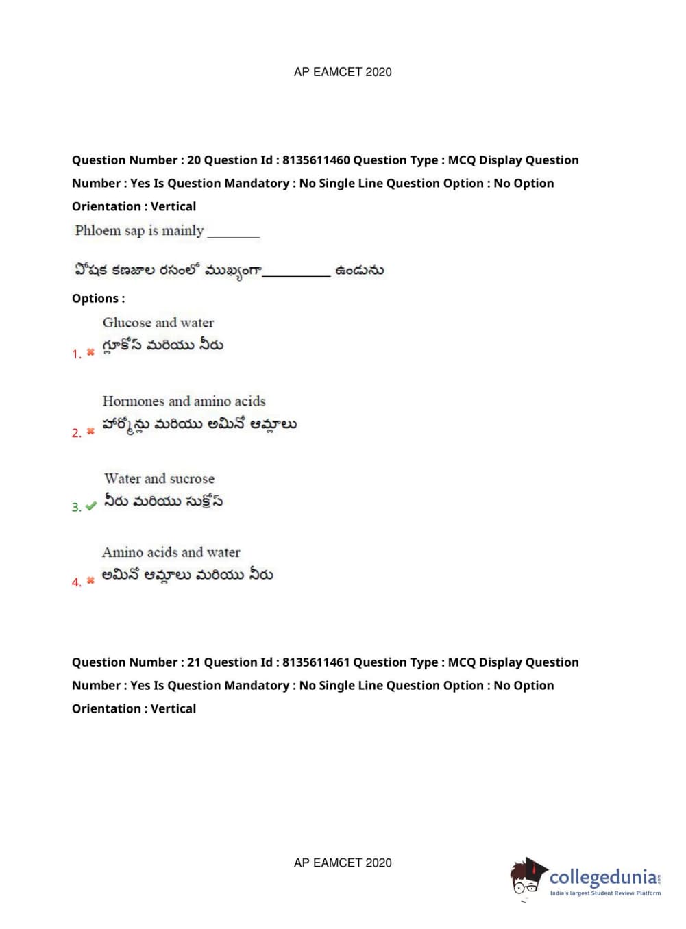 AP EAPCET 2020 Agriculture and Medical Question Paper with Answer Key PDFs Afternoon Session