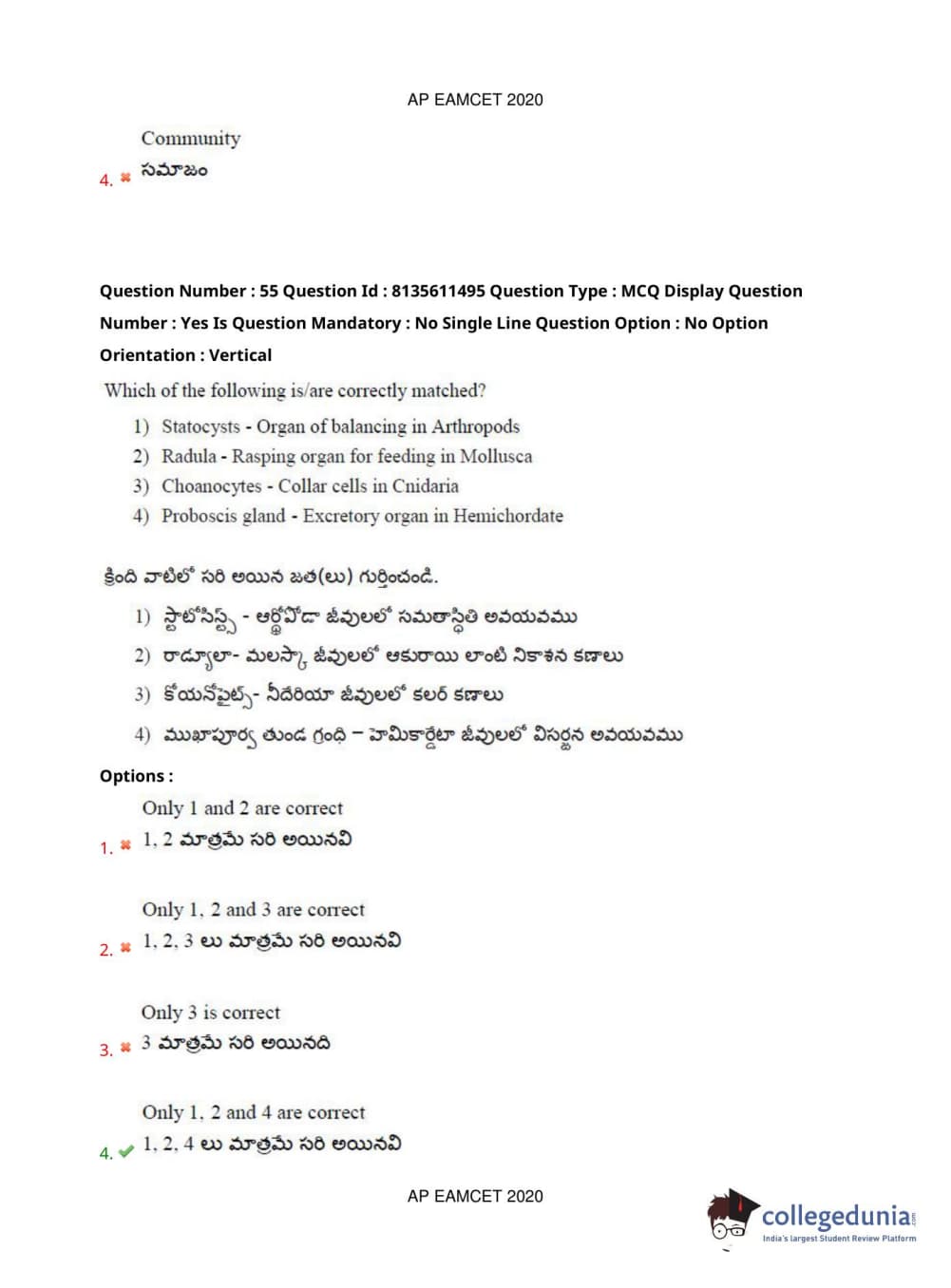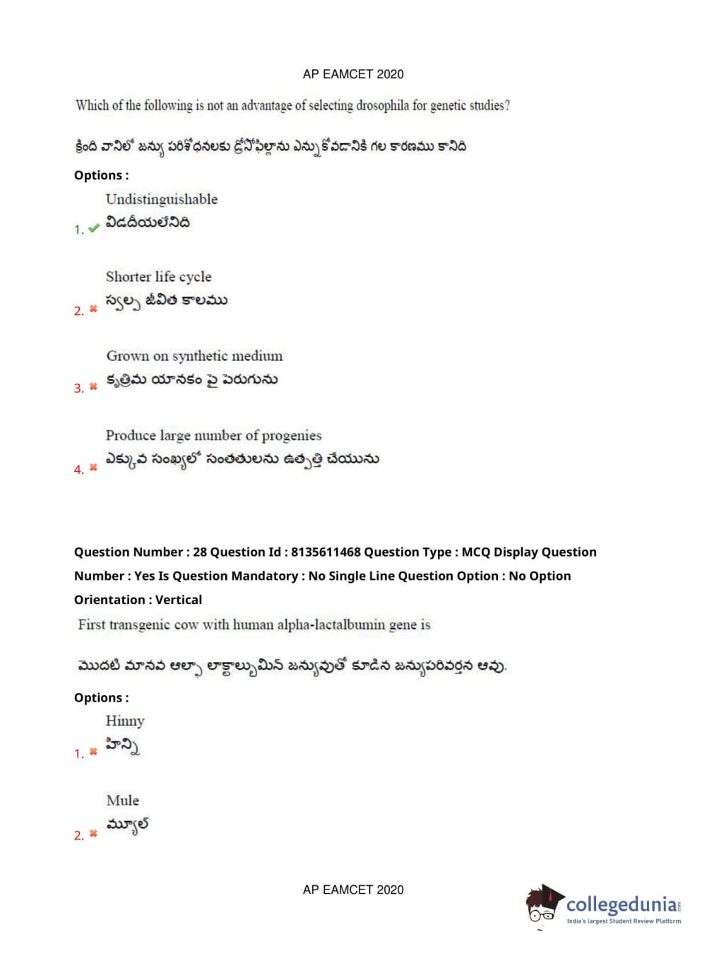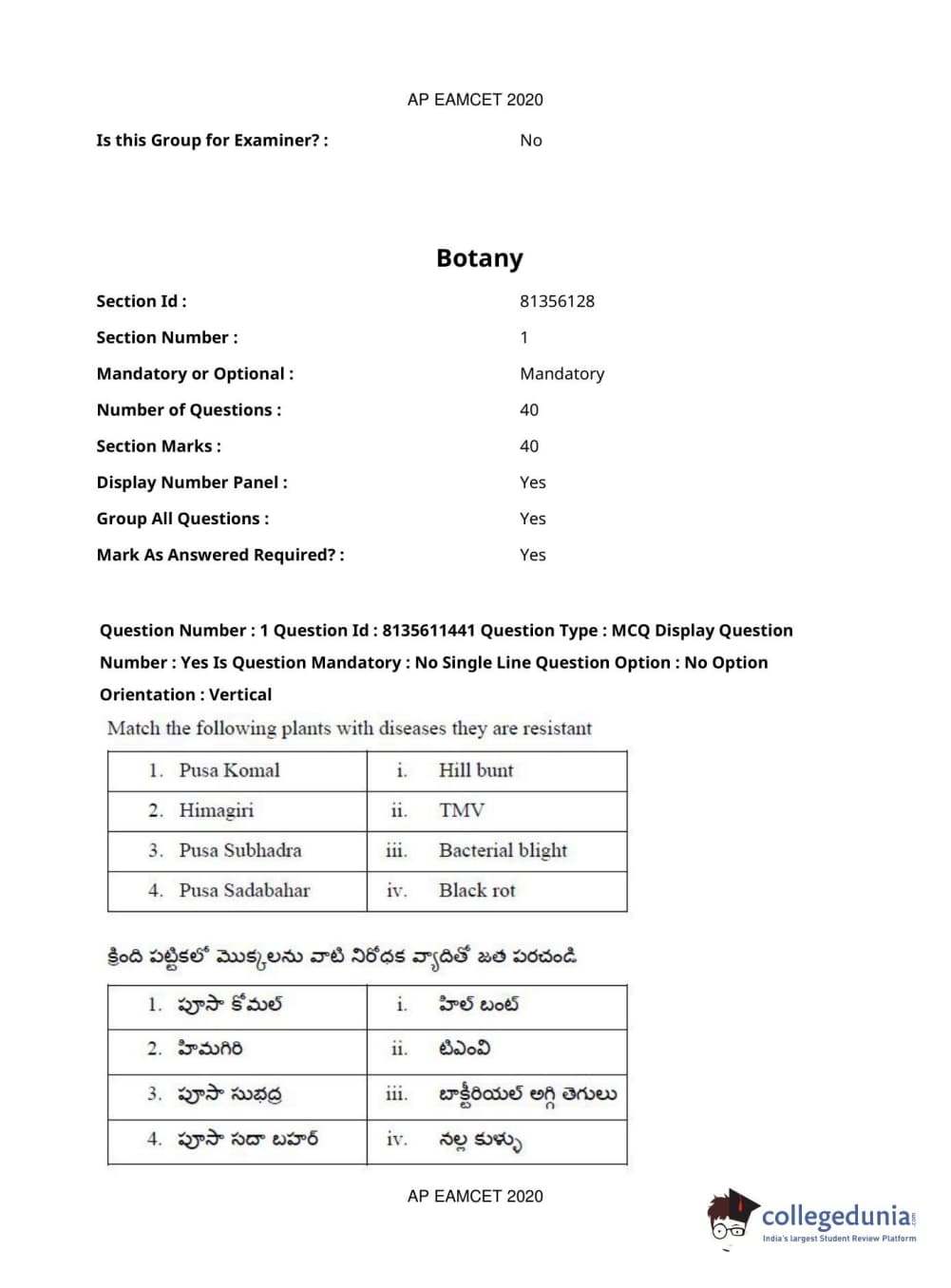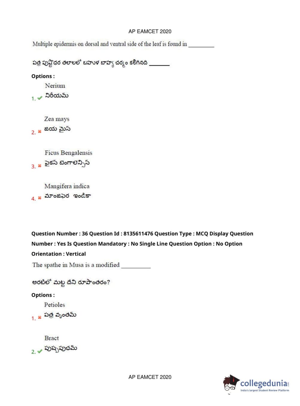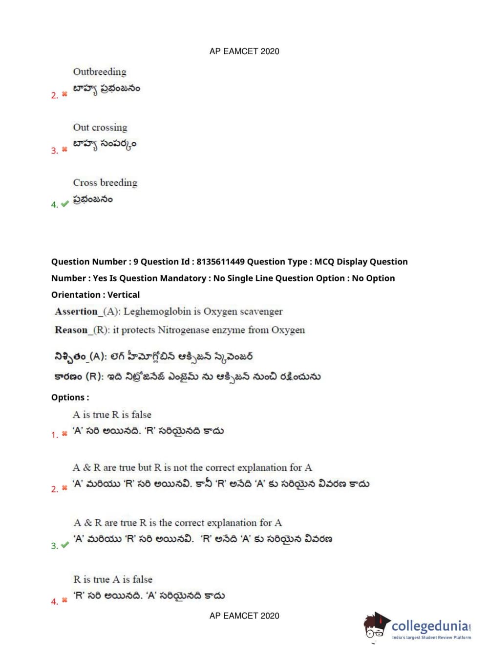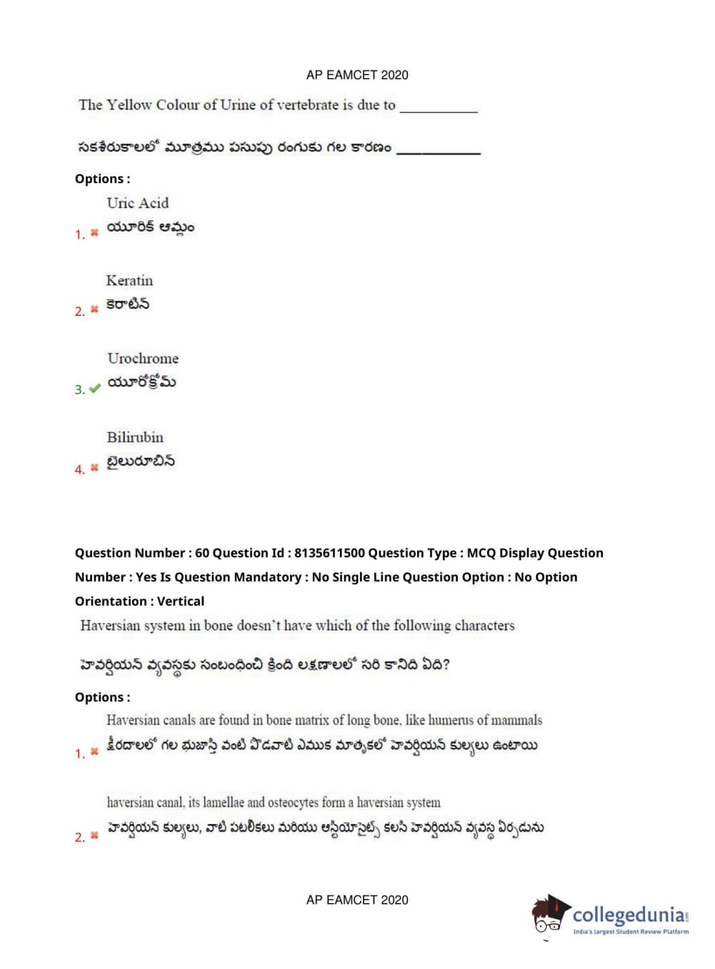 AP EAPCET 2020 Agriculture and Medical Question Paper with Answer Key PDFs Afternoon Session