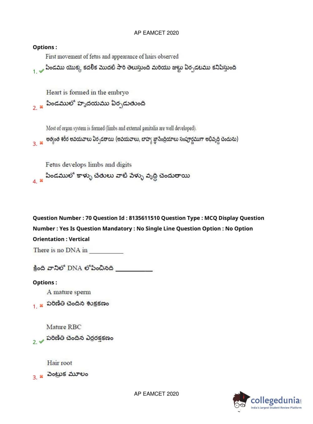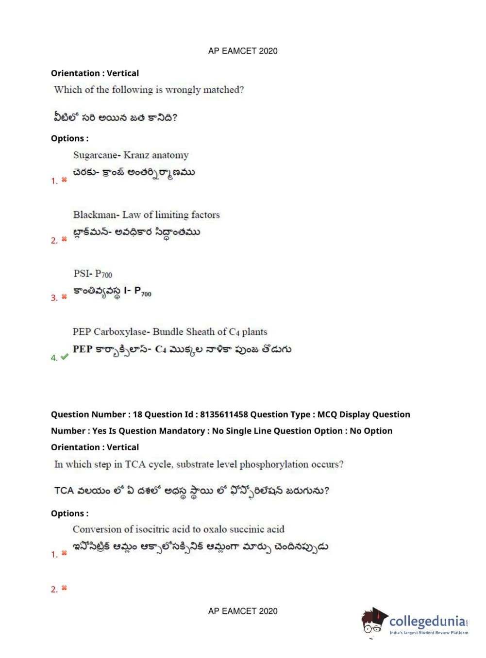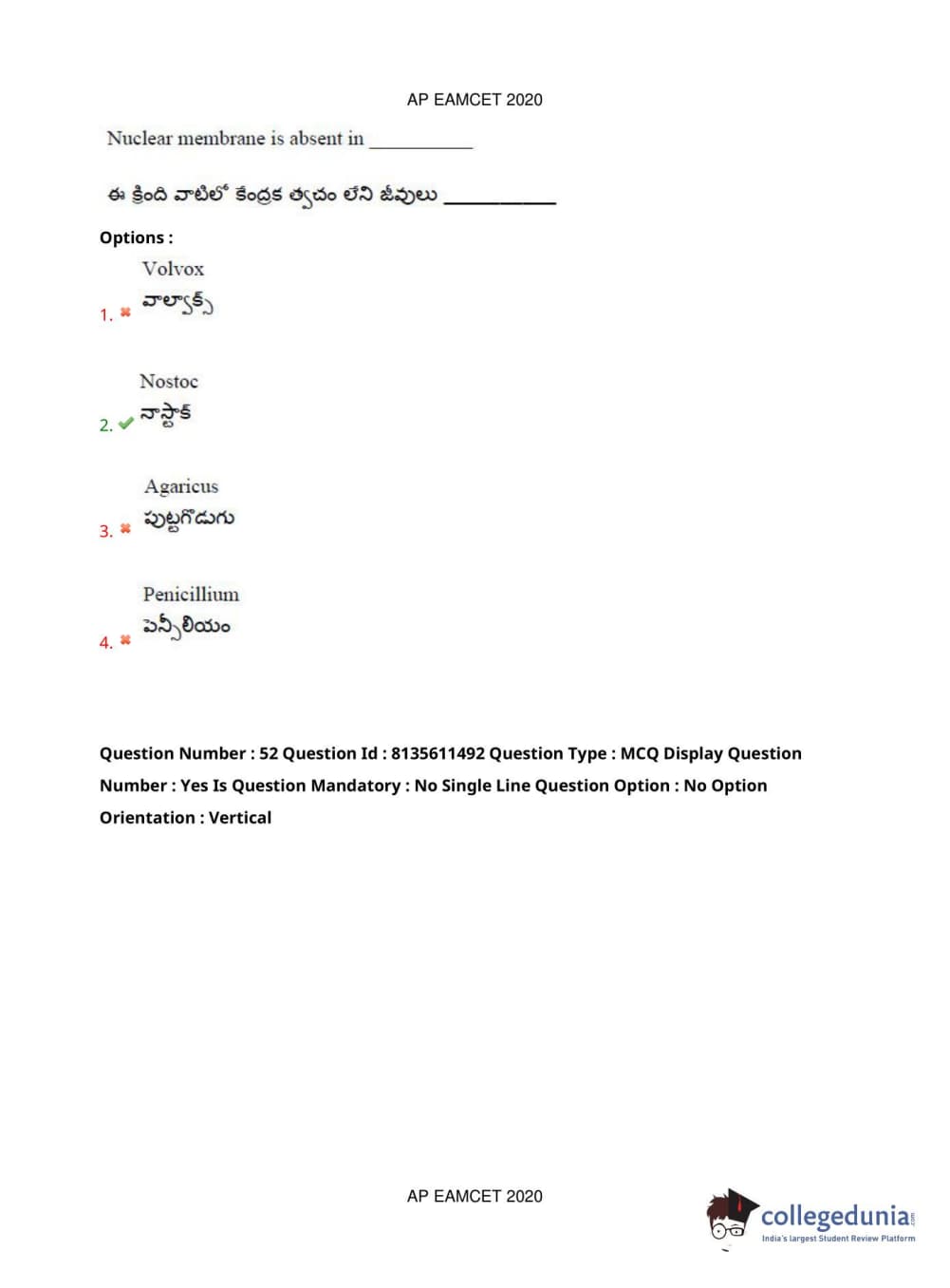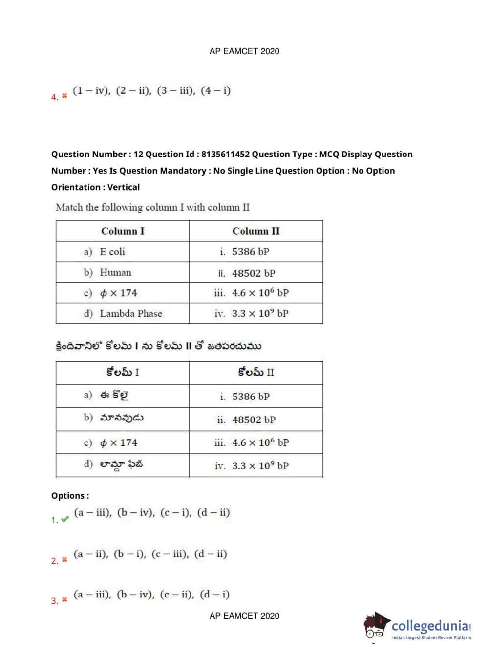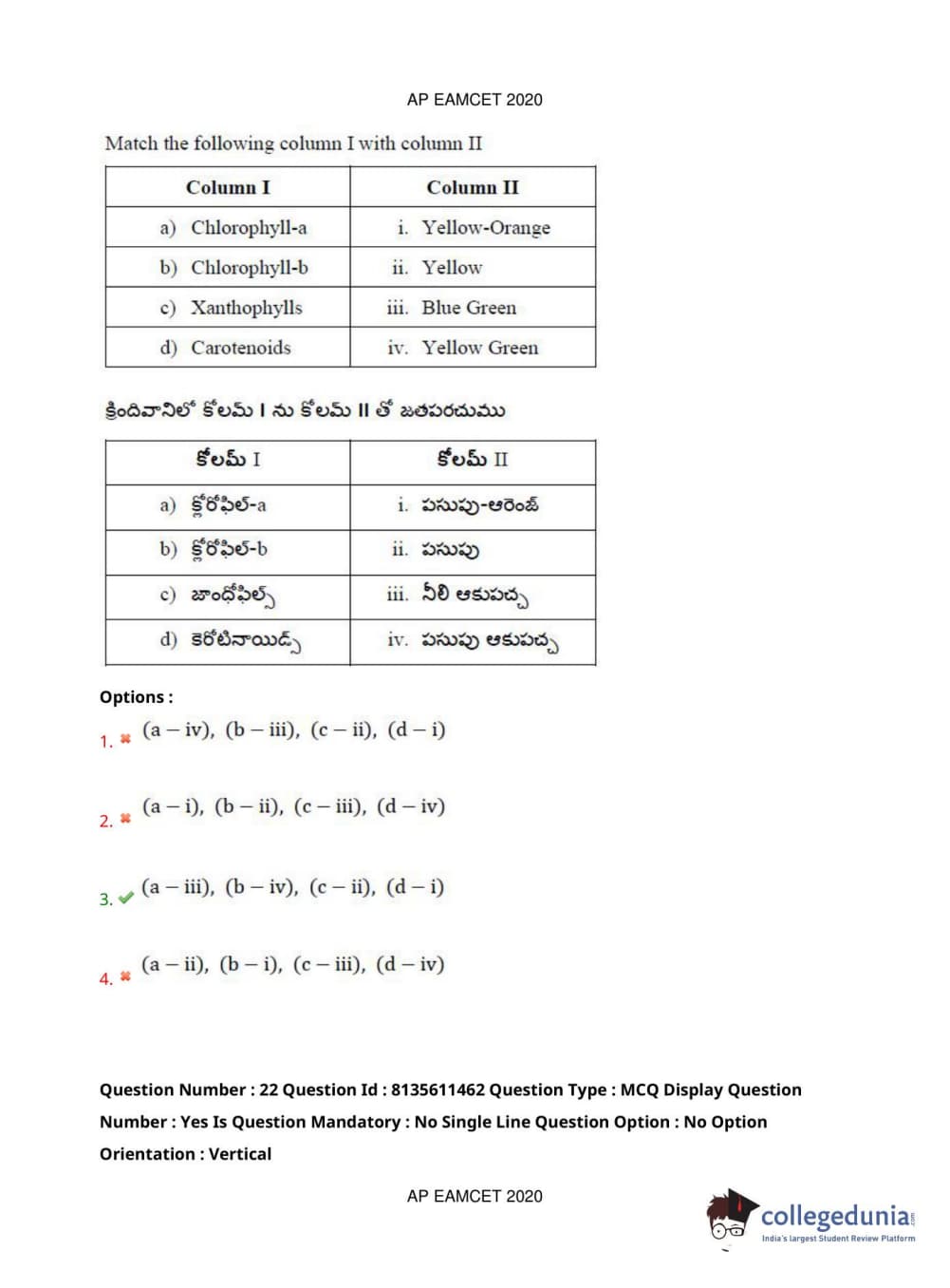 AP EAPCET 2020 Agriculture and Medical Question Paper with Answer Key PDFs Afternoon Session