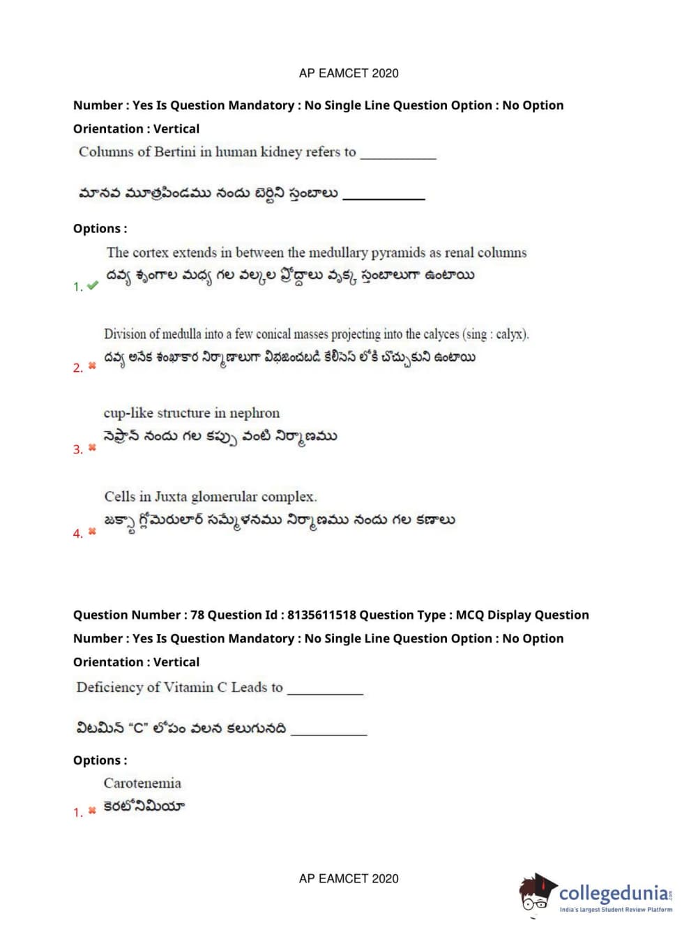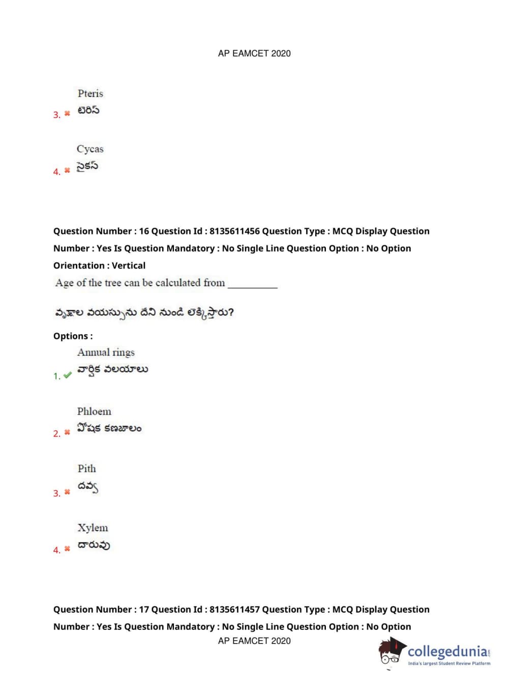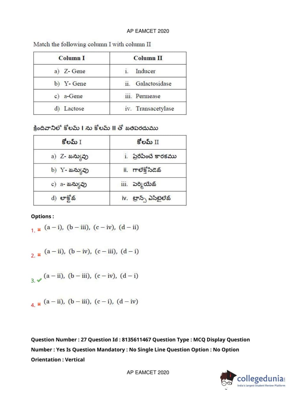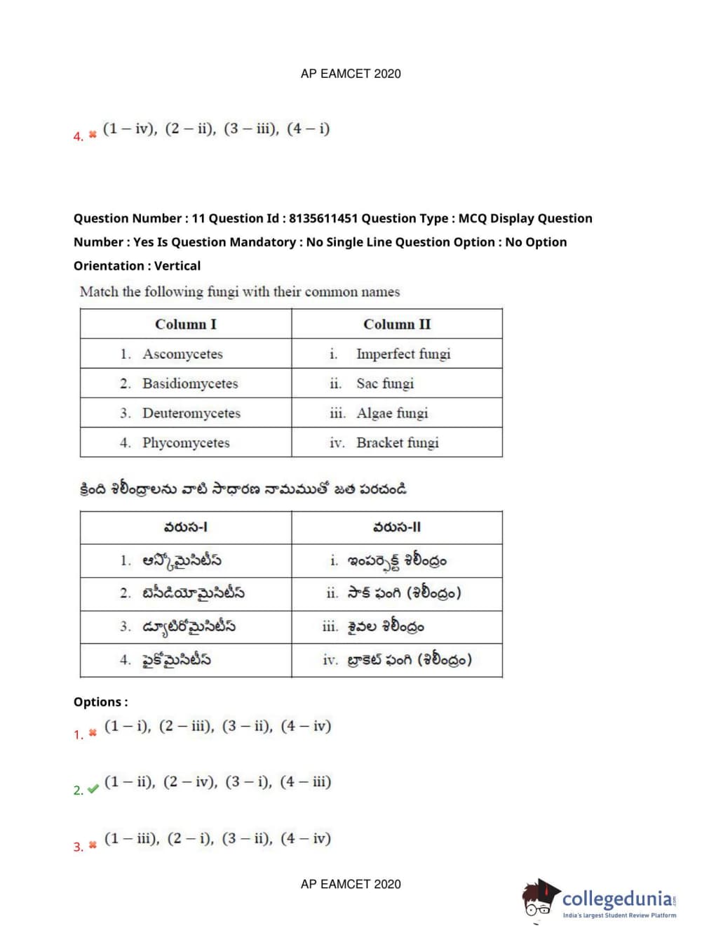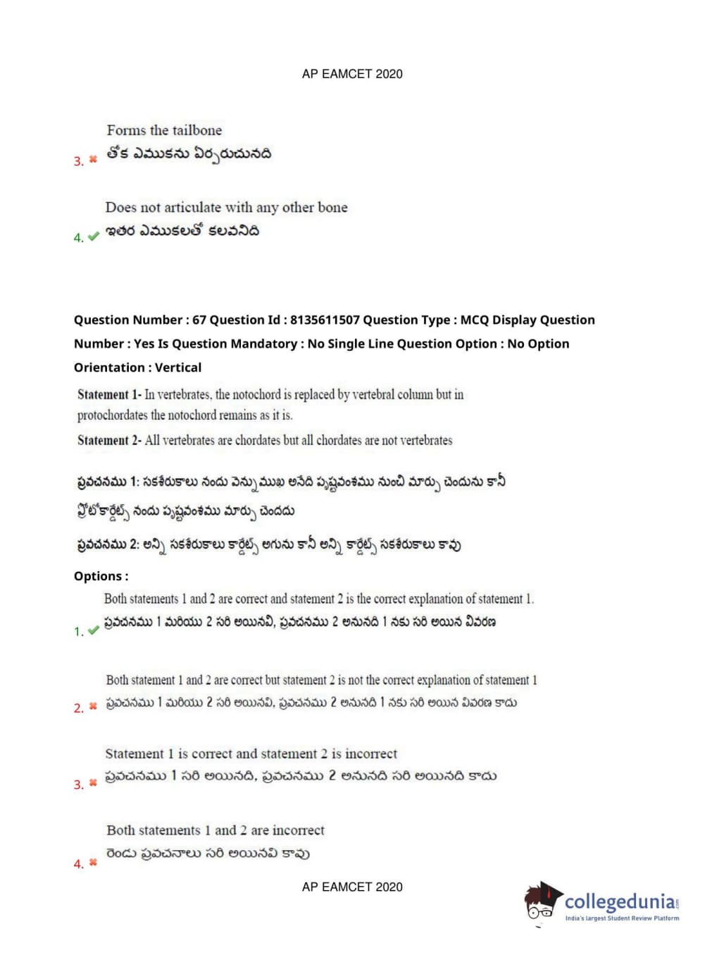 AP EAPCET 2020 Agriculture and Medical Question Paper with Answer Key PDFs Afternoon Session