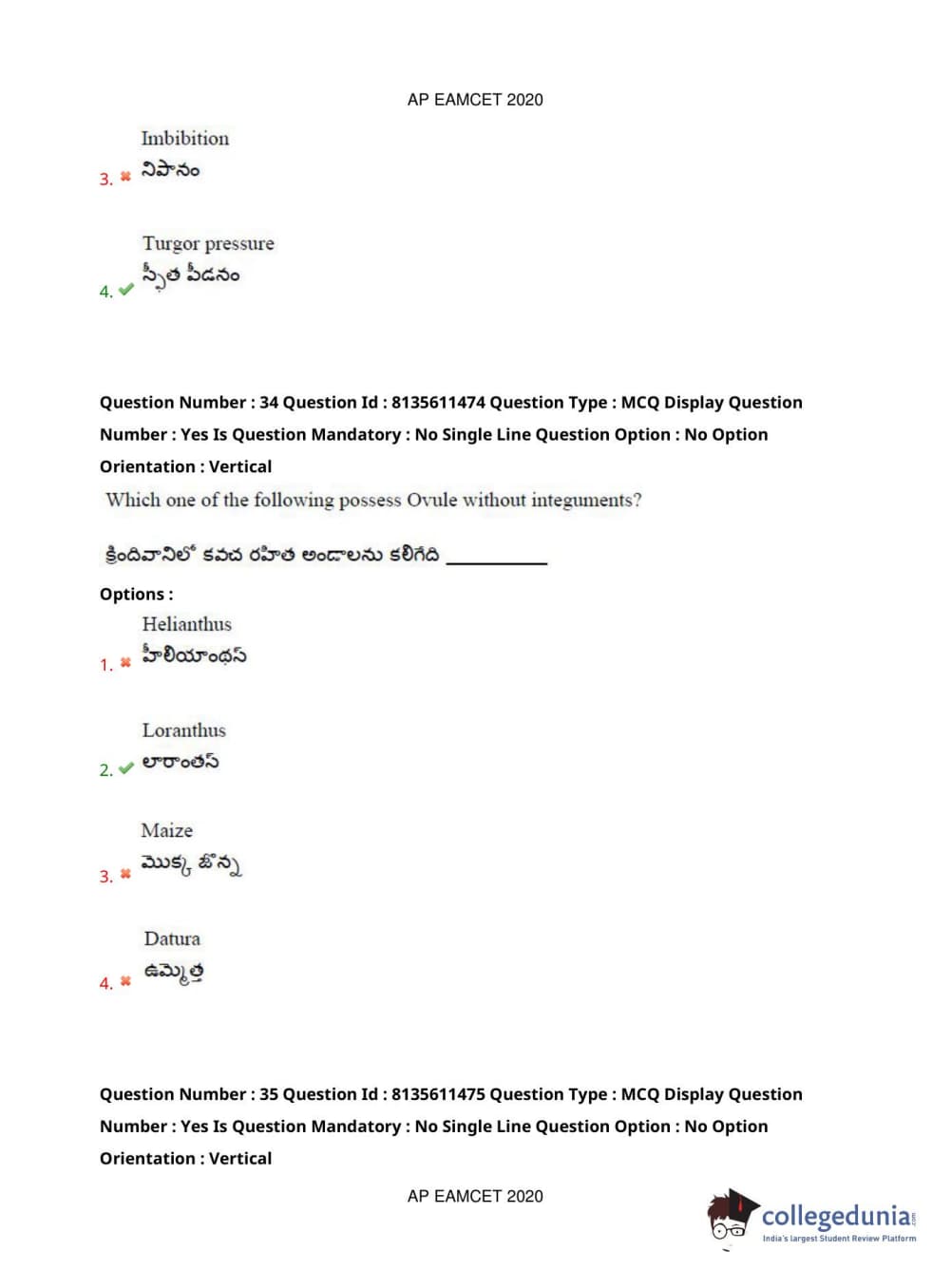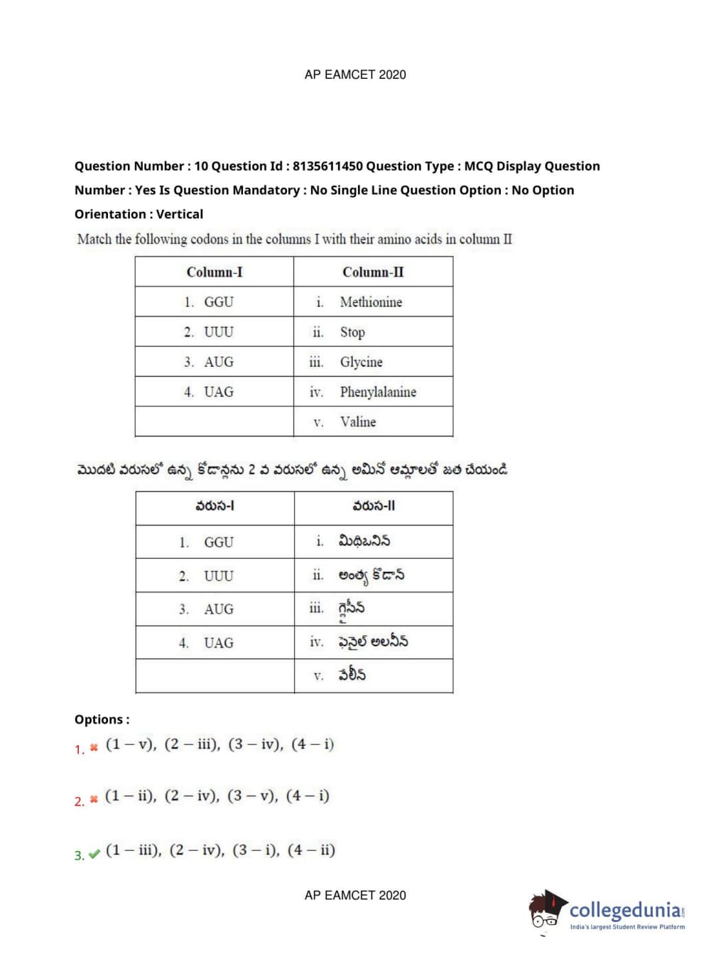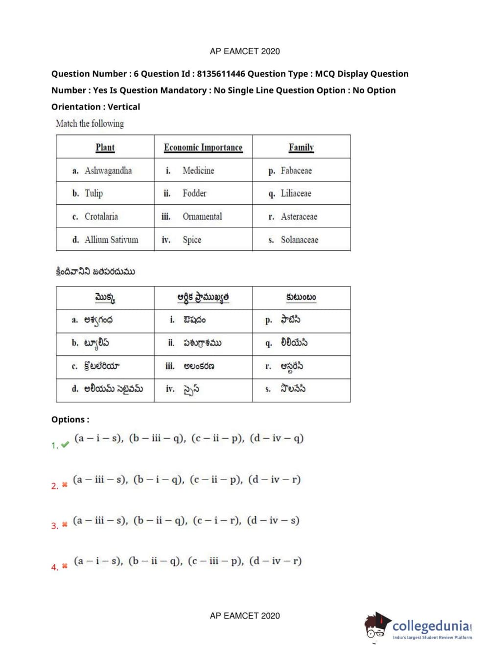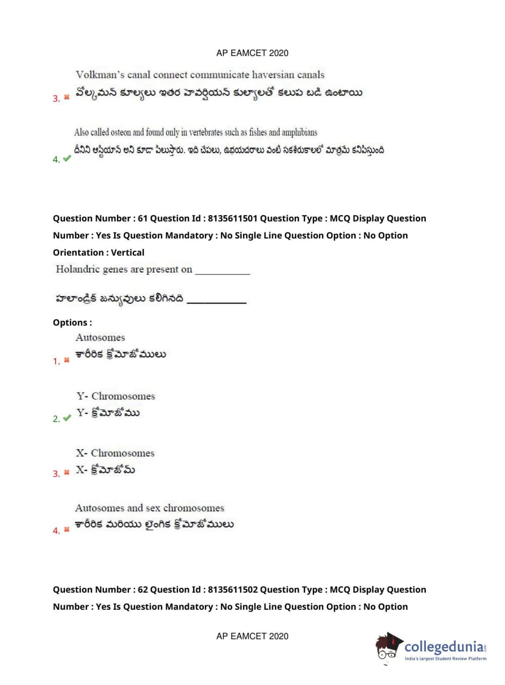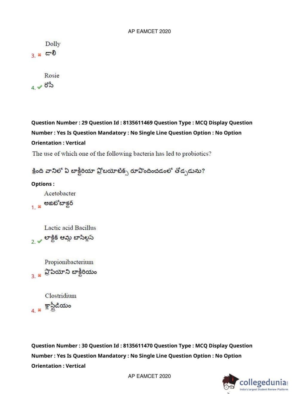 AP EAPCET 2020 Agriculture and Medical Question Paper with Answer Key PDFs Afternoon Session