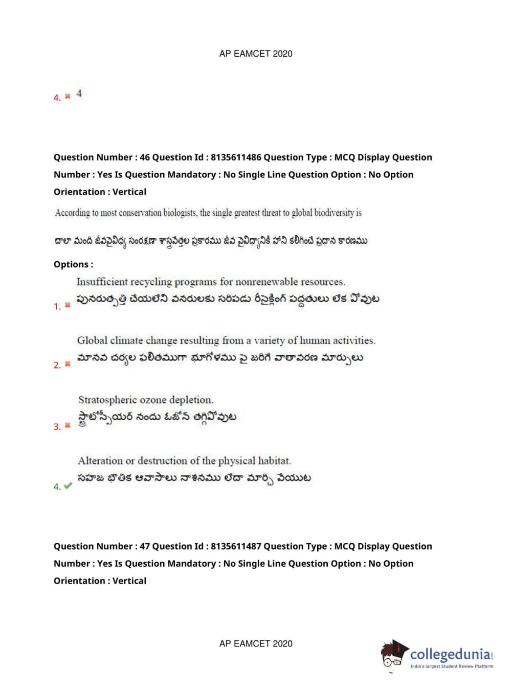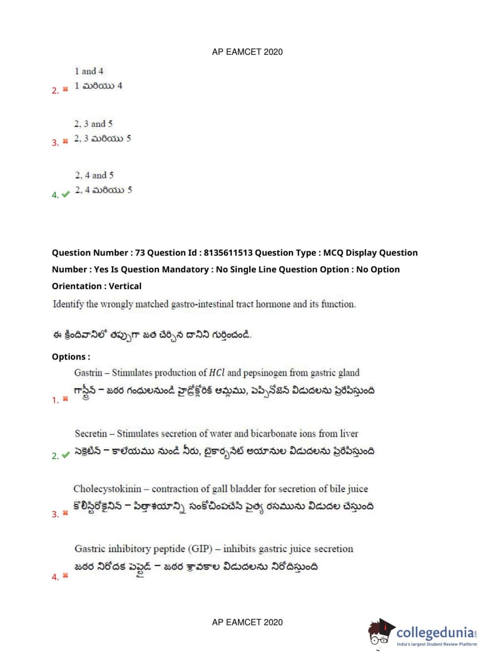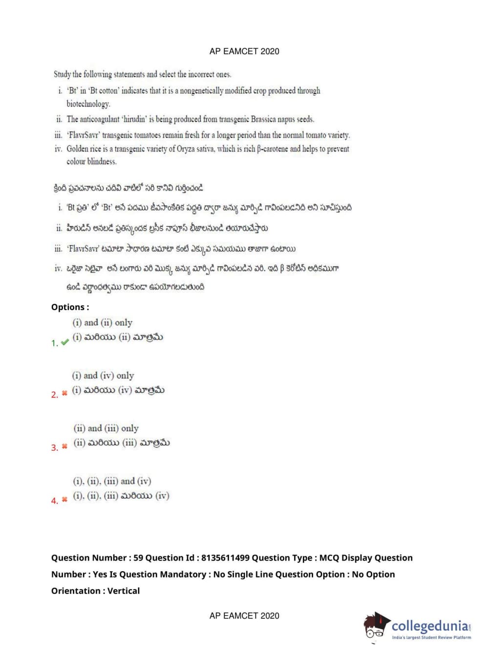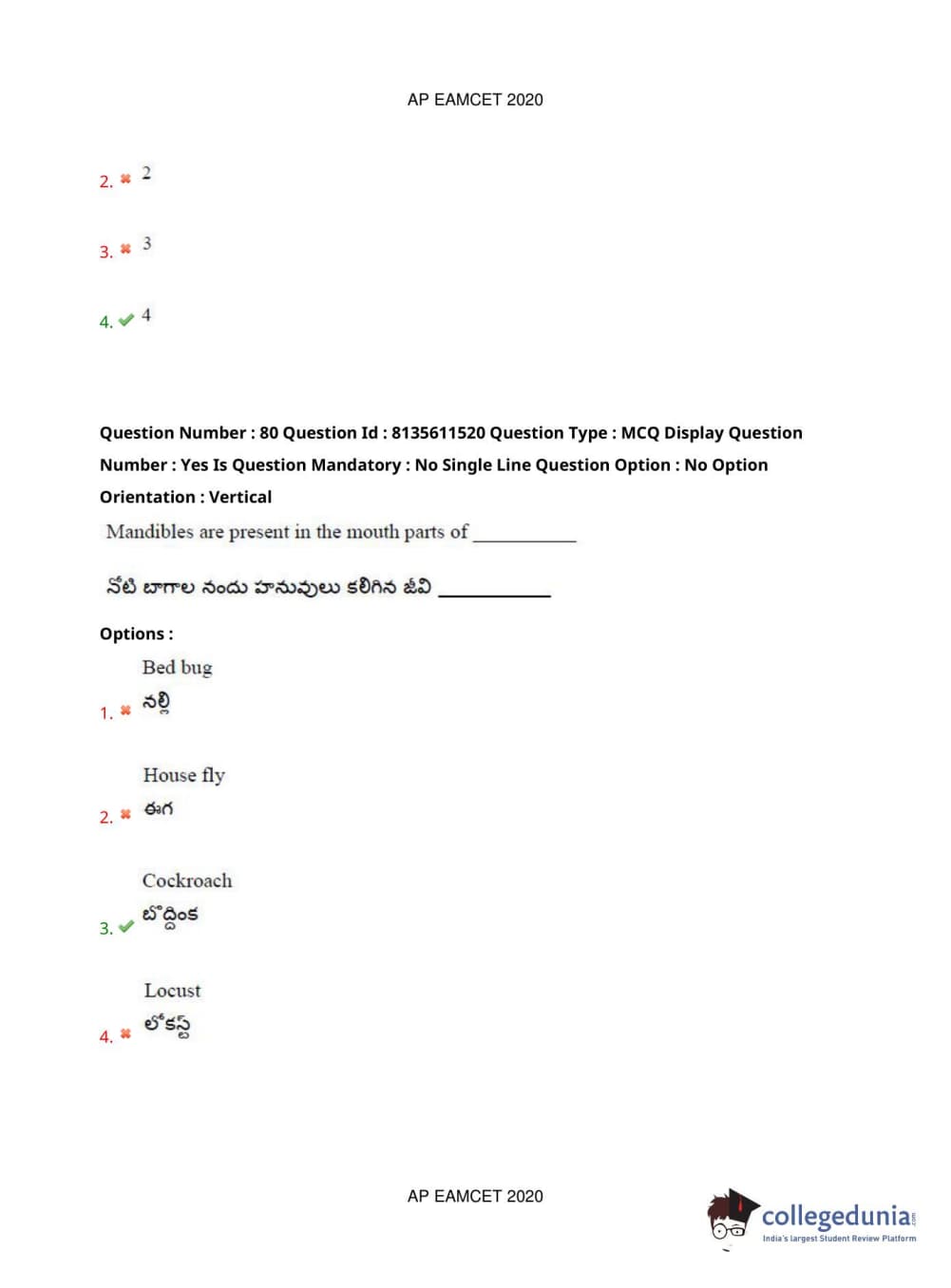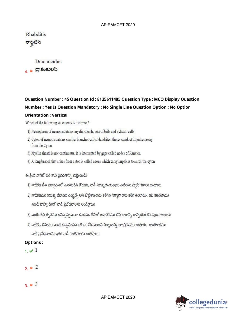 AP EAPCET 2020 Agriculture and Medical Question Paper with Answer Key PDFs Afternoon Session