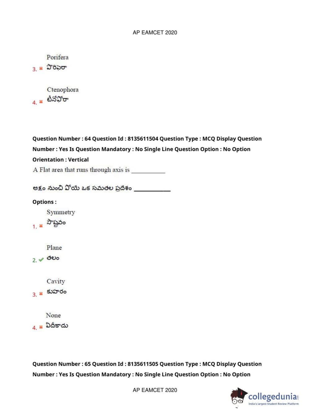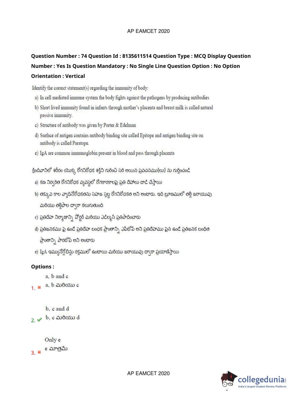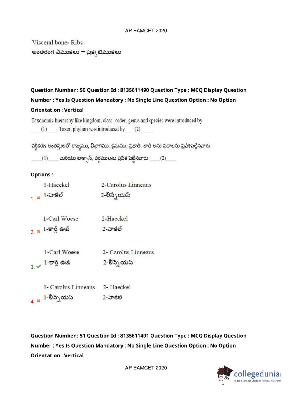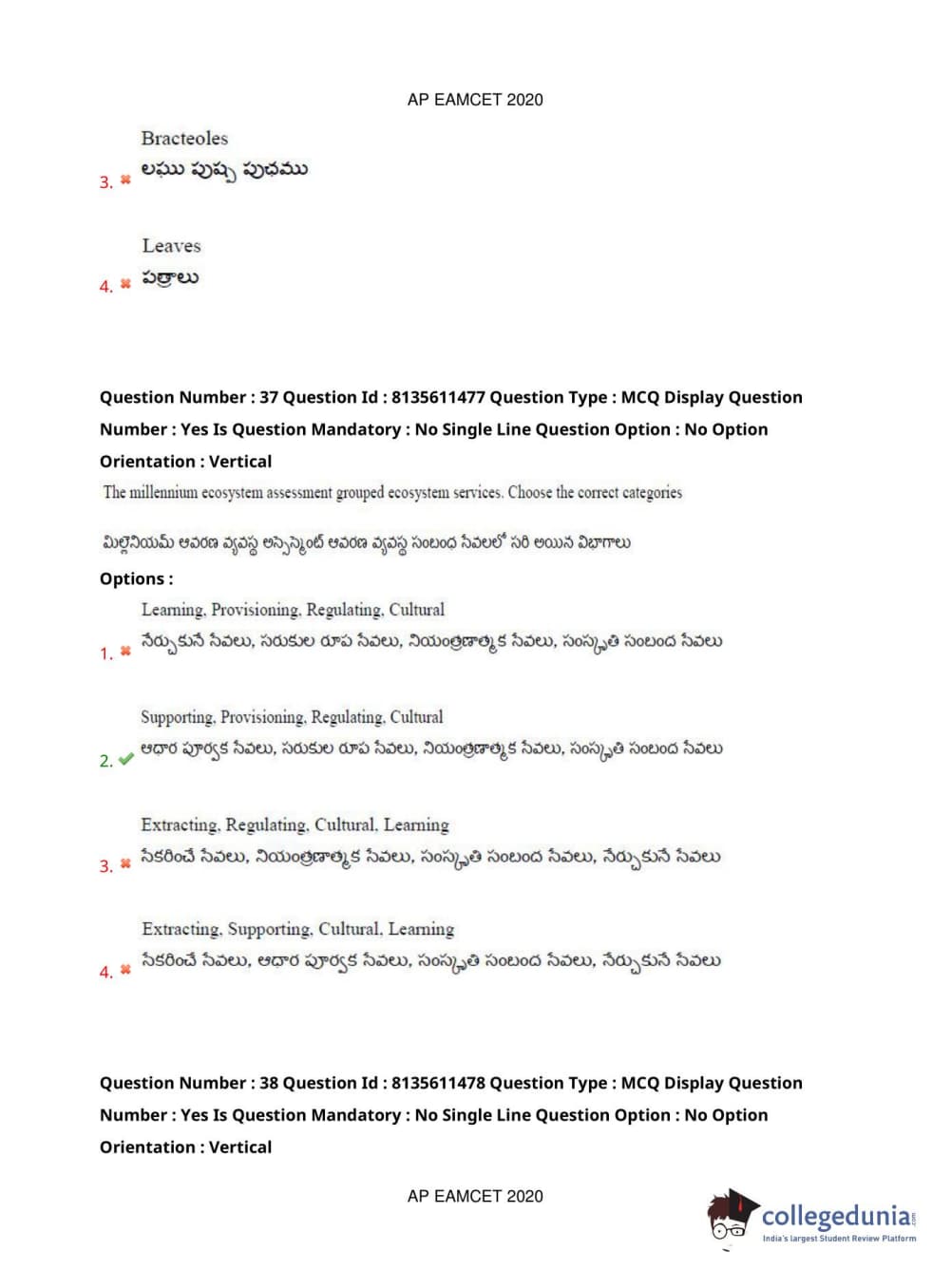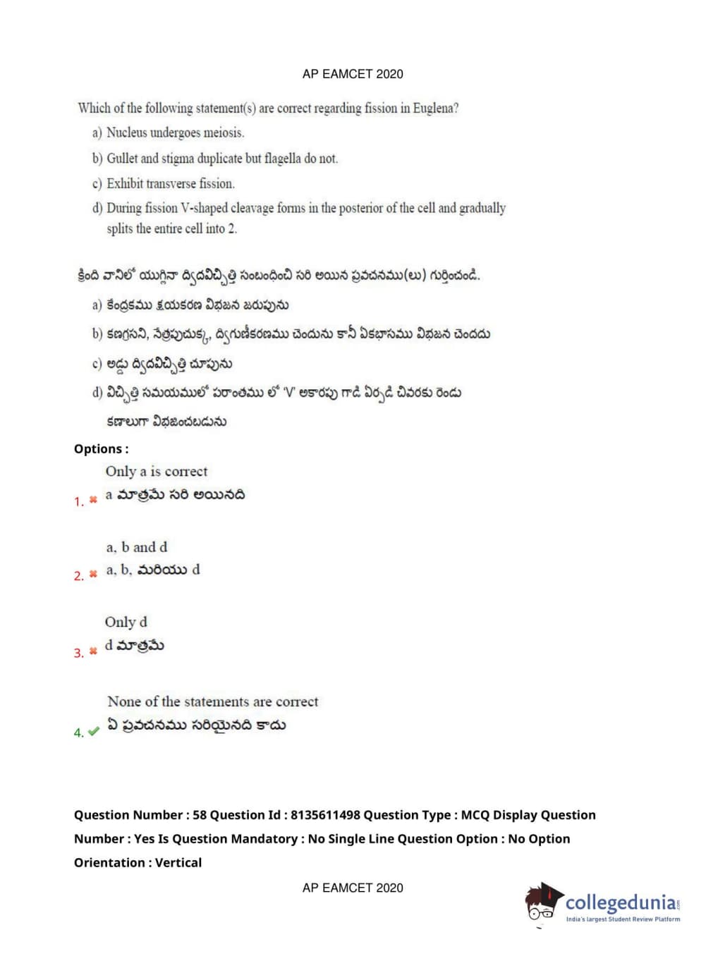 AP EAPCET 2020 Agriculture and Medical Question Paper with Answer Key PDFs Afternoon Session
