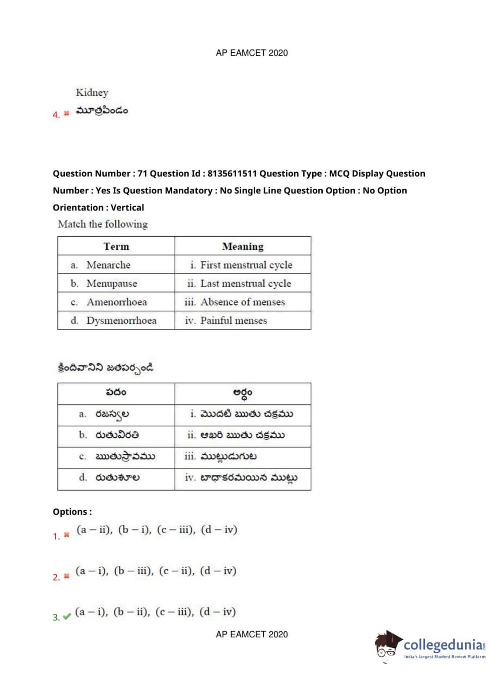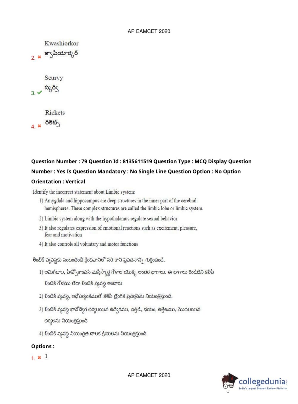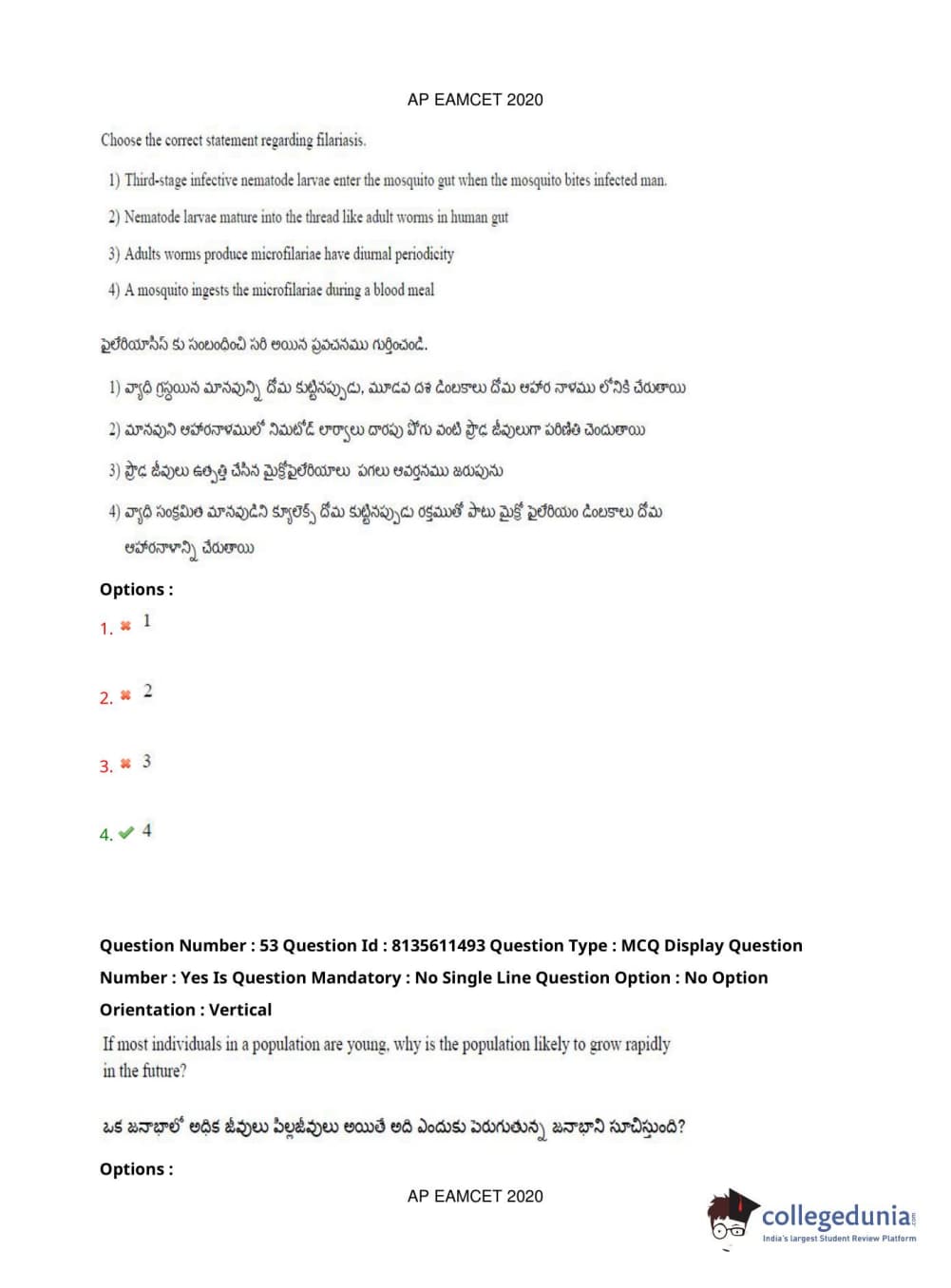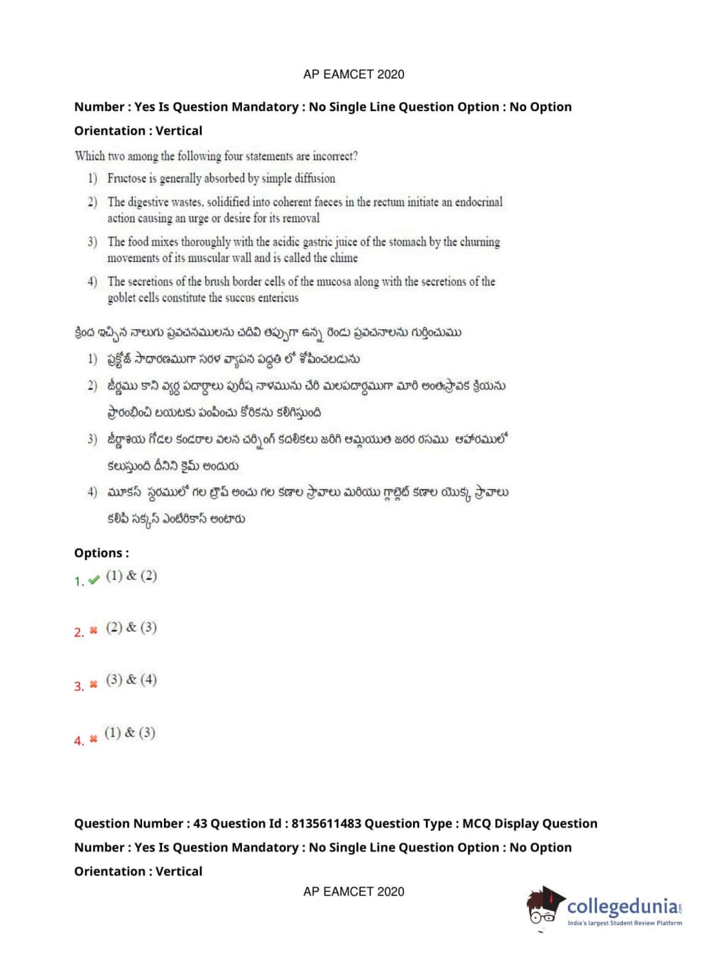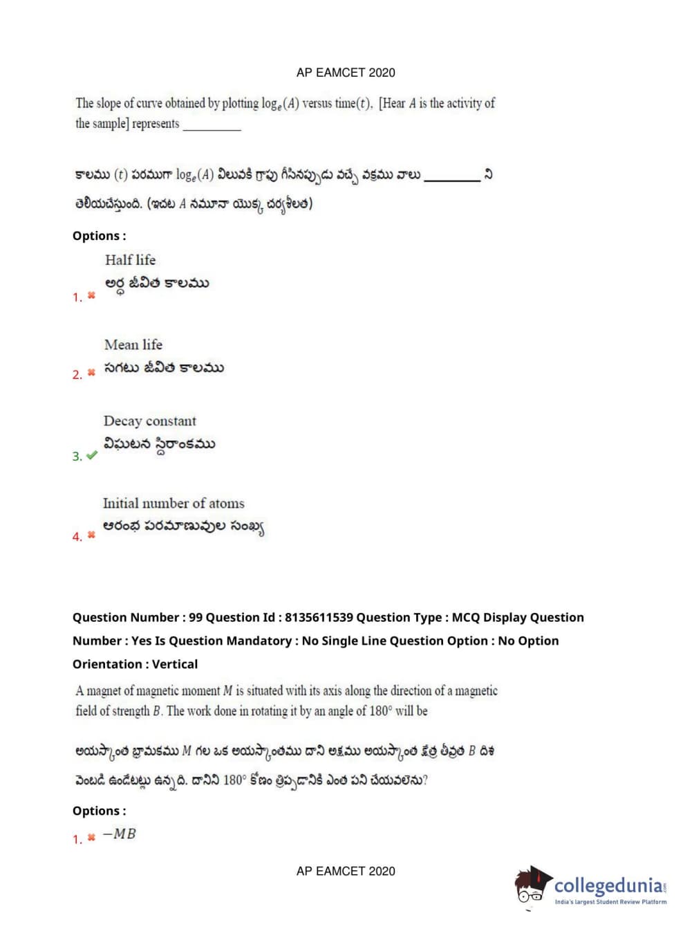 AP EAPCET 2020 Agriculture and Medical Question Paper with Answer Key PDFs Afternoon Session