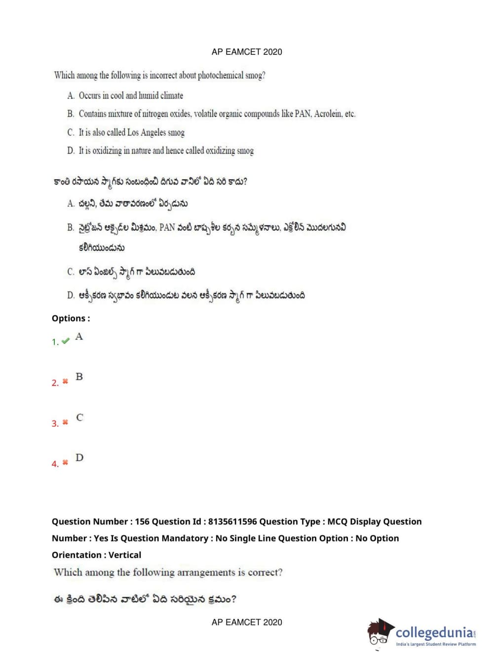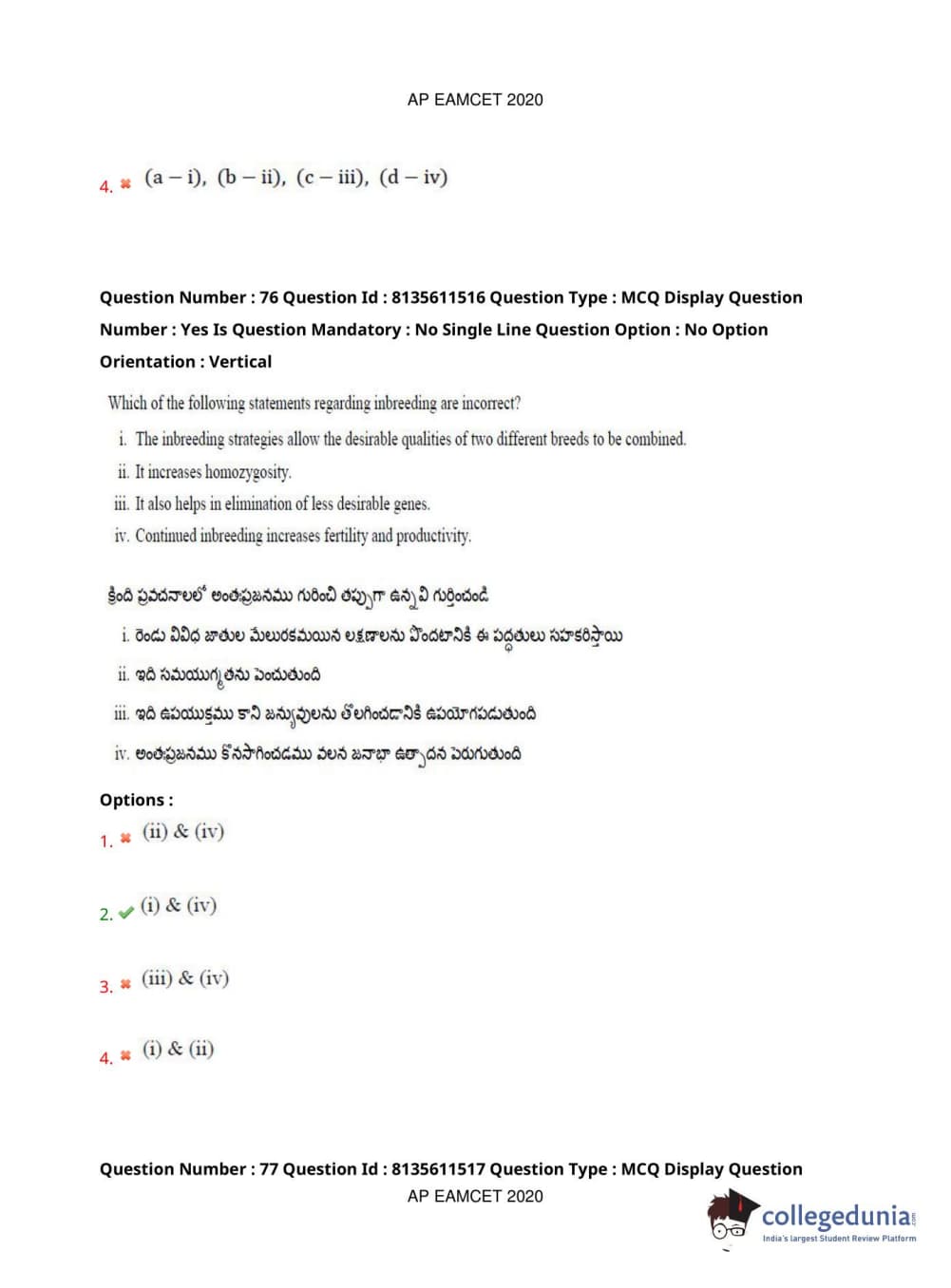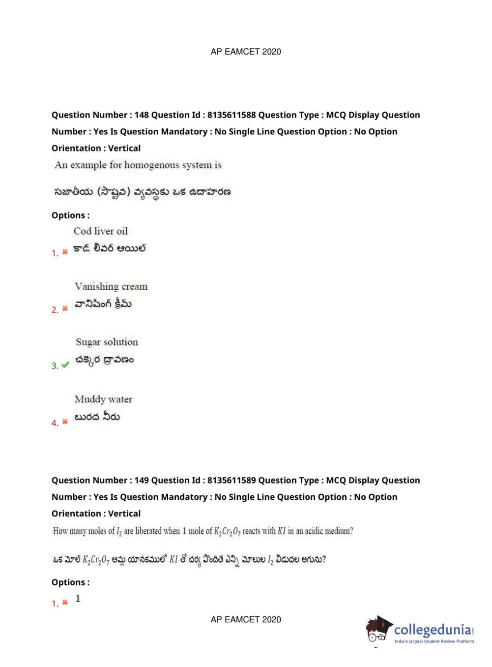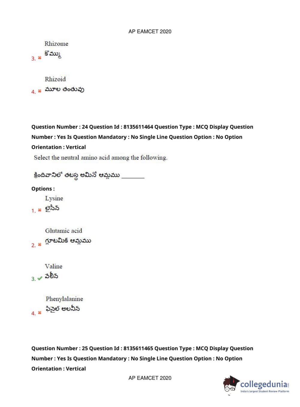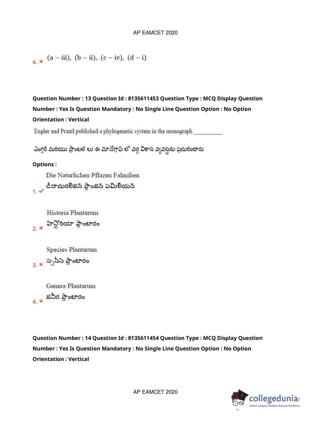 AP EAPCET 2020 Agriculture and Medical Question Paper with Answer Key PDFs Afternoon Session