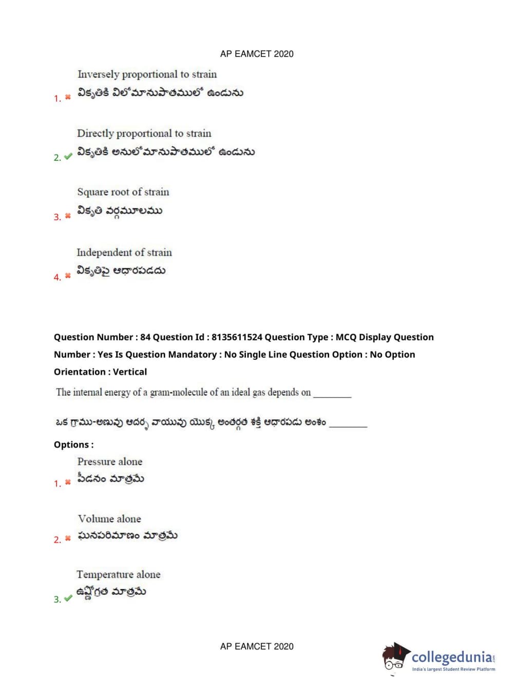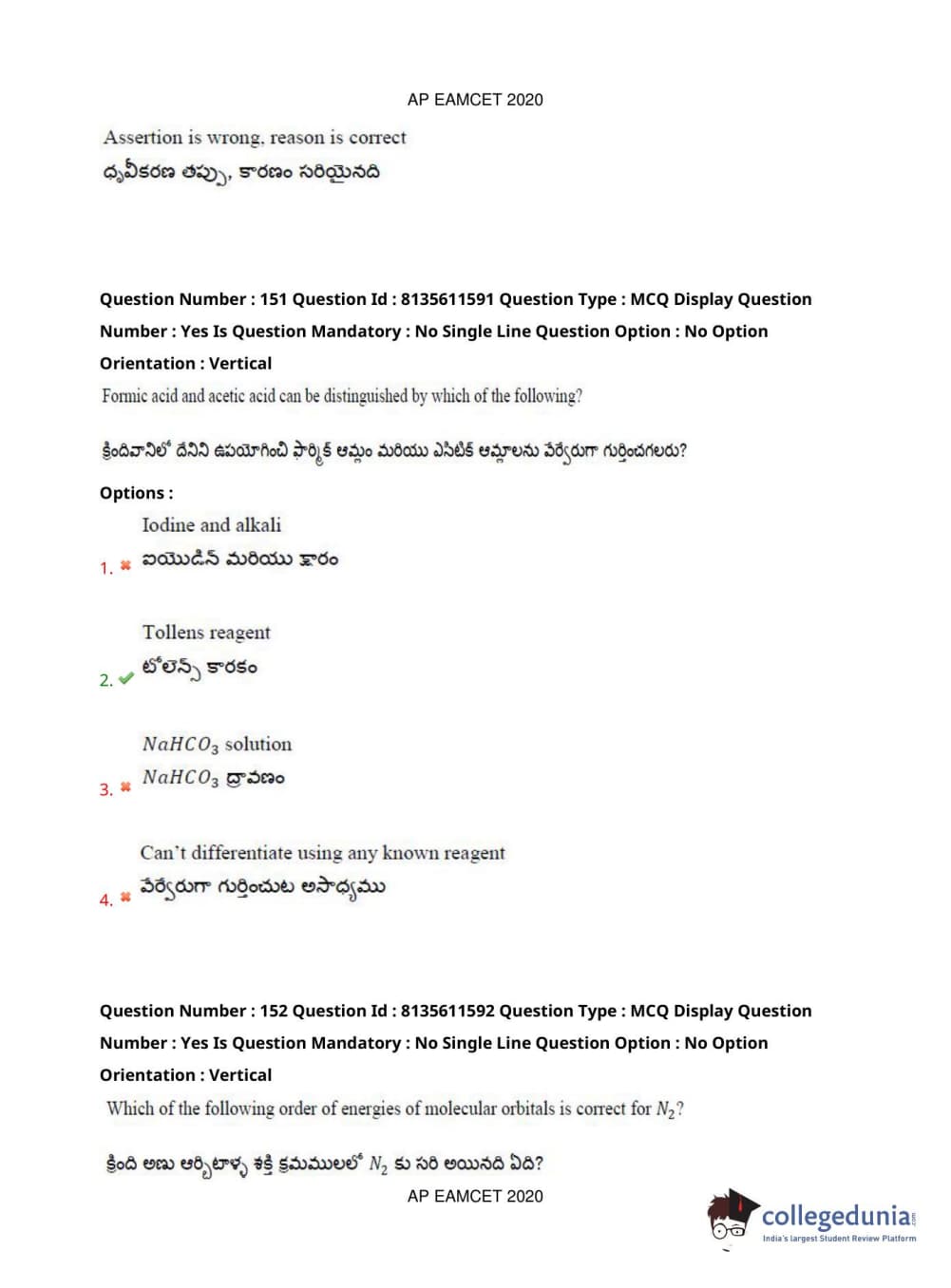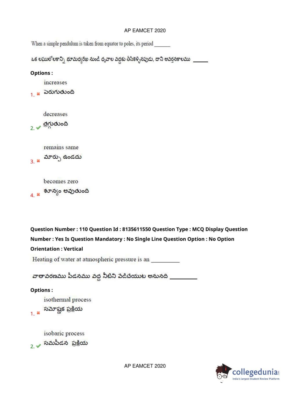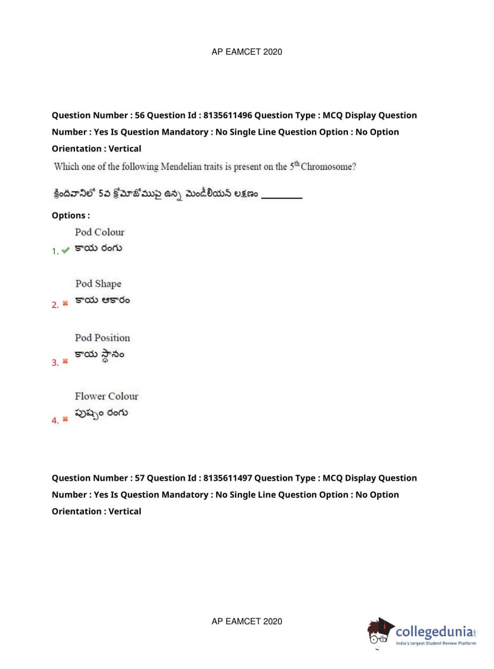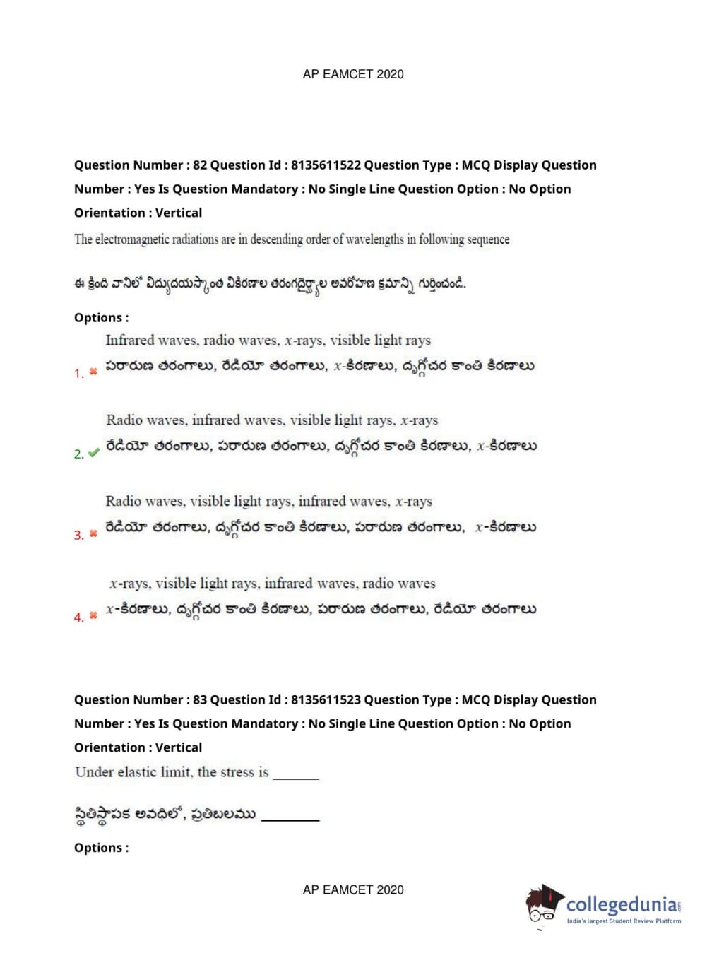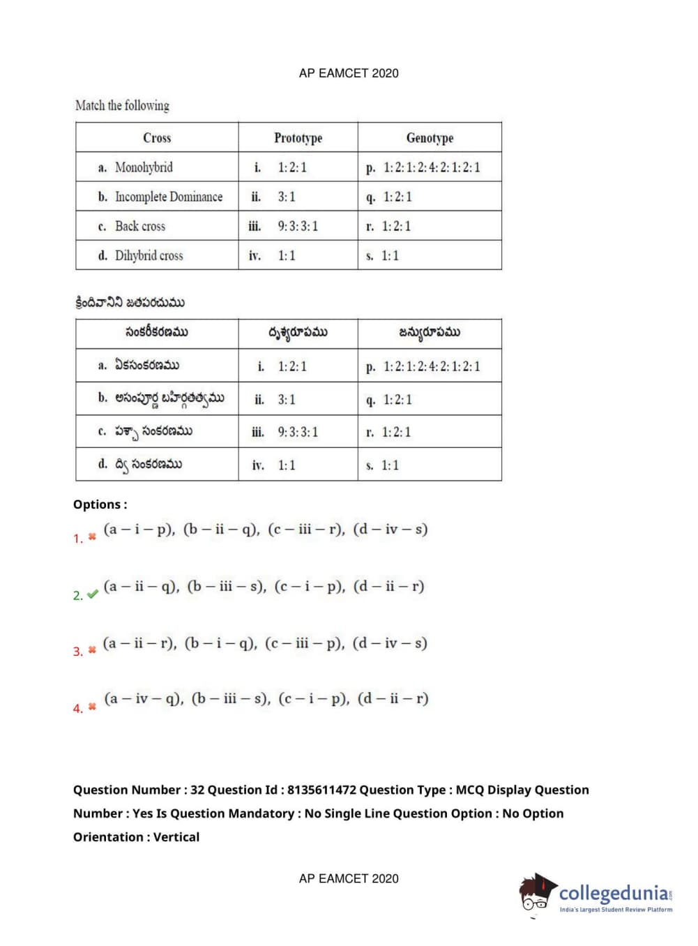 AP EAPCET 2020 Agriculture and Medical Question Paper with Answer Key PDFs Afternoon Session
