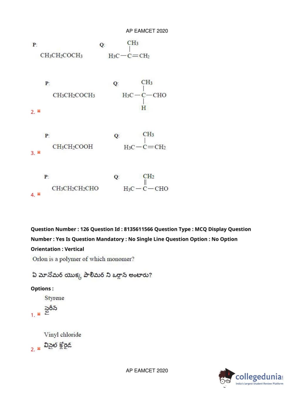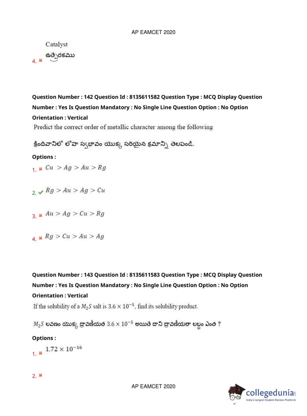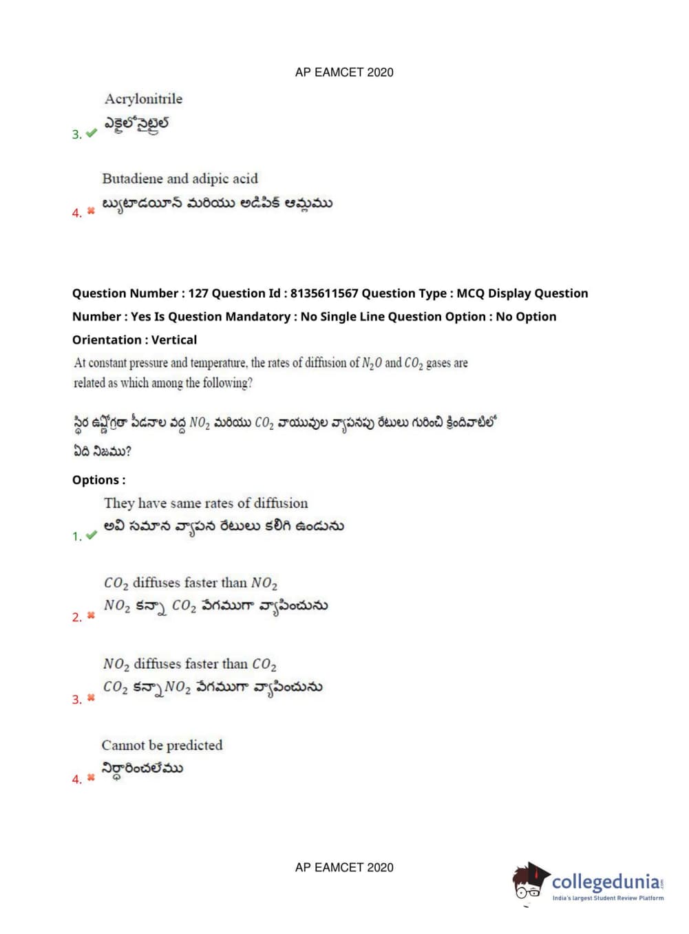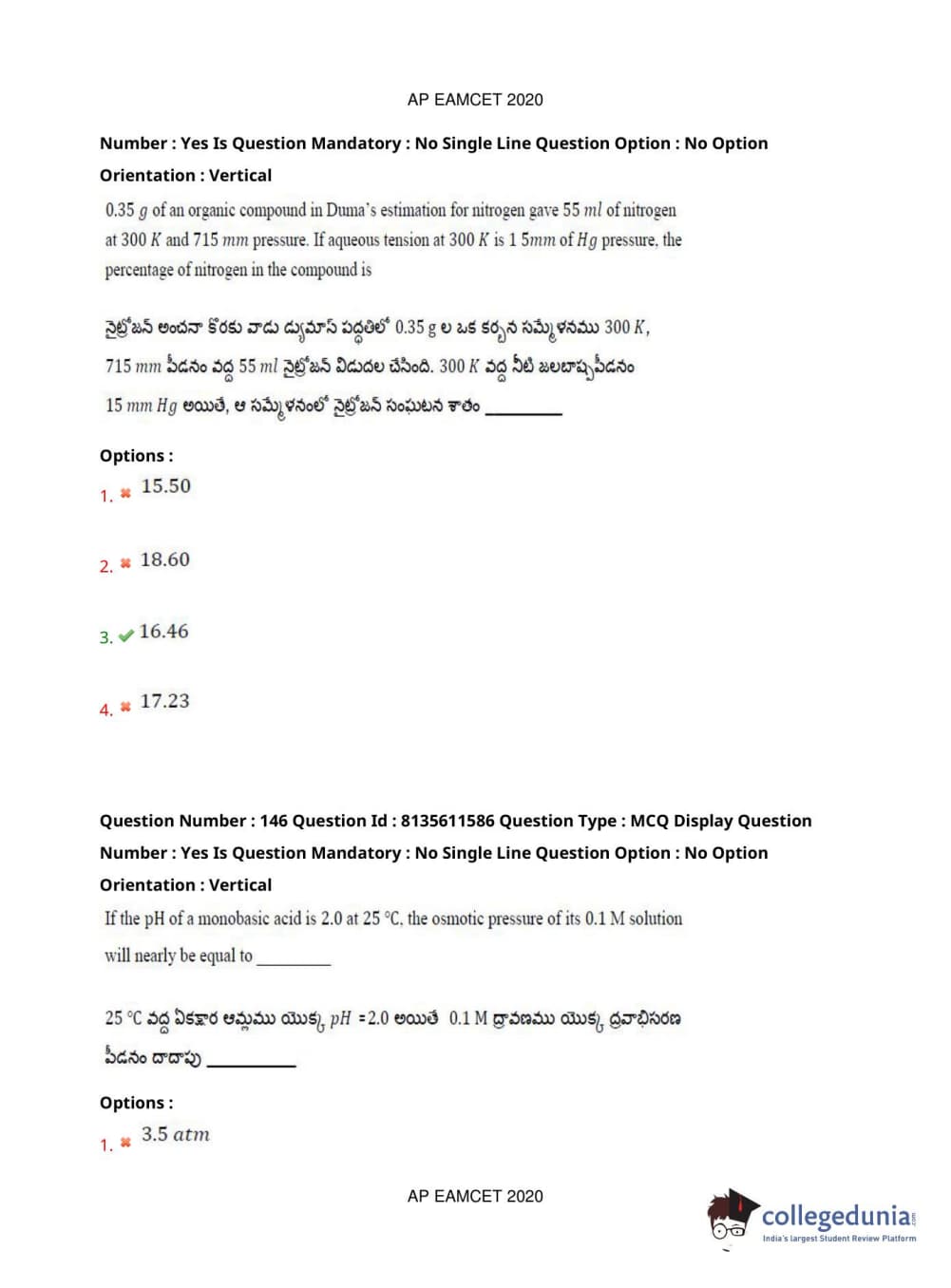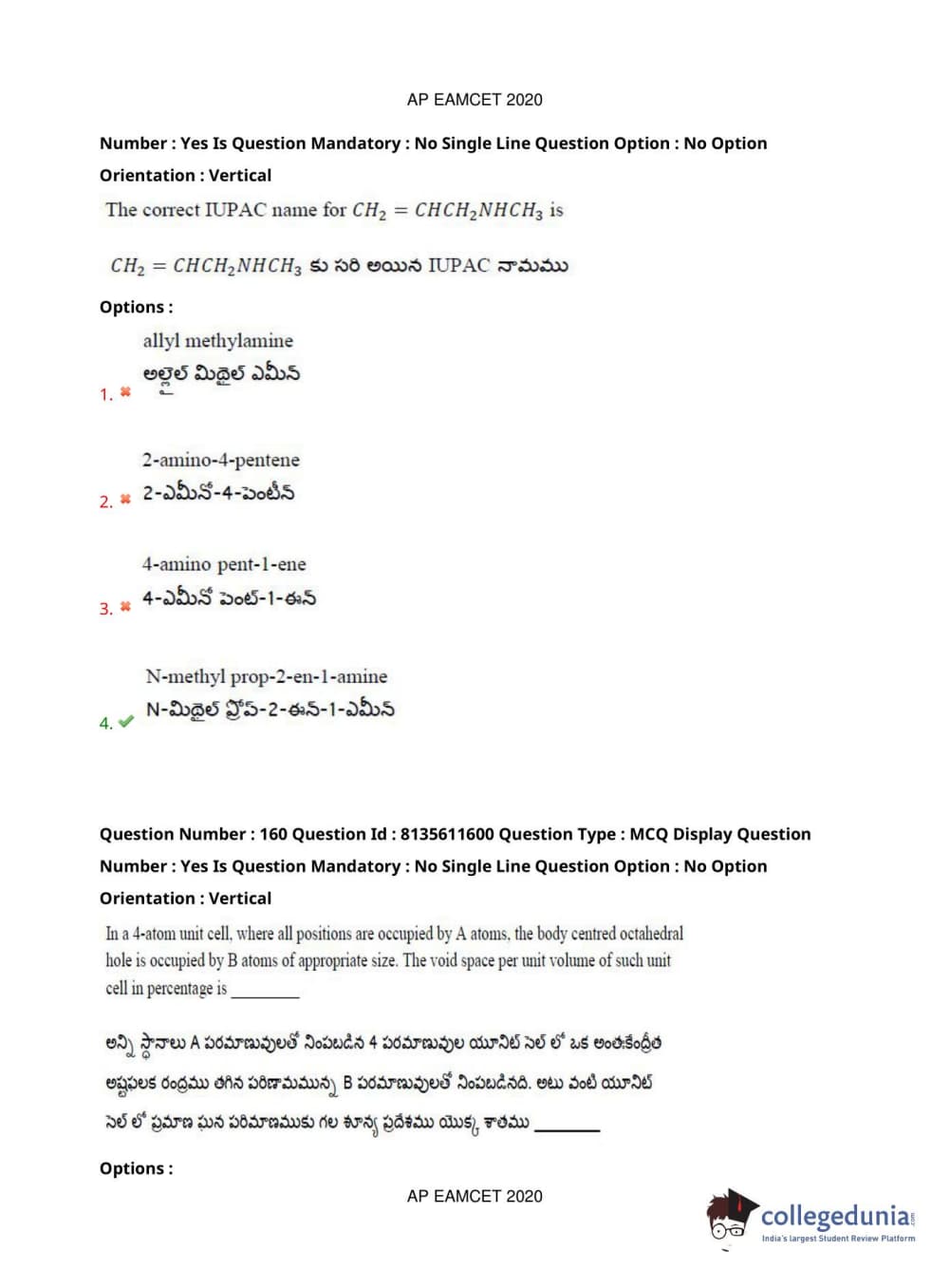 AP EAPCET 2020 Agriculture and Medical Question Paper with Answer Key PDFs Afternoon Session