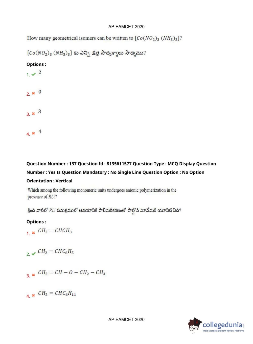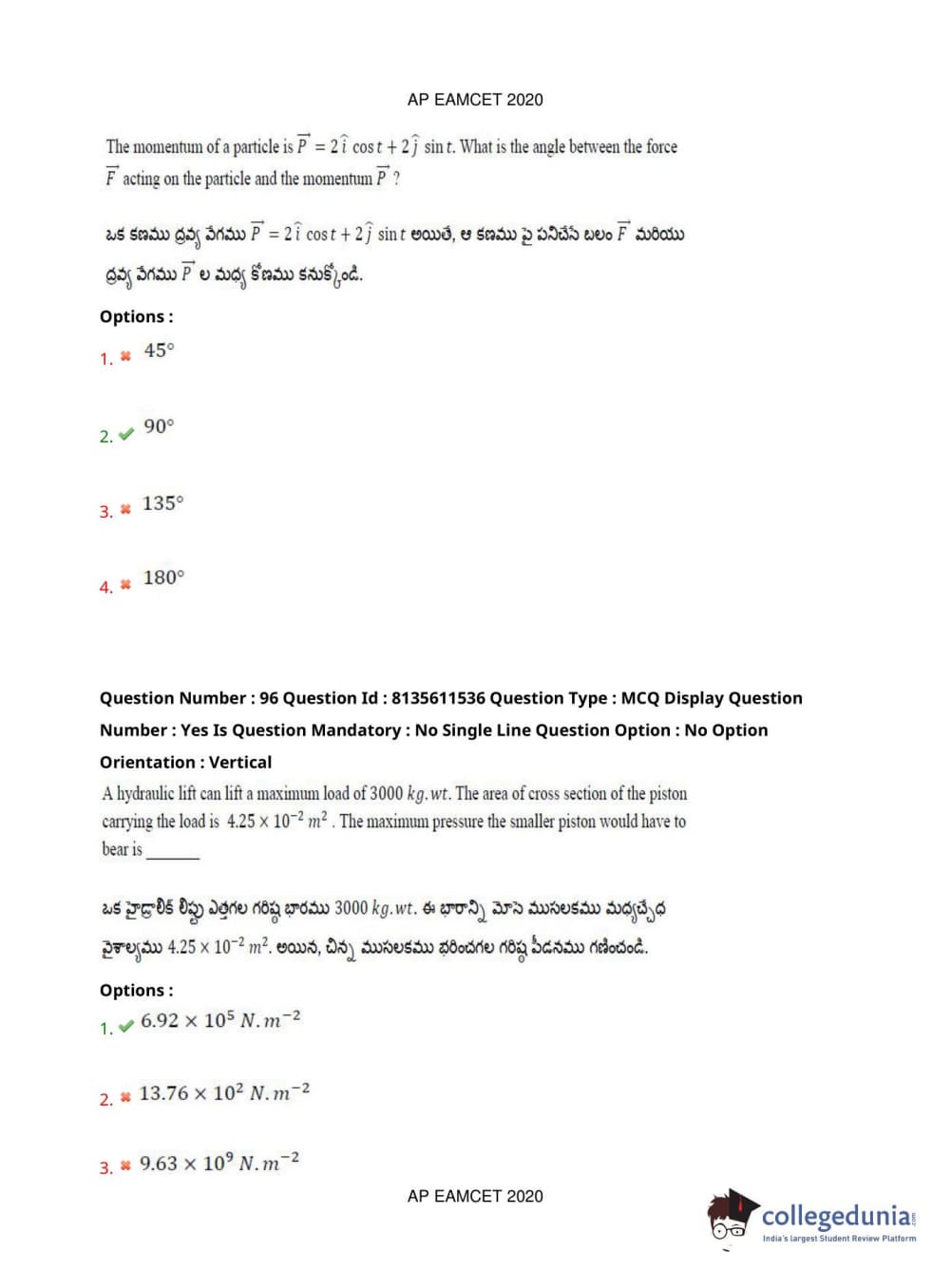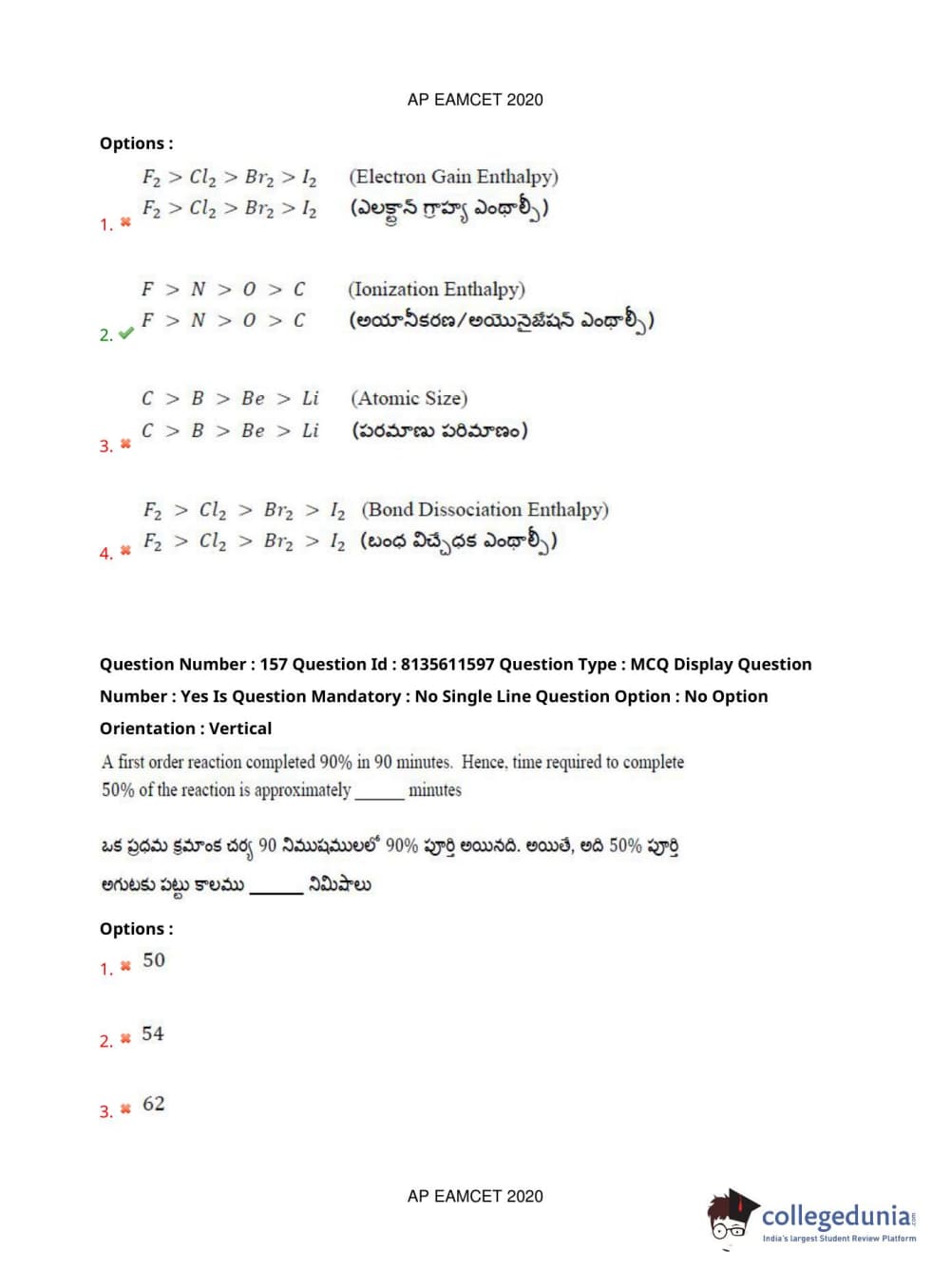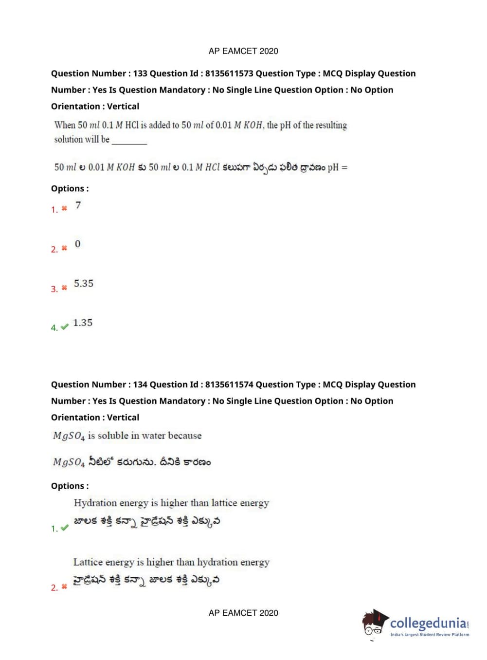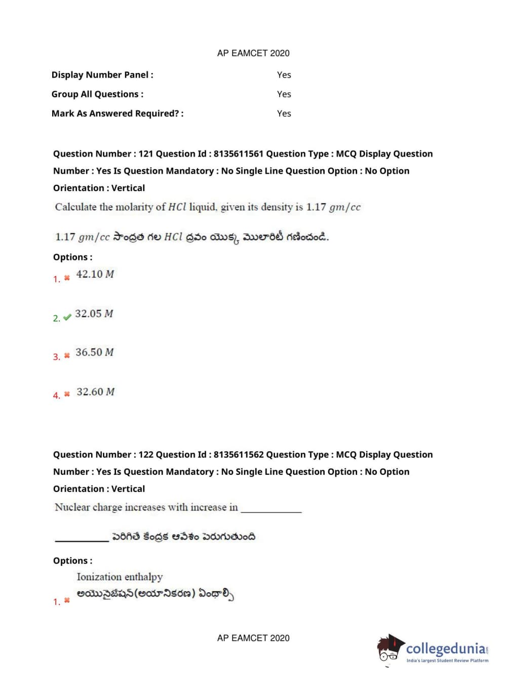 AP EAPCET 2020 Agriculture and Medical Question Paper with Answer Key PDFs Afternoon Session