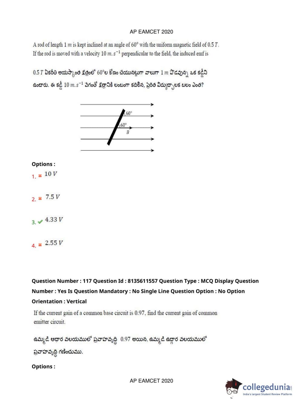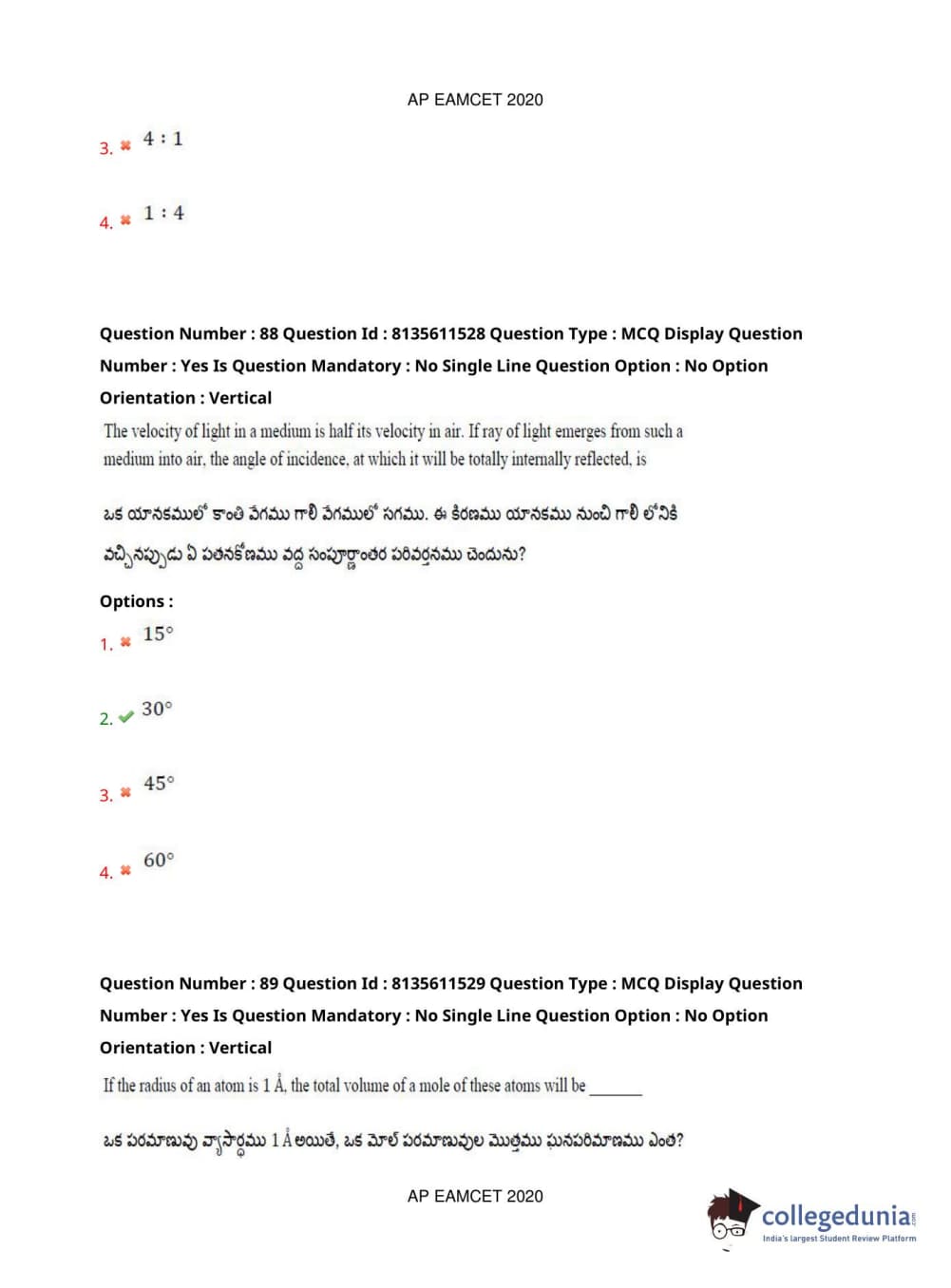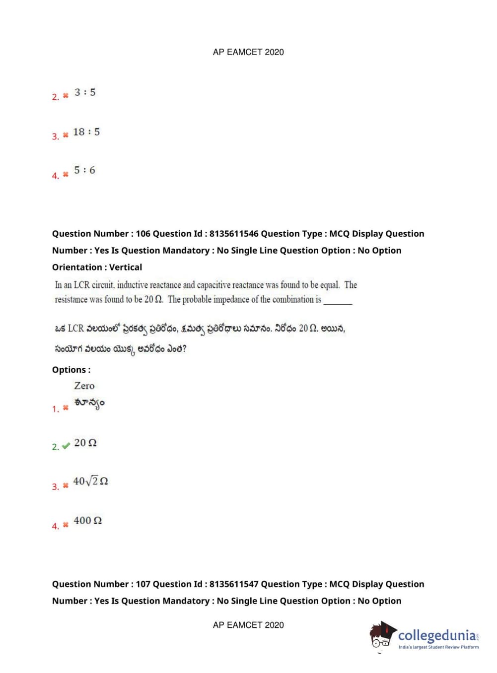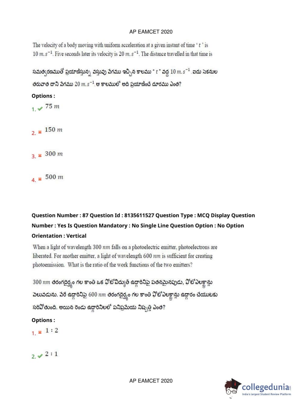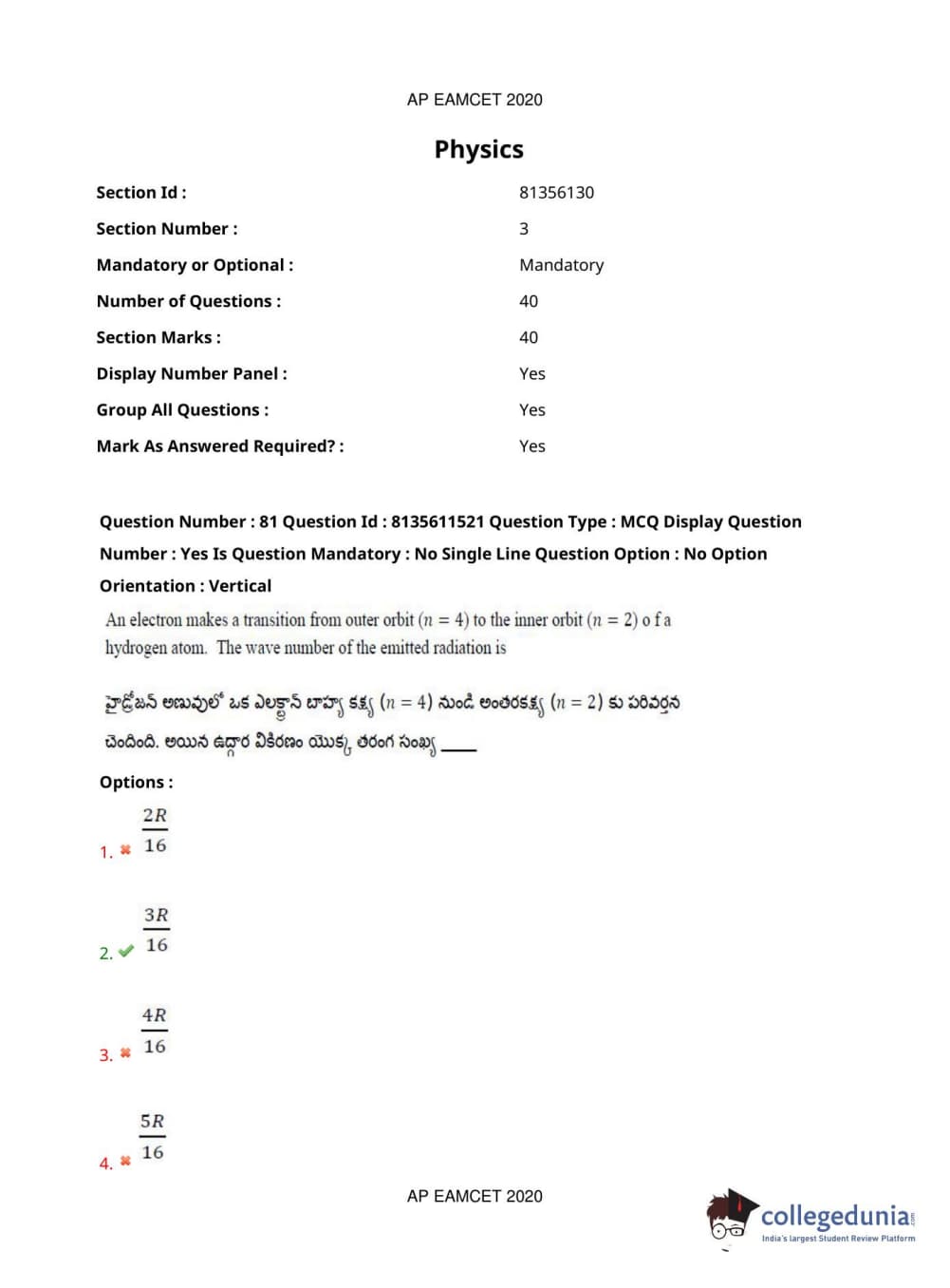 AP EAPCET 2020 Agriculture and Medical Question Paper with Answer Key PDFs Afternoon Session