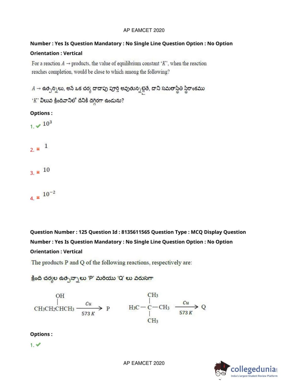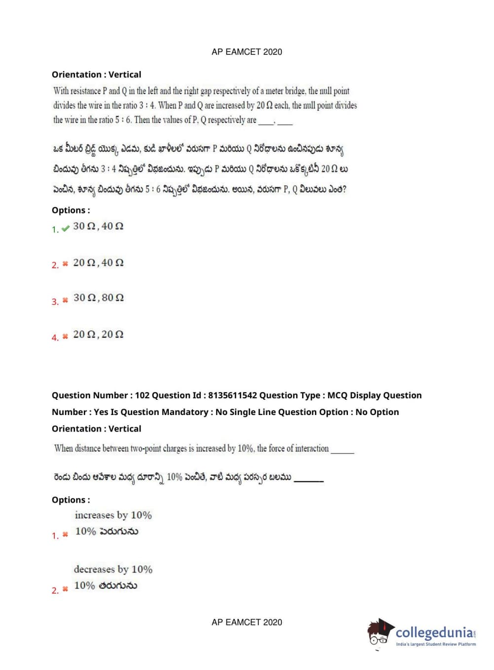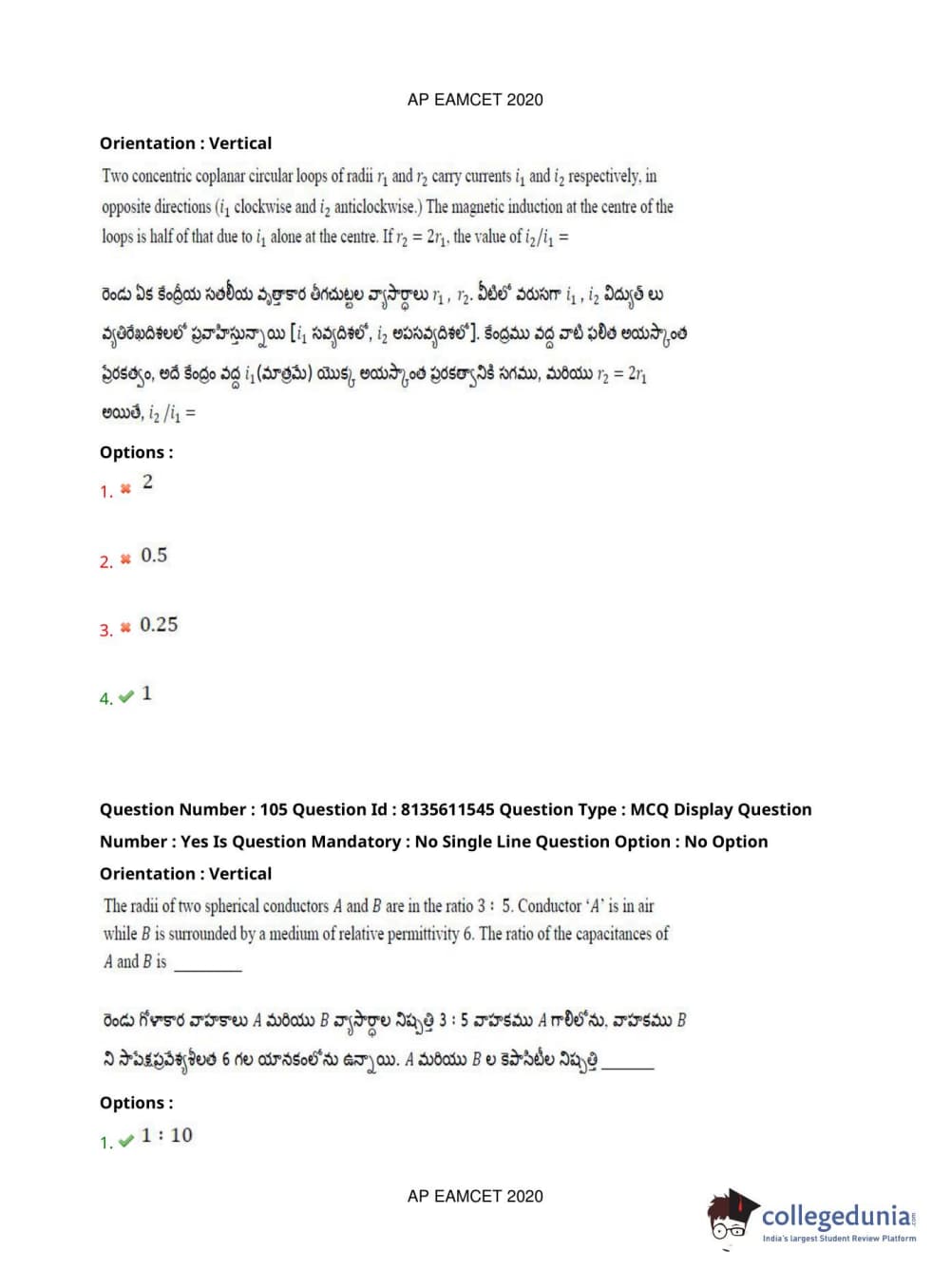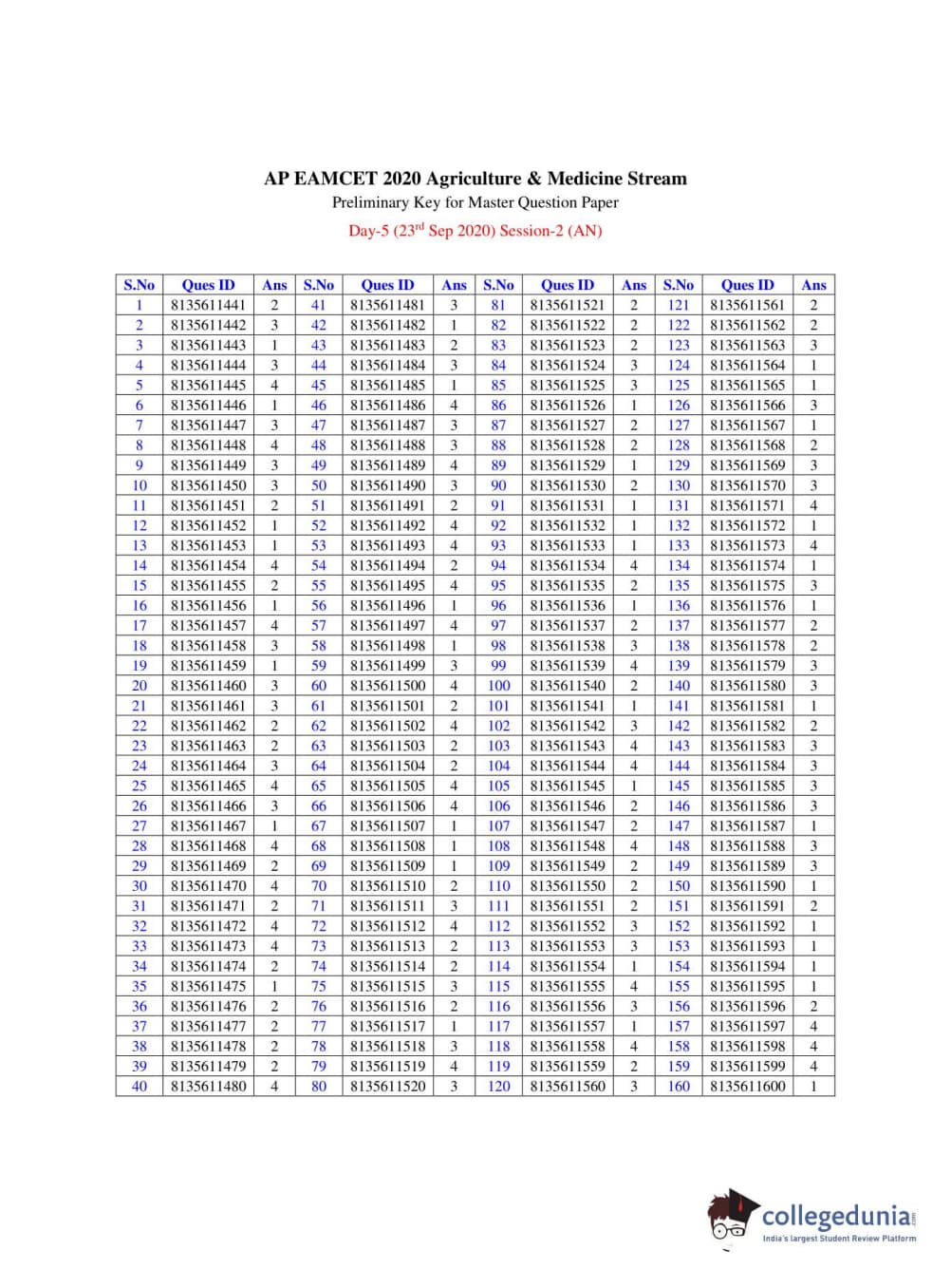| AP EAPCET 2020 Agriculture and Medical Question Paper PDF | AP EAPCET 2020 Agriculture and Medical Answer Key PDF |