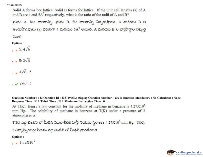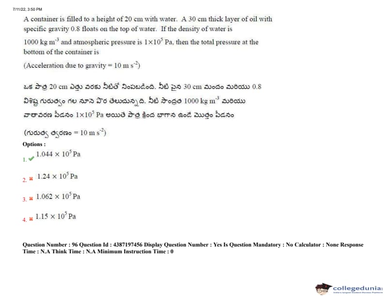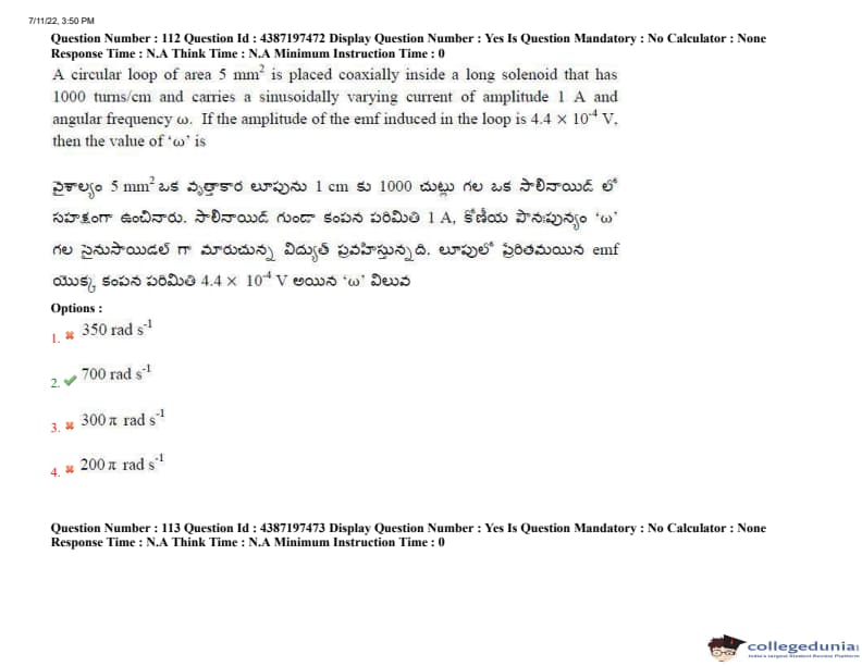 AP EAPCET 2022 July 11 Shift-1 Question Paper