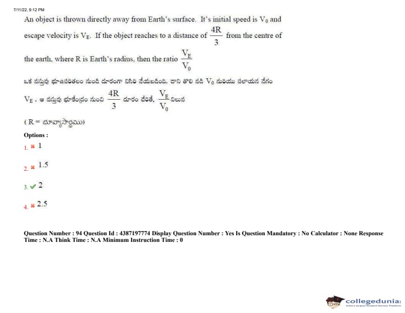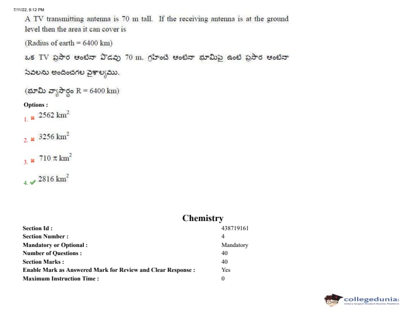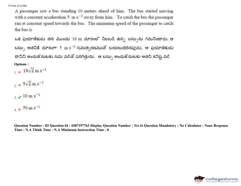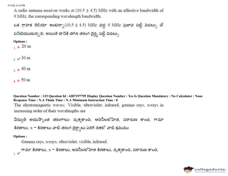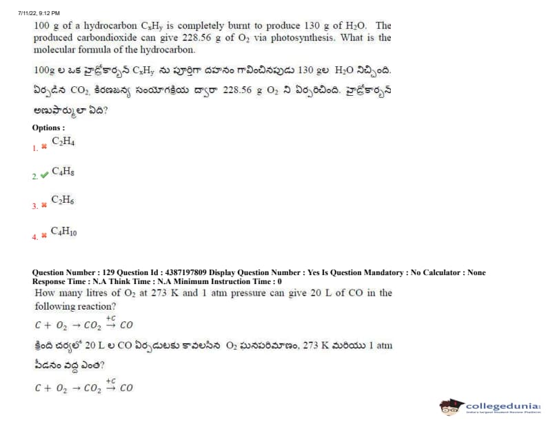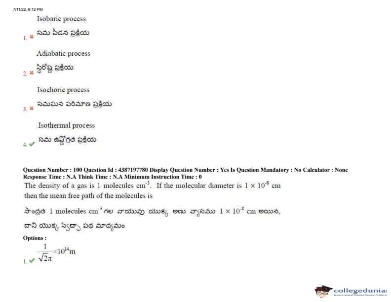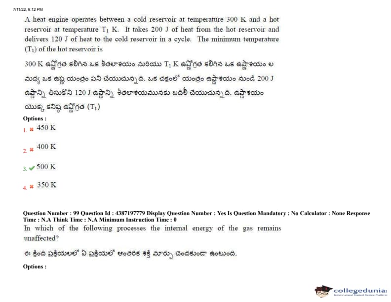 AP EAPCET 2022 July 11 Shift-2 Question Paper