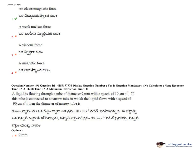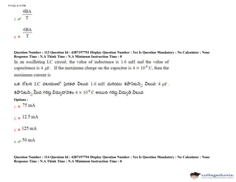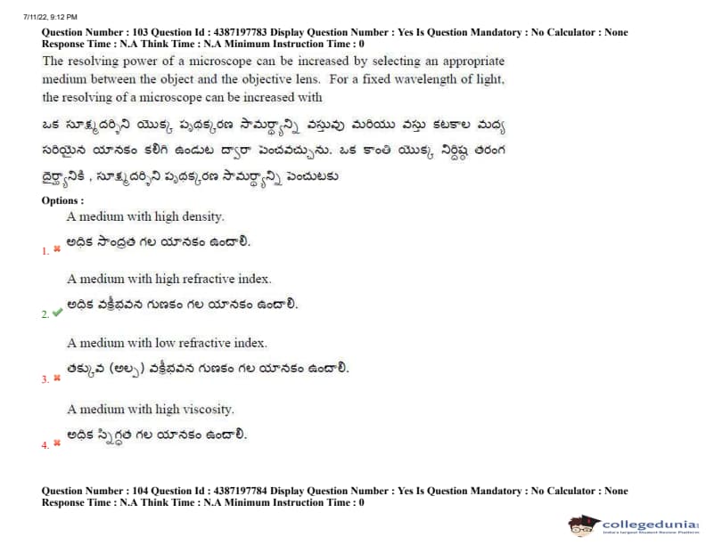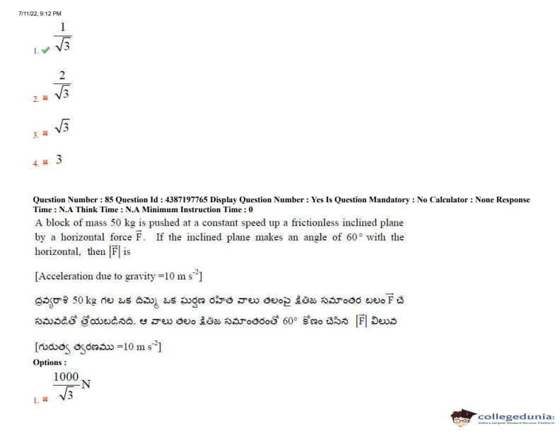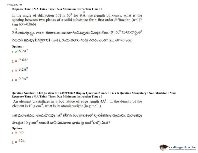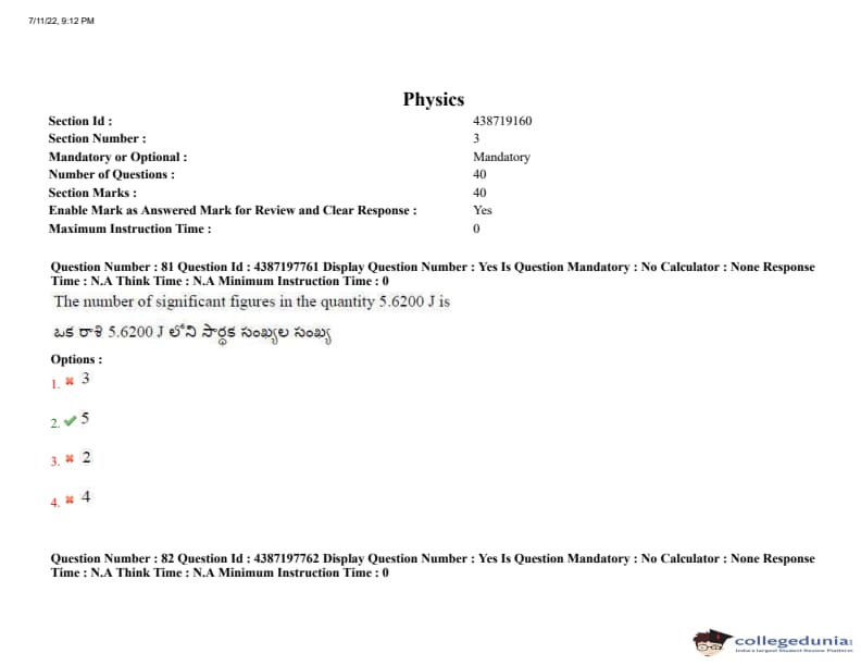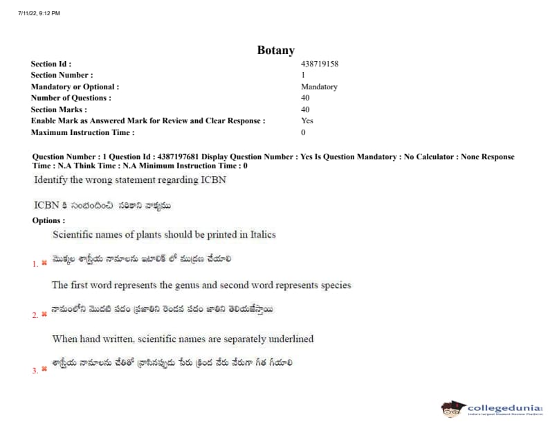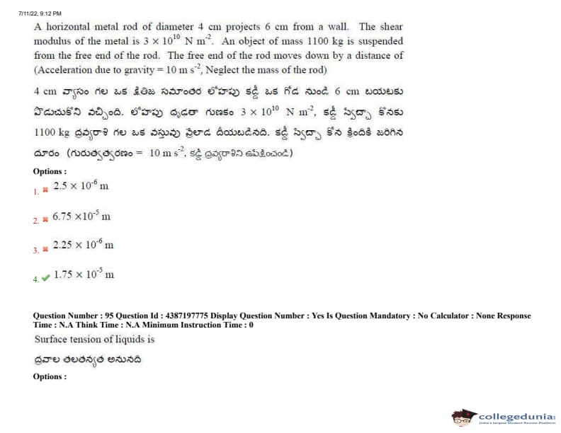 AP EAPCET 2022 July 11 Shift-2 Question Paper