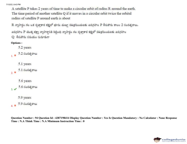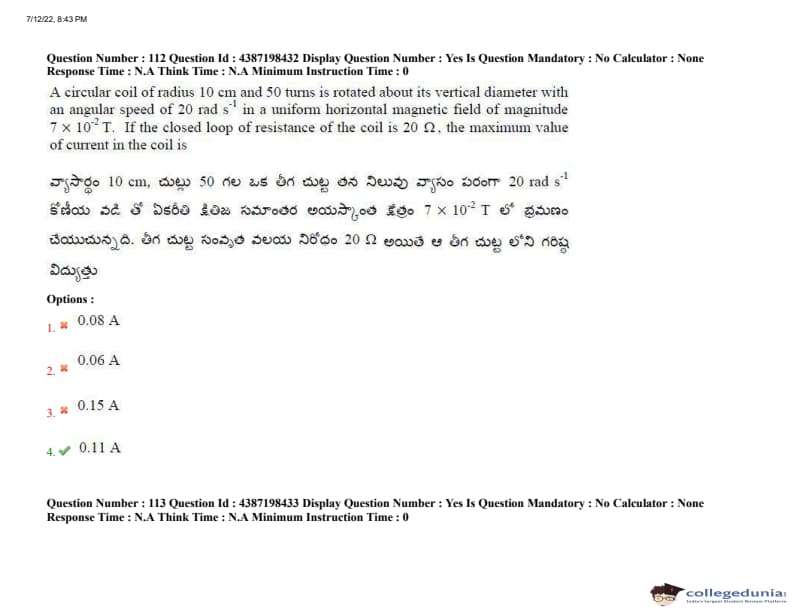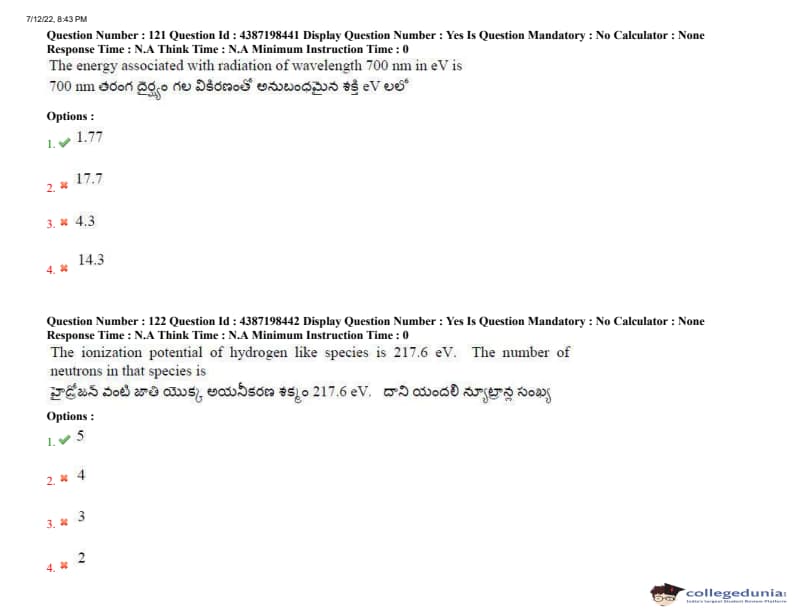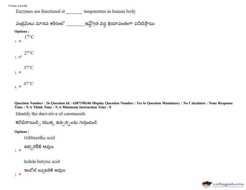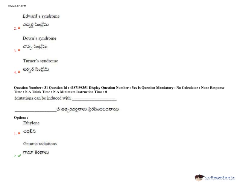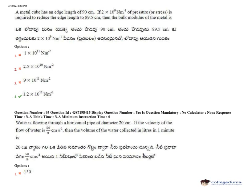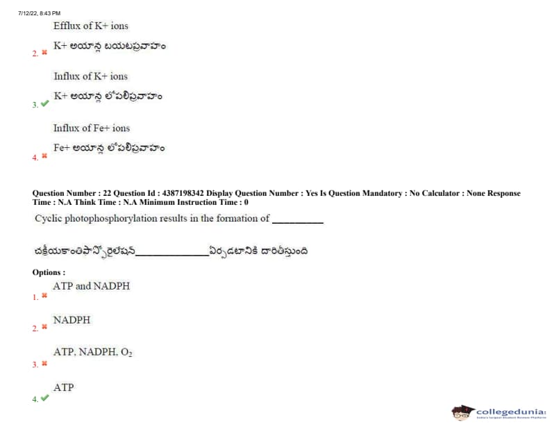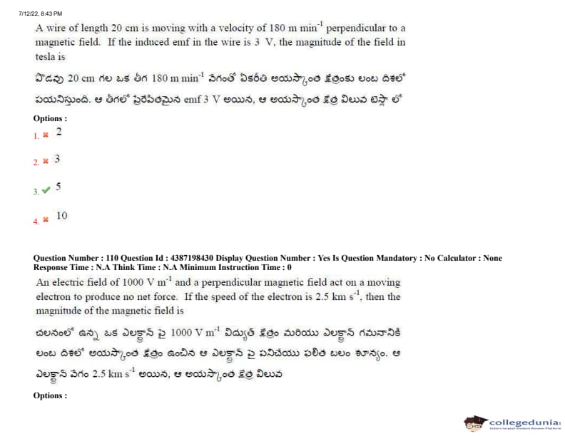 AP EAPCET 2022 July 12 Shift-2 Question Paper