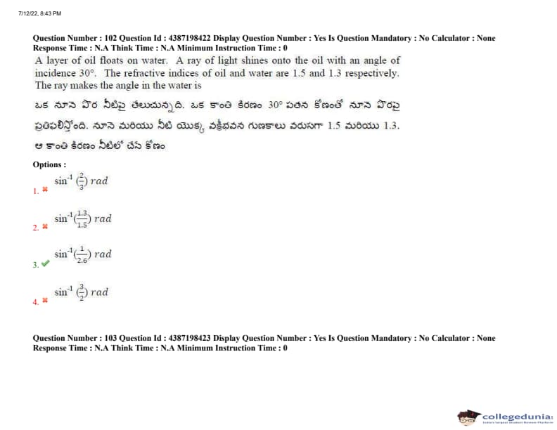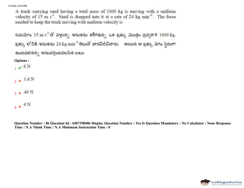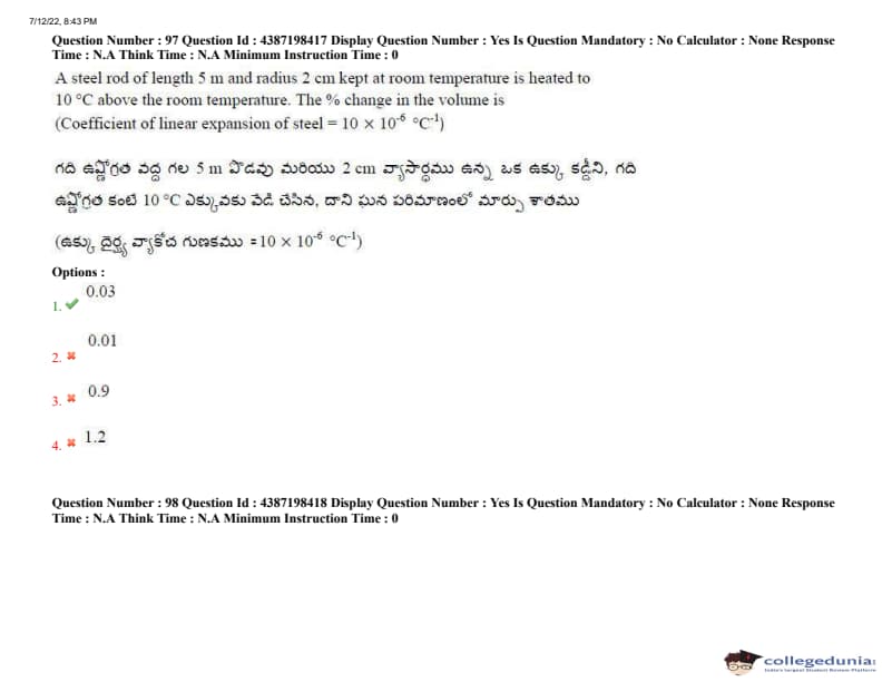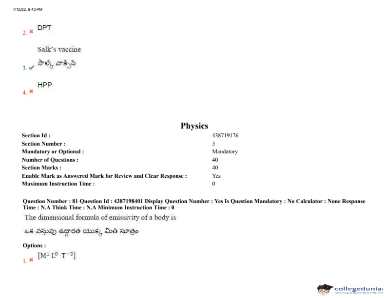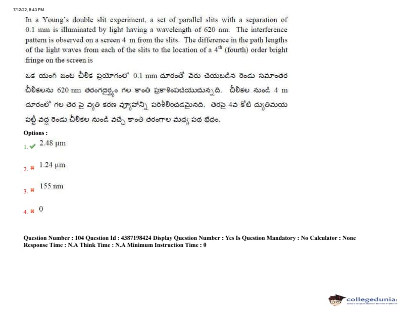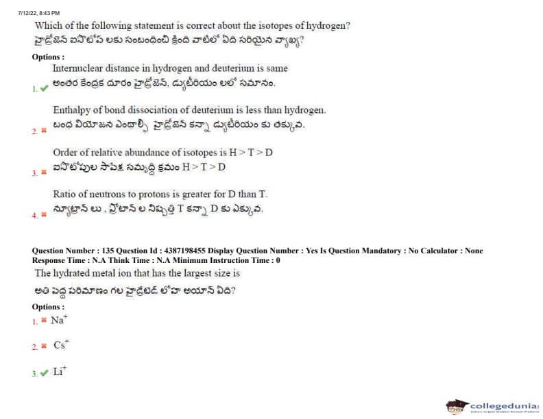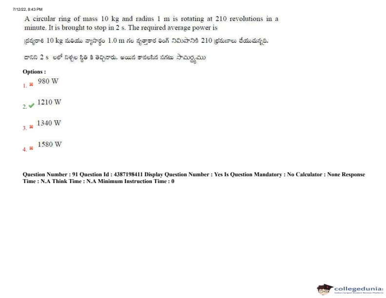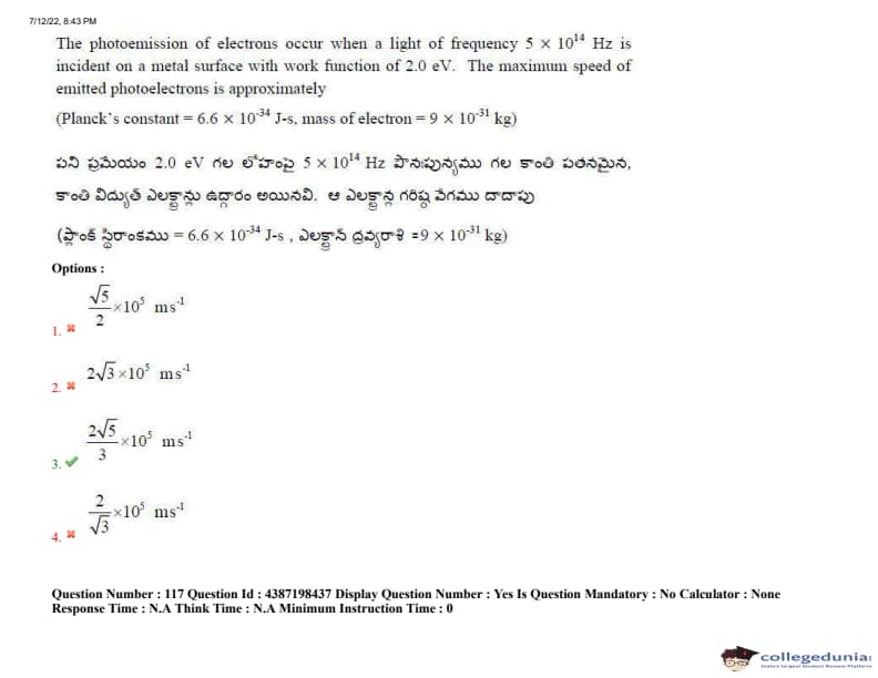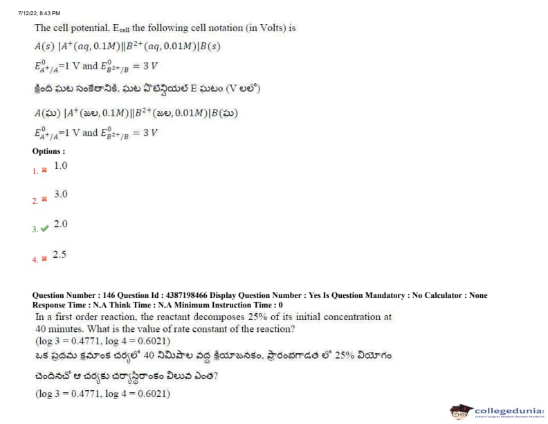AP EAPCET 2022 July 12 Shift-2 Question Paper