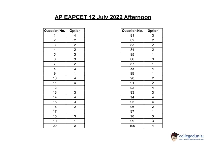 | AP EAPCET 2022 Question Paper PDF | AP EAPCET 2022 Answer Key PDF |