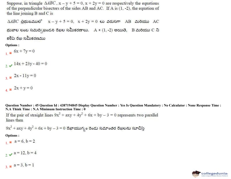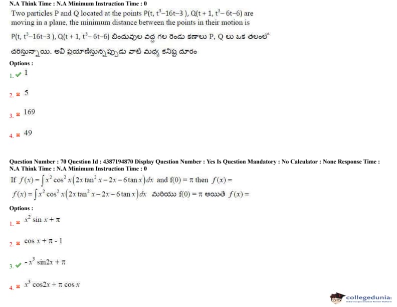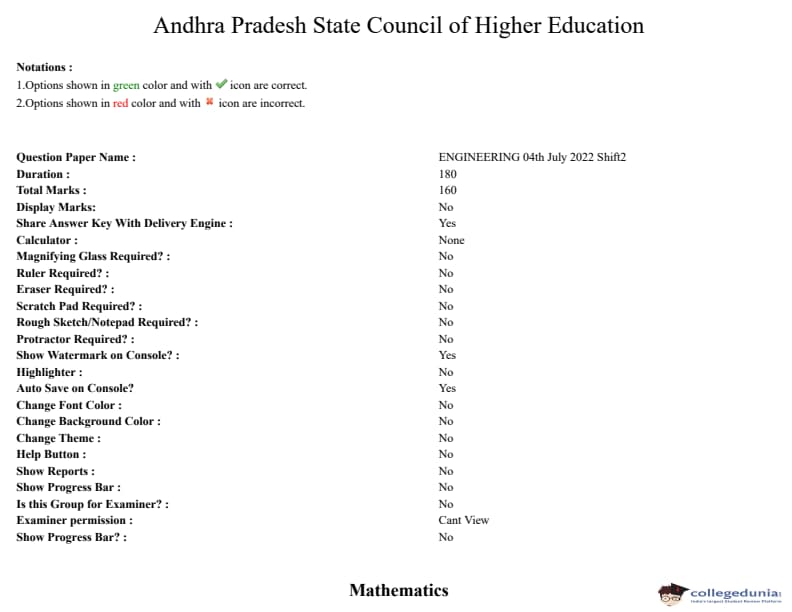 AP EAPCET 2022 July 4 Shift-2 Question Paper is available for download. The exam was conducted from 03:00 PM to 06:00 PM. The question paper had a total of 160 questions. Mathematics had 80 questions, Physics and Chemistry had 40 questions each in AP EAPCET 2022 July 4 (Shift-2) question Paper. The question paper was rated moderate in terms of difficulty level. Check AP EAPCET July 4 Shift 2 Paper Analysis