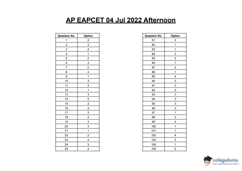 | AP EAPCET 2022 Question Paper PDF | AP EAPCET 2022 Answer Key PDF |