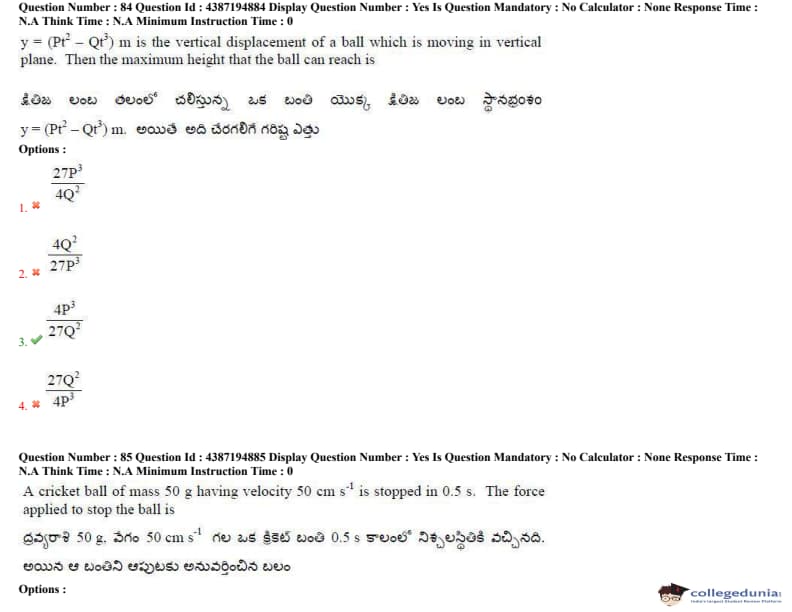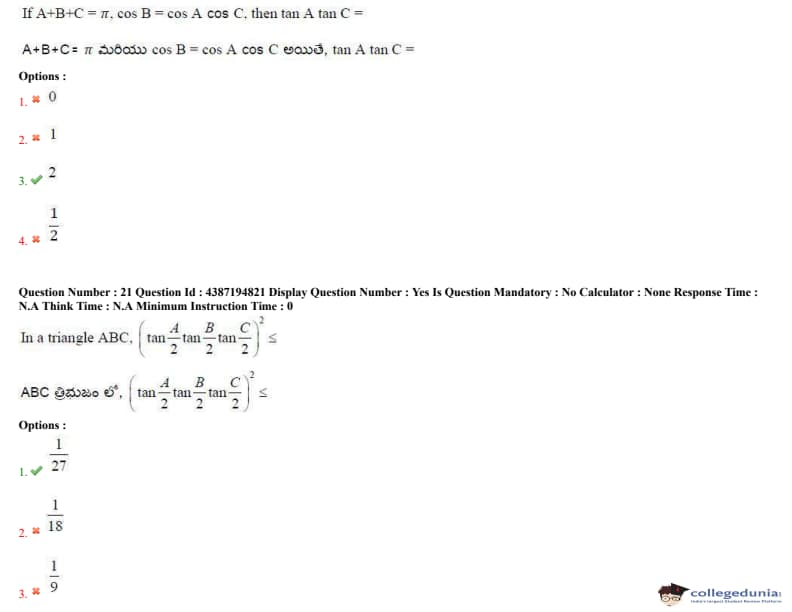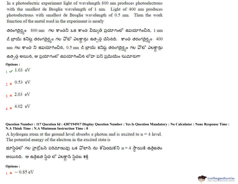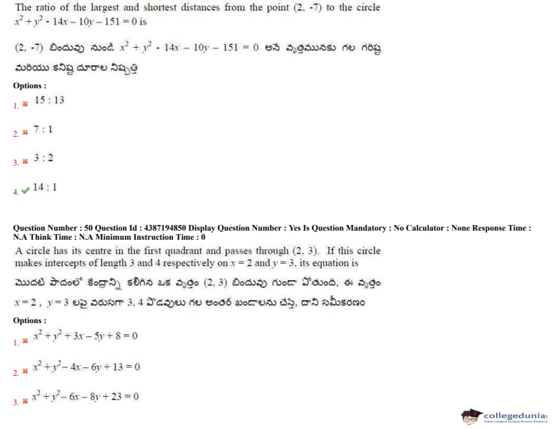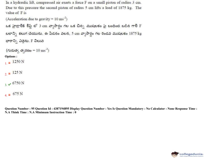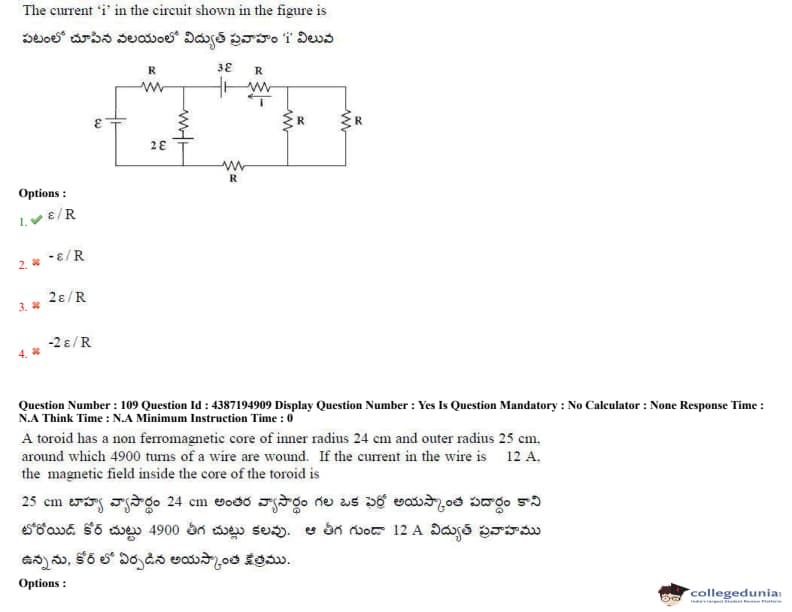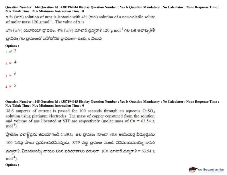 AP EAPCET 2022 Day-1 (July 4, 2022) Shift-2 Question Paper