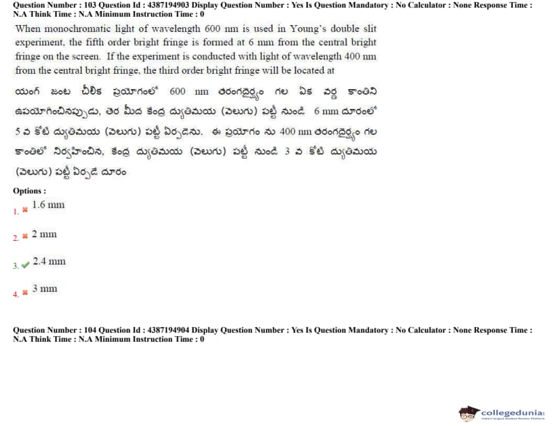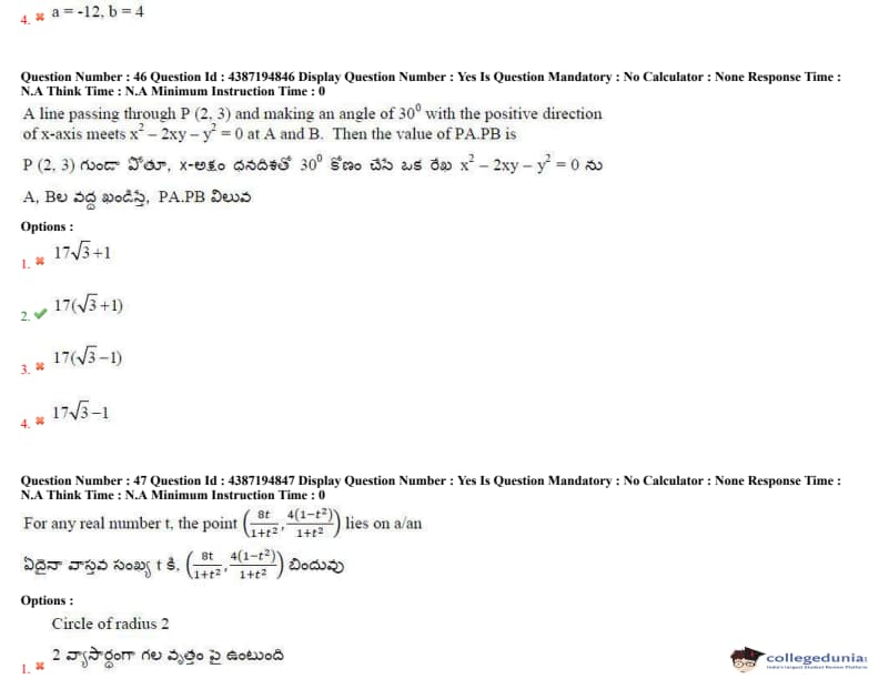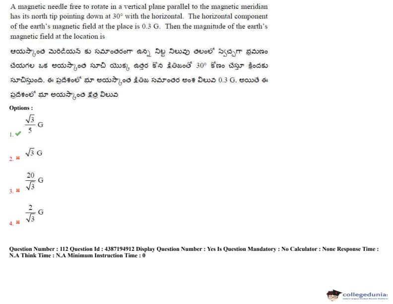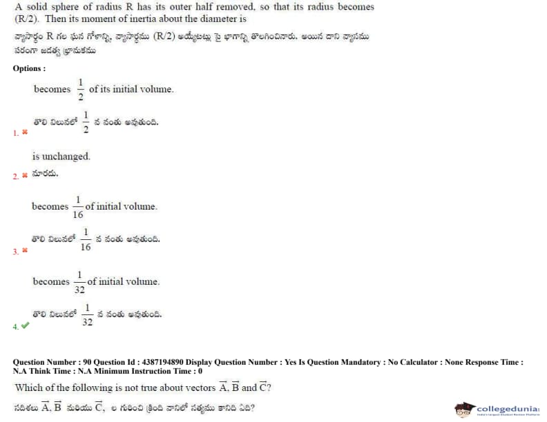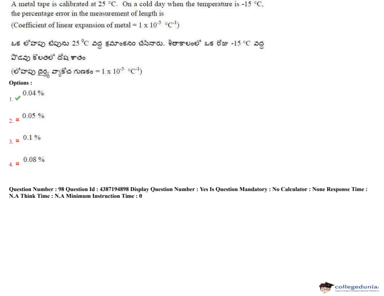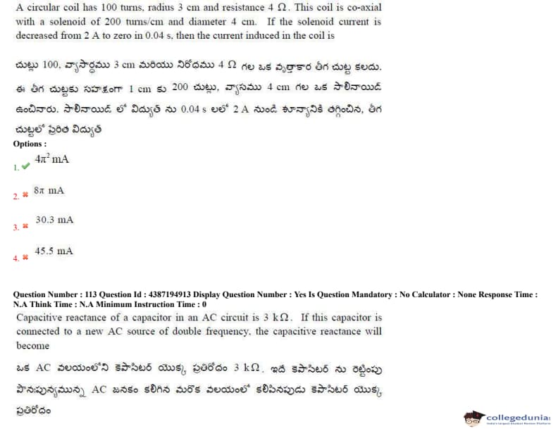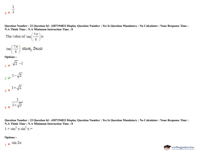 AP EAPCET 2022 Day-1 (July 4, 2022) Shift-2 Question Paper