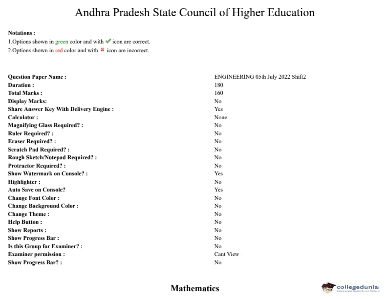 AP EAPCET 2022 July 5 Shift 2 Question Paper is available for download. The exam was conducted from 03:00 PM to 06:00 PM. The question paper had a total of 160 questions. Mathematics had 80 questions, Physics and Chemistry had 40 questions each in AP EAPCET 2022 July 5 Shift 2 Question Paper. The question paper was rated difficult in terms of difficulty level. Check AP EAPCET 2022 July 5 Shift 2 Paper Analysis