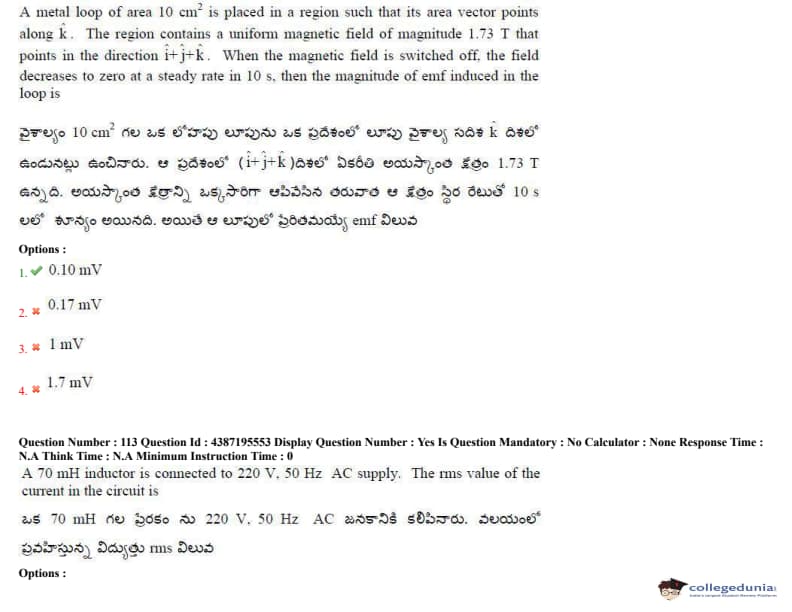 AP EAPCET 2022 July 5 Shift-2 Question Paper