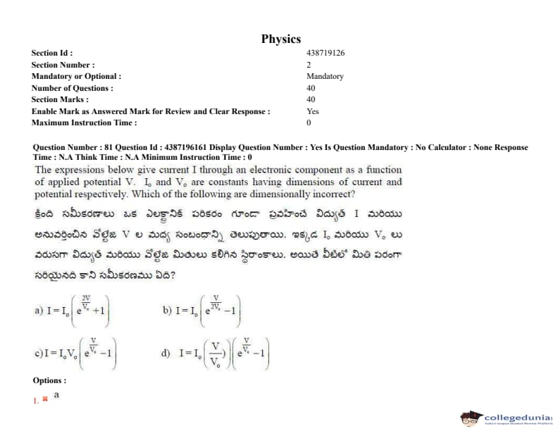 AP EAPCET 2022 July 6 Shift-2 Question Paper