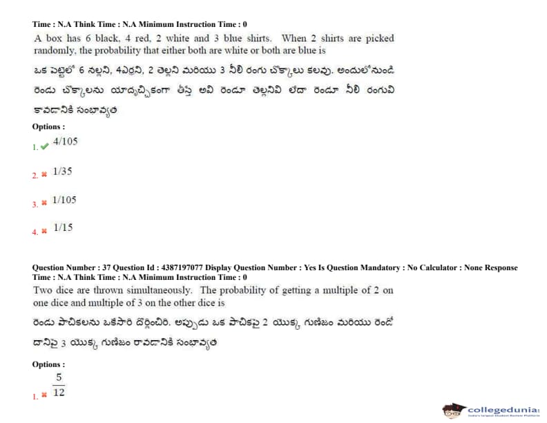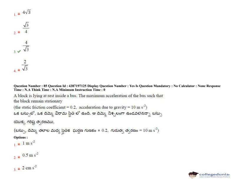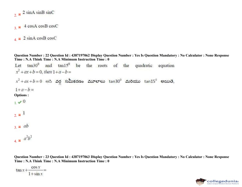 Download AP EAPCET Day 5- Shift 2 Question Paper from the below table