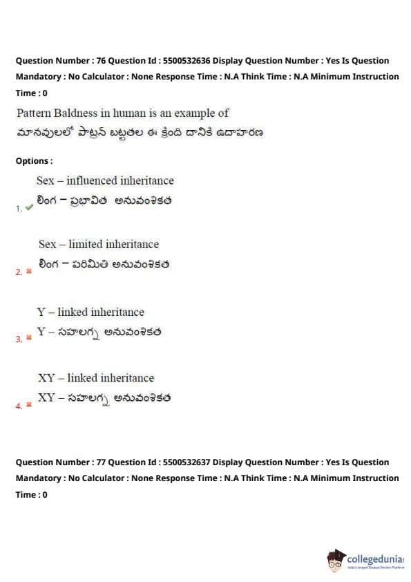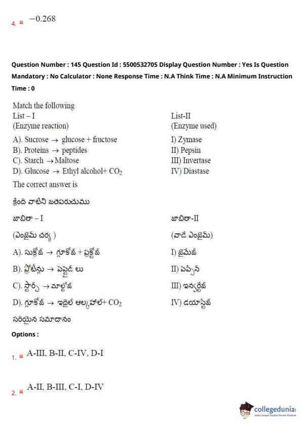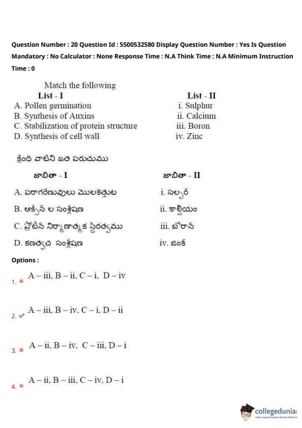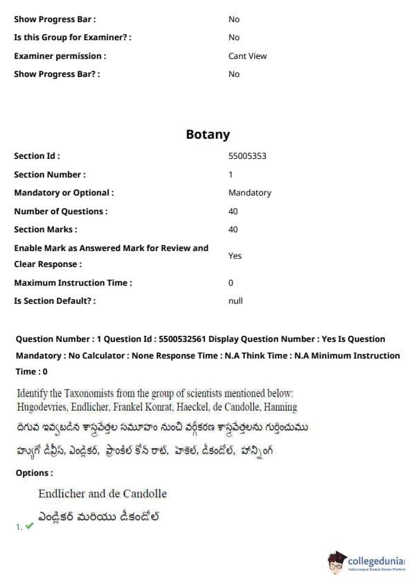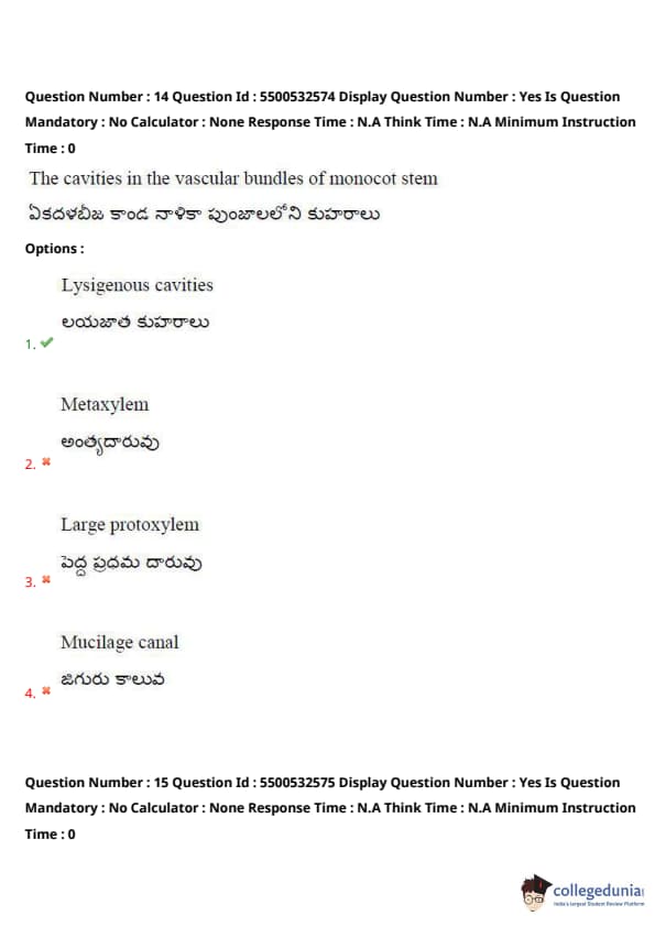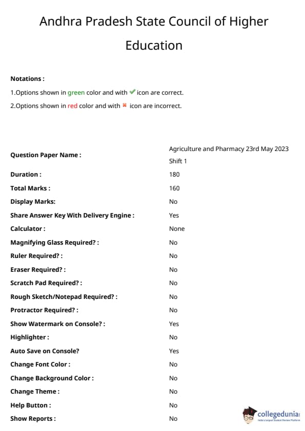 AP EAPCET (AP EAMCET) 2023 Question Paper included 160 MCQ-based questions in total, 40 from Botany, 40 from Zoology, 40 from Physics and 40 from chemistry. Each candidate will be awarded +1 for correct answers, however, there will be no negative marking for incorrect responses. Students got 3 hours to attempt AP EAPCET 2023 Question Paper. Check AP EAPCET Exam Pattern 2023