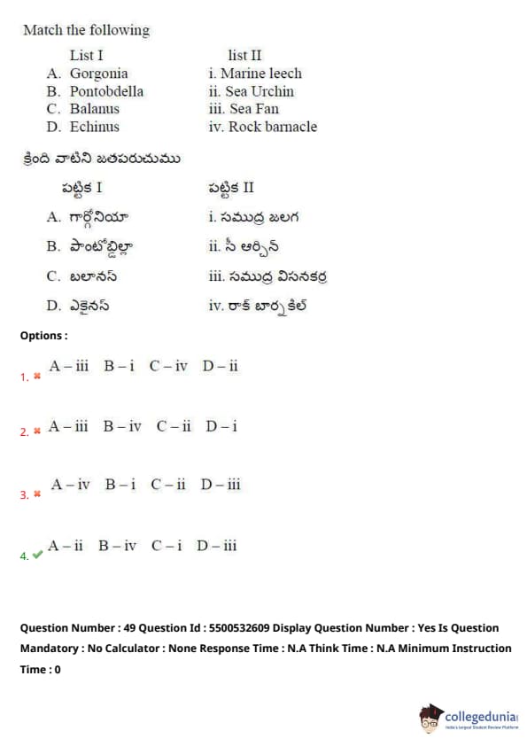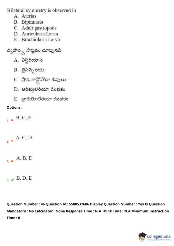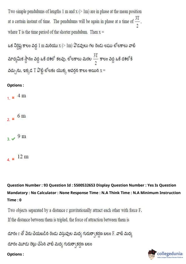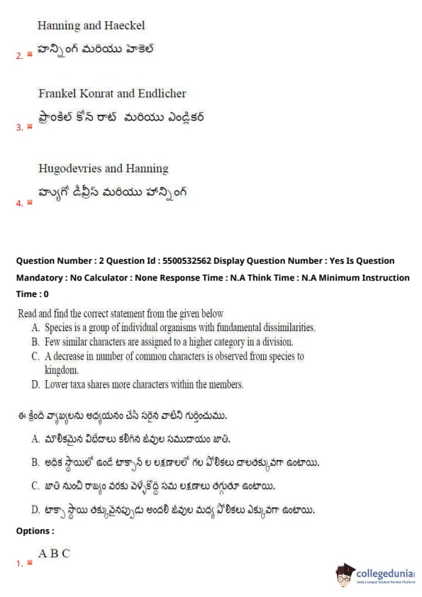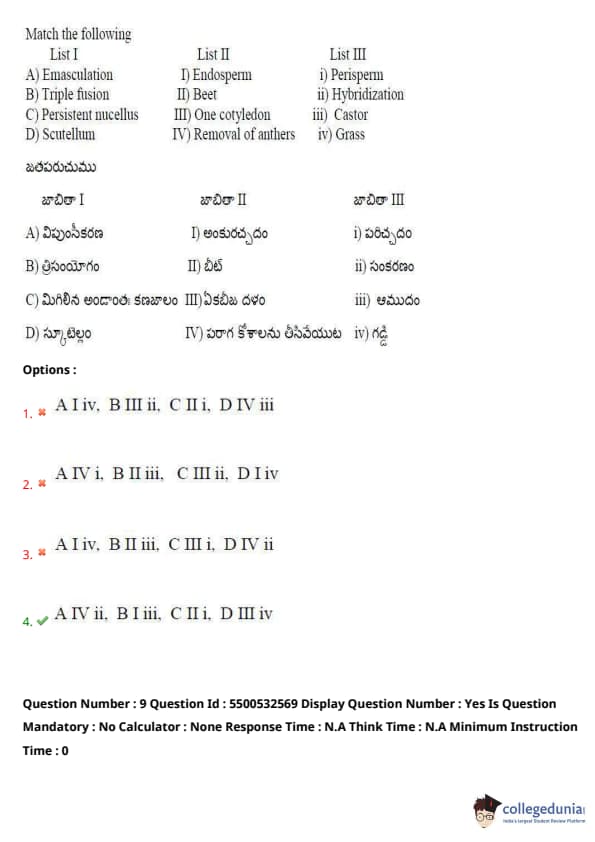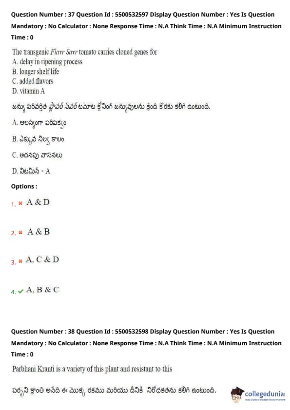 AP EAPCET (AP EAMCET) 2023 Question Paper included 160 MCQ-based questions in total, 40 from Botany, 40 from Zoology, 40 from Physics and 40 from chemistry. Each candidate will be awarded +1 for correct answers, however, there will be no negative marking for incorrect responses. Students got 3 hours to attempt AP EAPCET 2023 Question Paper. Check AP EAPCET Exam Pattern 2023