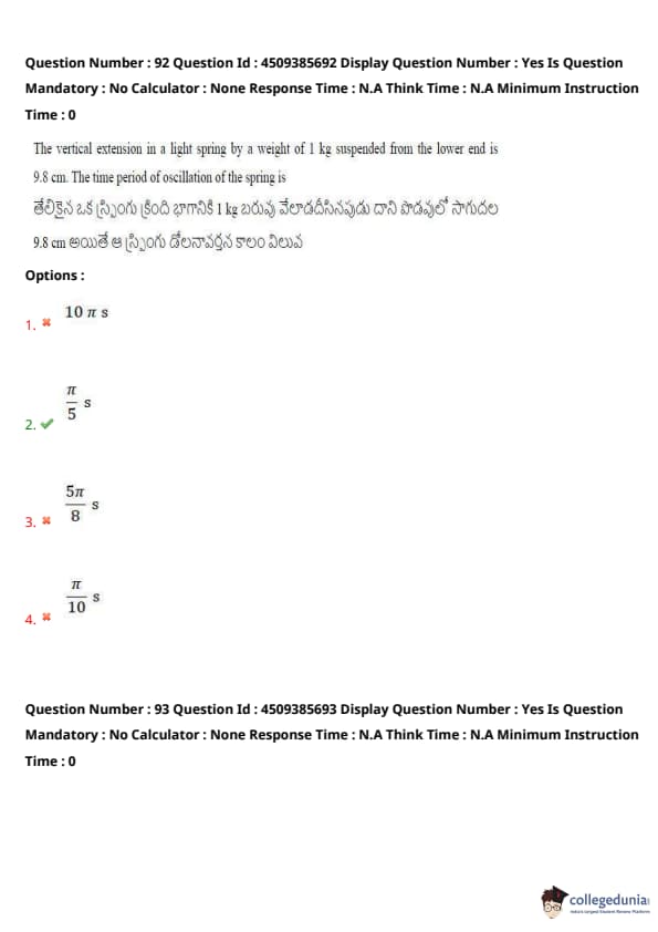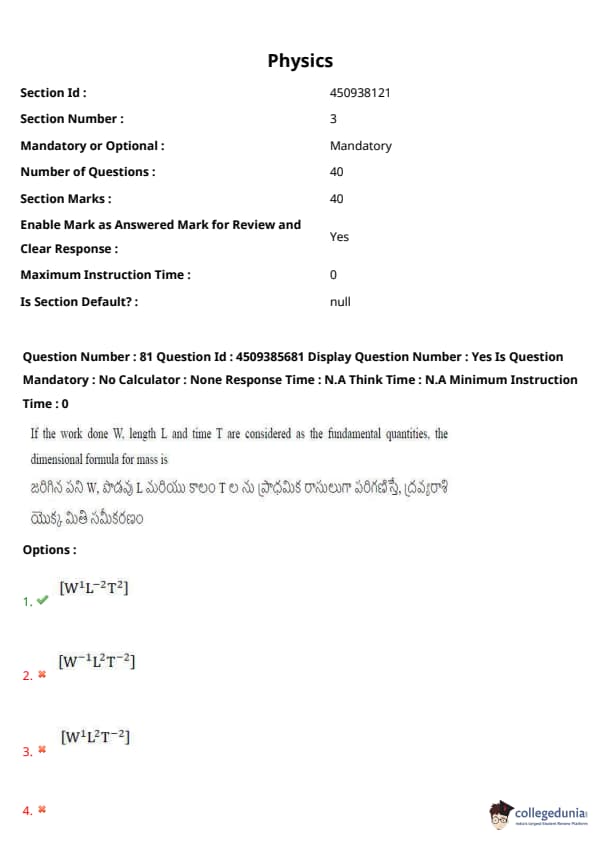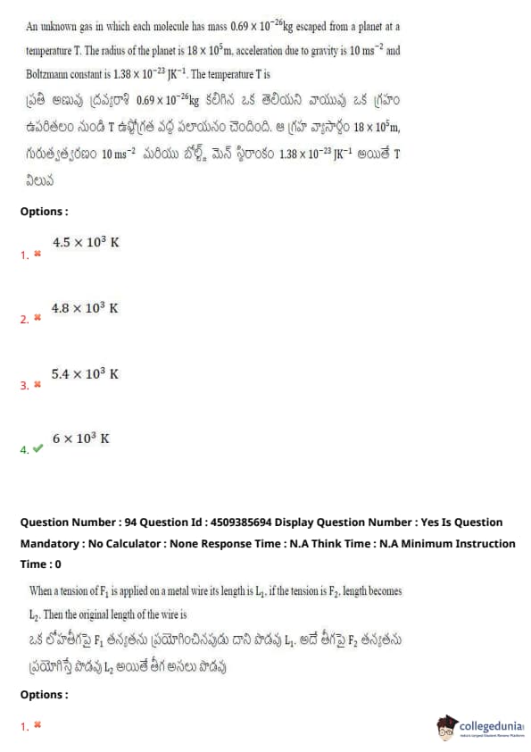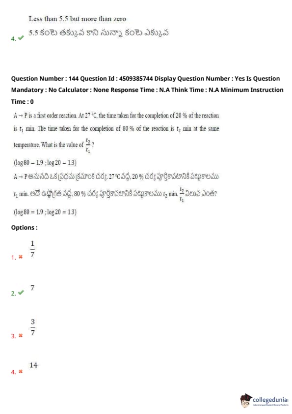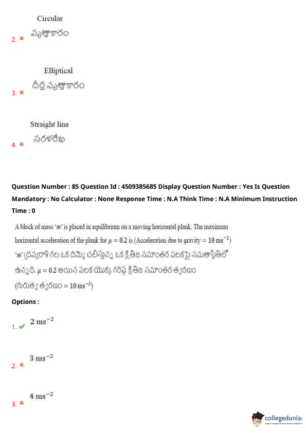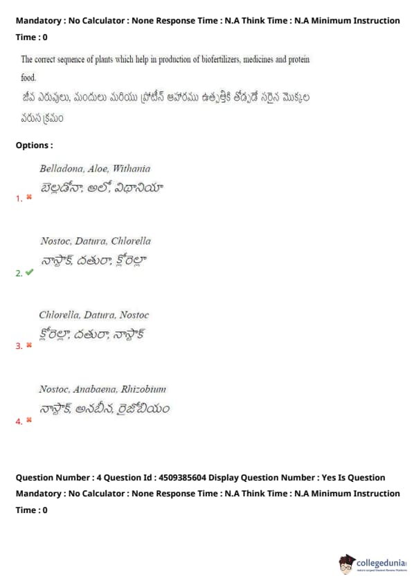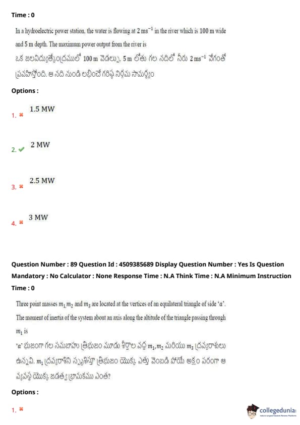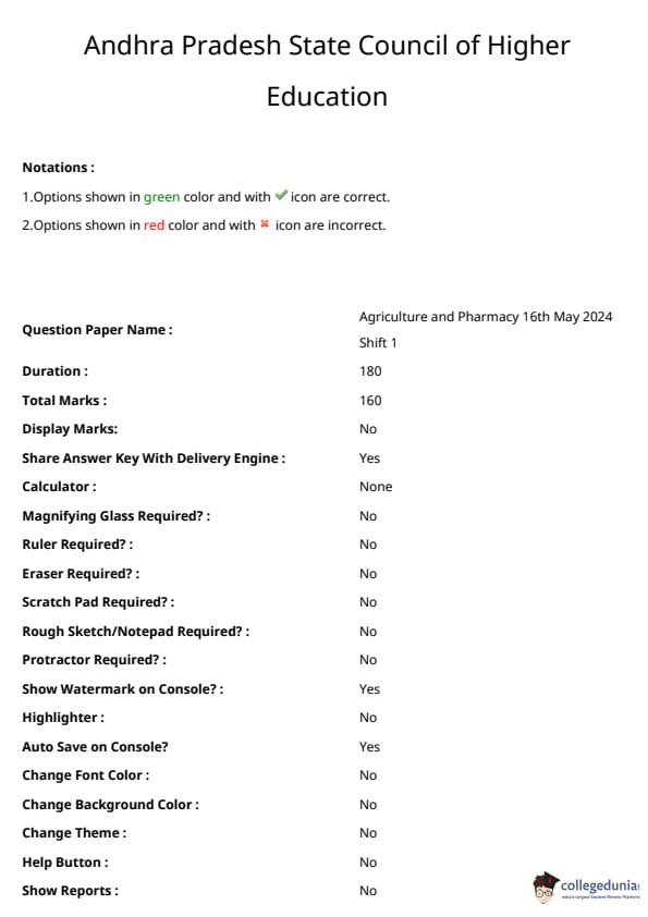 | AP EAPCET 2024 May 16 Shift 1 Question Paper with Answer Key | Check Solution |