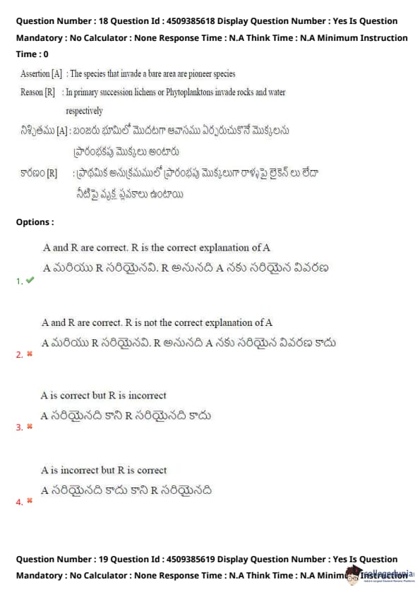 Reason [R]: In primary succession, lichens or Phytoplanktons invade rocks and water respectively