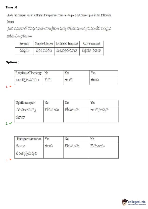 Study the comparison of different transport mechanisms to pick out the correct pair in the following format: