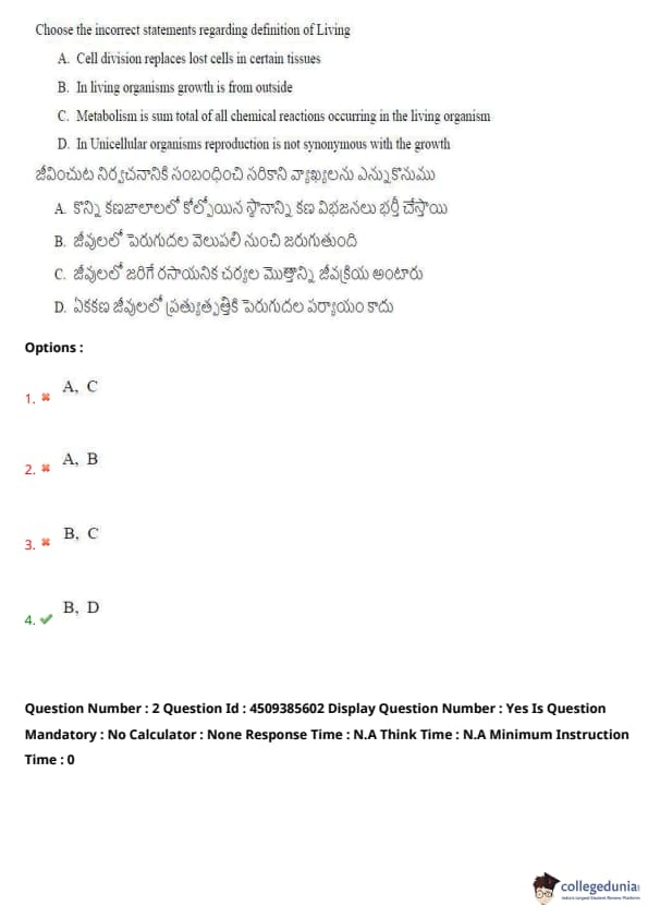 Choose the incorrect statements regarding definition of Living: