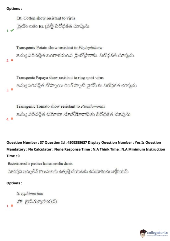 AP EAPCET 2024 Question Paper May 16 Shift 1 is available for download here. Jawaharlal Nehru Technological University, KAKINADA on behalf of APSCHE conducted AP EAPCET 2024 on May 16 in Shift 1 from 9 AM to 12 PM. AP EAPCET 2024 BiPC Question Paper consists of 160 MCQ-based questions in total, 40 from Botany, 40 from Zoology, 40 from Physics and 40 from chemistry carrying 1 mark each to be attempted in the duration of 3 hours.
