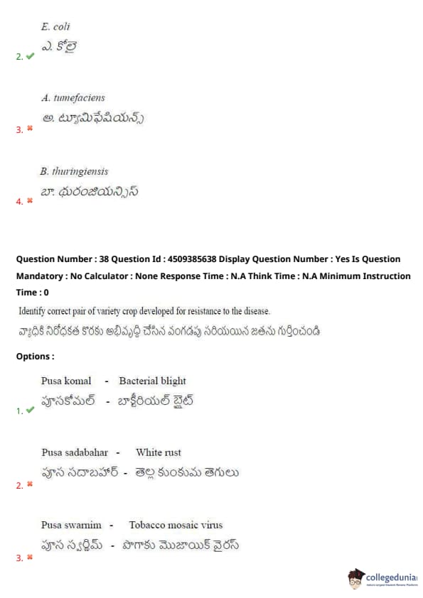 Identify the correct pair of variety crop developed for resistance to the disease: