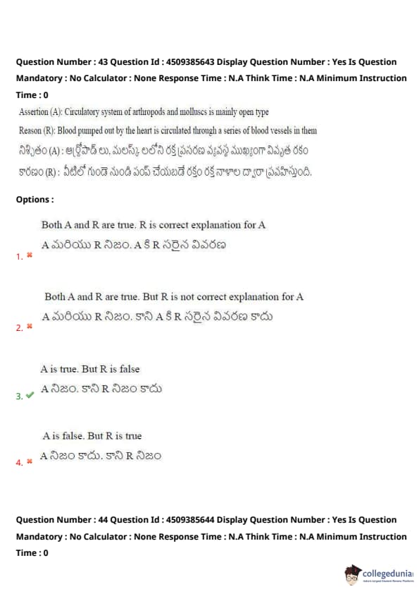Assertion (A): Circulatory system of arthropods and molluscs is mainly open type. Reason (R): Blood pumped out by the heart is circulated through a series of blood vessels in them.