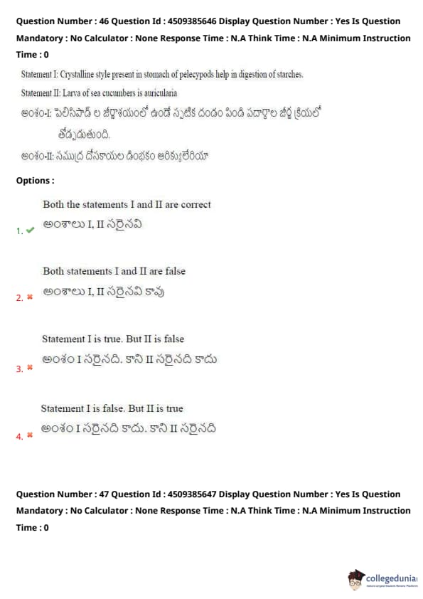 Statement I: Crystalline style present in stomach of pelecypods help in digestion of starches.