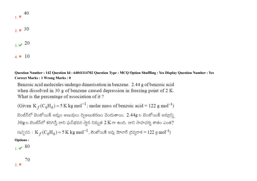Benzoic acid molecules undergo dimerisation in benzene. 2.44 g of benzoic acid when dissolved in 30 g of benzene caused depression in freezing point of 2 K. What is the percentage of association of it ?